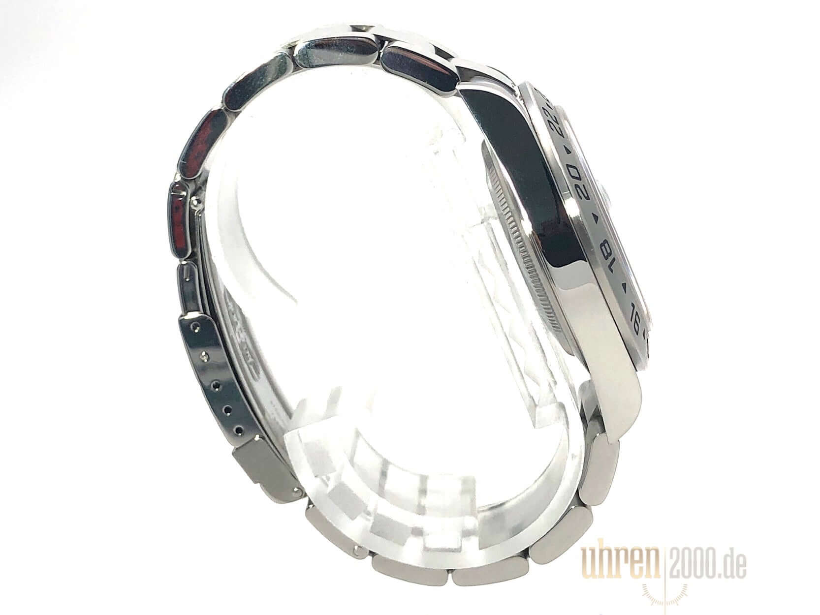 Gehäuse Edelstahl poliert und satiniert, Gehäusedurchmesser 40 mm, satinierte Edelstahl Lünette mit 24 Stunden Skala, Oyster Edelstahl Armband satiniert mit Sicherheitsfaltschließe, weißes Zifferblatt mit aufgesetzten Leuchtindizes und Leuchtpunkten, Leuchtzeiger, Automatikwerk, Chronometer, Rolex Manufakturkaliber 3185 mit 31 Steine, 28.800 A/h, Datumsanzeige, zweite Zeitzone, Saphirglas, Krone verschraubt mit Flankenschutz, Edelstahlboden verschraubt, Wasserdicht bis zu 10 bar.