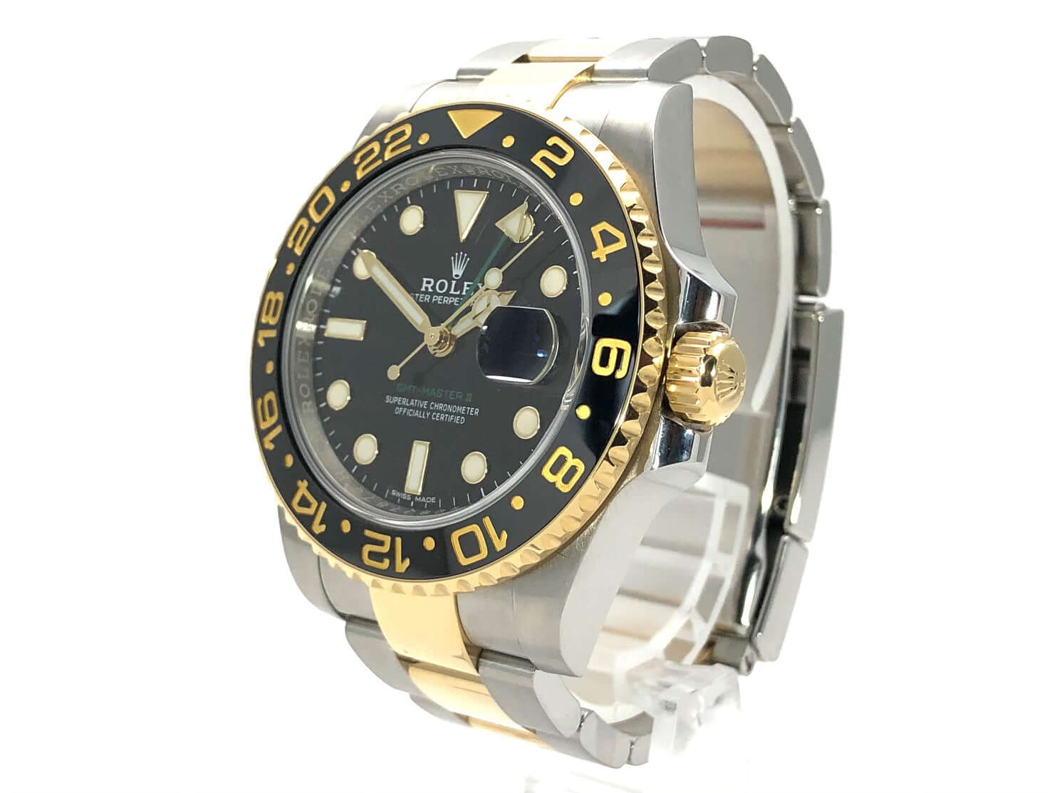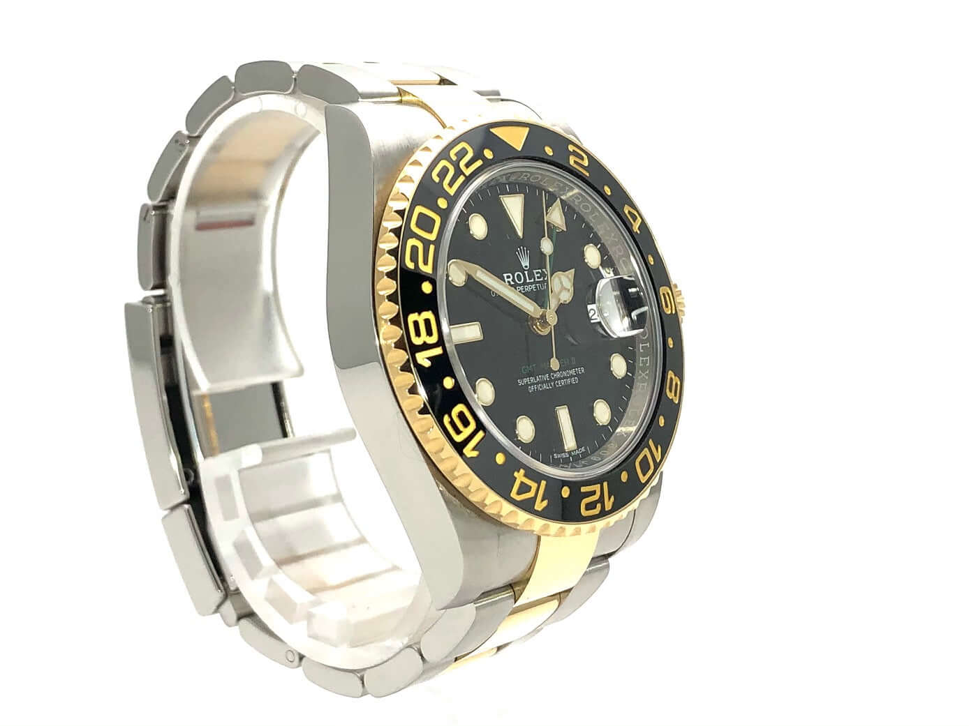 Gehäuse aus Edelstahl poliert und satiniert, Gehäusedurchmesser 40 mm, Gehäusehöhe 12,1 mm, 18 kt Gelbgold Lünette geriffelt mit schwarzer Keramik Einlage und 24 Stunden Skala, beidseitig drehbar, Oyster Edelstahl / 18 kt Gelbgold Armband poliert und satiniert mit Sicherheitsfaltschließe, schwarzes Zifferblatt mit aufgesetzten Leuchtindizes und Leuchtpunkten, Leuchtzeiger, Automatikwerk, Rolex Manufakturkaliber 3186 mit 31 Steine, Schwingung 28.800 A/h, Datumsanzeige, zweite Zeitzone, Chronometer, kratzresistentes Saphirglas, verschraubbare Gelbgold Krone mit Flankenschutz, Edelstahlboden verschraubt, Wasserdicht bis zu 10 bar.