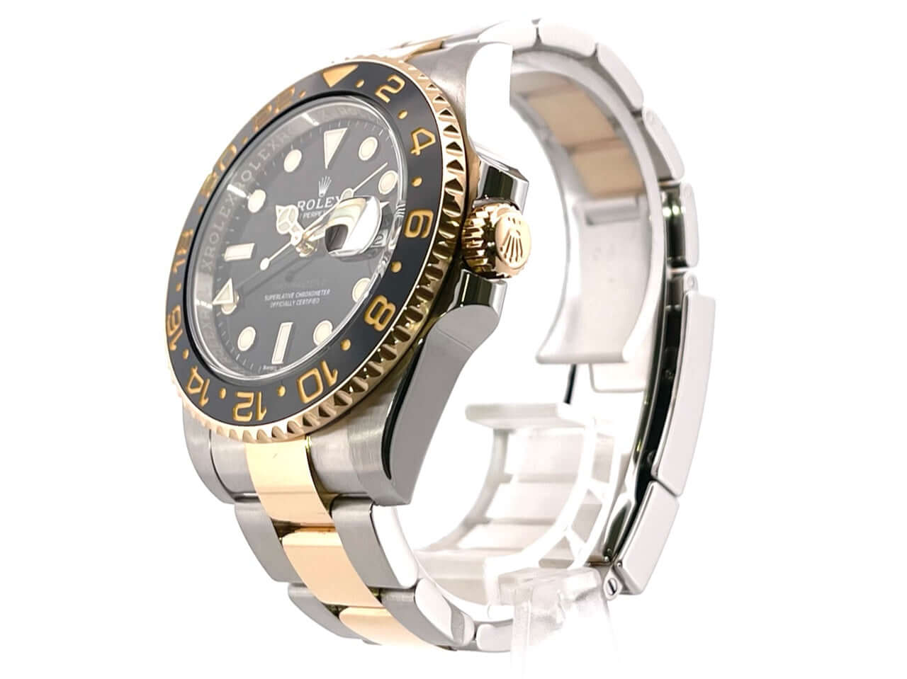Gehäuse aus Edelstahl poliert und satiniert, Gehäusedurchmesser 40 mm, Gehäusehöhe 12,1 mm, 18 kt Gelbgold Lünette geriffelt mit schwarzer Keramik Einlage und 24 Stunden Skala, beidseitig drehbar, Oyster Edelstahl / 18 kt Gelbgold Armband poliert und satiniert mit Sicherheitsfaltschließe, schwarzes Zifferblatt mit aufgesetzten Leuchtindizes und Leuchtpunkten, Leuchtzeiger, Automatikwerk, Rolex Manufakturkaliber 3186 mit 31 Steine, Schwingung 28.800 A/h, Datumsanzeige, zweite Zeitzone, Chronometer, kratzresistentes Saphirglas, verschraubbare Gelbgold Krone mit Flankenschutz, Edelstahlboden verschraubt, Wasserdicht bis zu 10 bar.