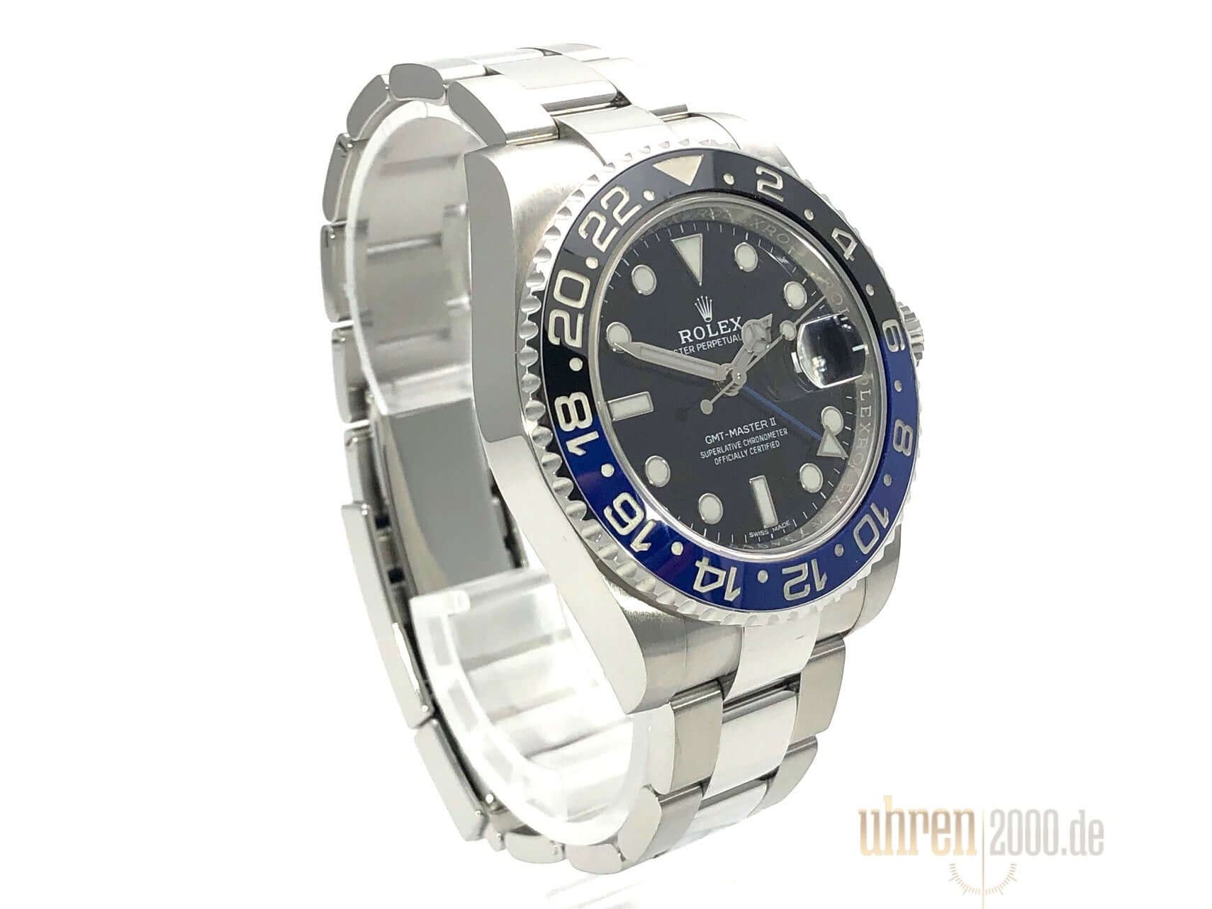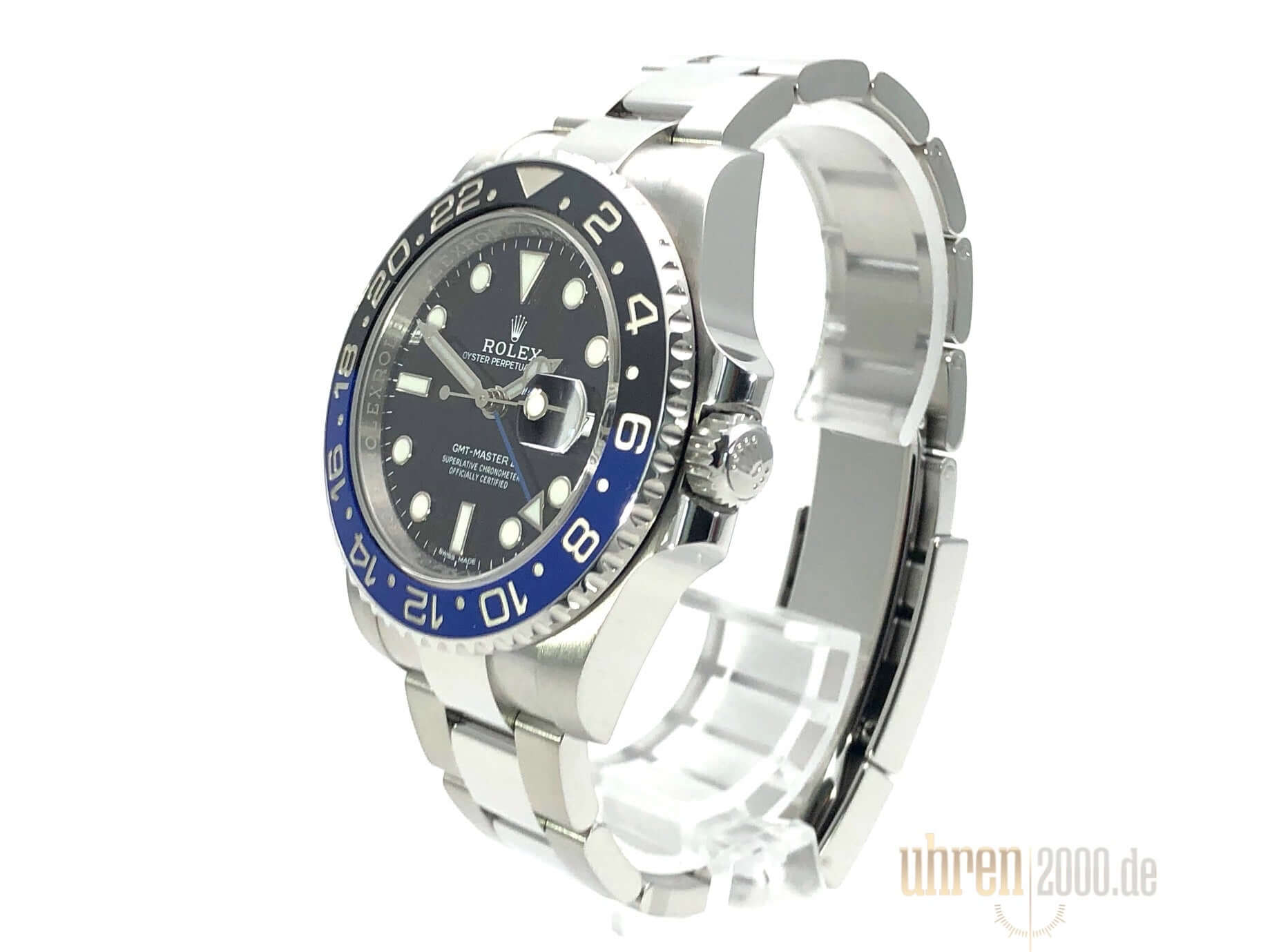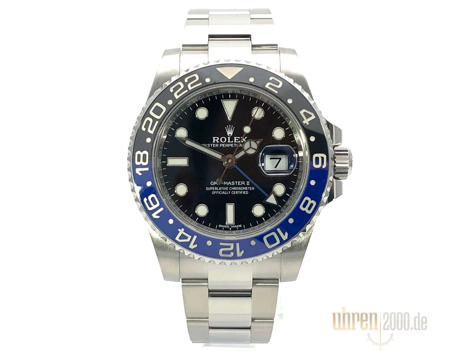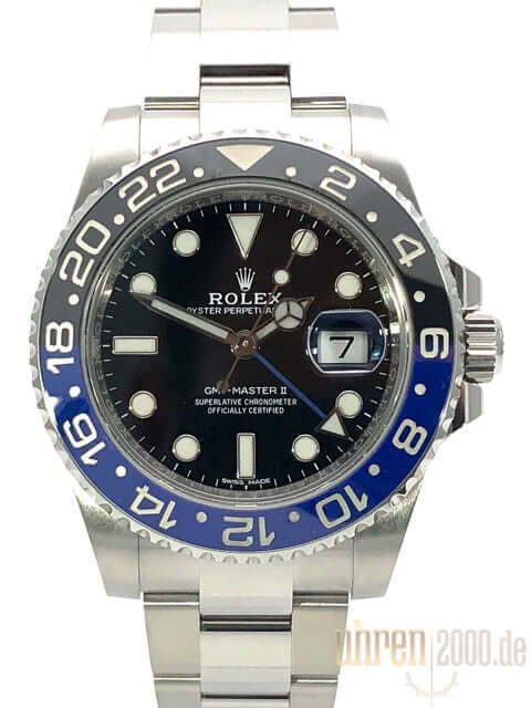 Gehäuse aus poliertem und satiniertem Edelstahl, Gehäusedurchmesser 40 mm, Gehäusehöhe 12 mm, geriffelte Edelstahl Lünette mit blau/schwarzer Keramik Einlage, 24 Stunden Skala, beidseitig drehbar, poliertes und satiniertes Oyster Edelstahl Armband mit Sicherheitsfaltschließe, schwarzes Zifferblatt mit aufgesetzten Leuchtindizes und Leuchtpunkten, Leuchtzeiger, Rolex Manufakturkaliber 3186 mit 31 Steinen, Schwingung 28.800 A/h, Datumsanzeige, GMT / zweite Zeitzone, Automatikwerk, Chronometer, Saphirglas, verschraubte Krone mit Flankenschutz, verschraubter Edelstahlboden, Wasserdicht bis zu 10 bar.