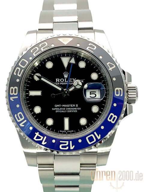 Gehäuse aus Edelstahl poliert und satiniert, Gehäusedurchmesser 40 mm, Gehäusehöhe 12 mm, Edelstahl Lünette geriffelt mit blau/schwarzer Keramik Einlage, 24 Stunden Skala, drehbar in beide Seiten, Oyster Edelstahl Armband poliert und satiniert mit Sicherheitsfaltschließe, schwarzes Zifferblatt mit aufgesetzten Leuchtindizes und Leuchtpunkten, Leuchtzeiger Automatikwerk, Rolex Manufakturkaliber 3186 mit 31 Steinen, Schwingung 28.800 A/h, Datumsanzeige, GMT / zweite Zeitzone, Chronometer, Saphirglas, verschraubte Krone mit Flankenschutz, verschraubter Edelstahlboden, Wasserdicht bis zu 10 bar.