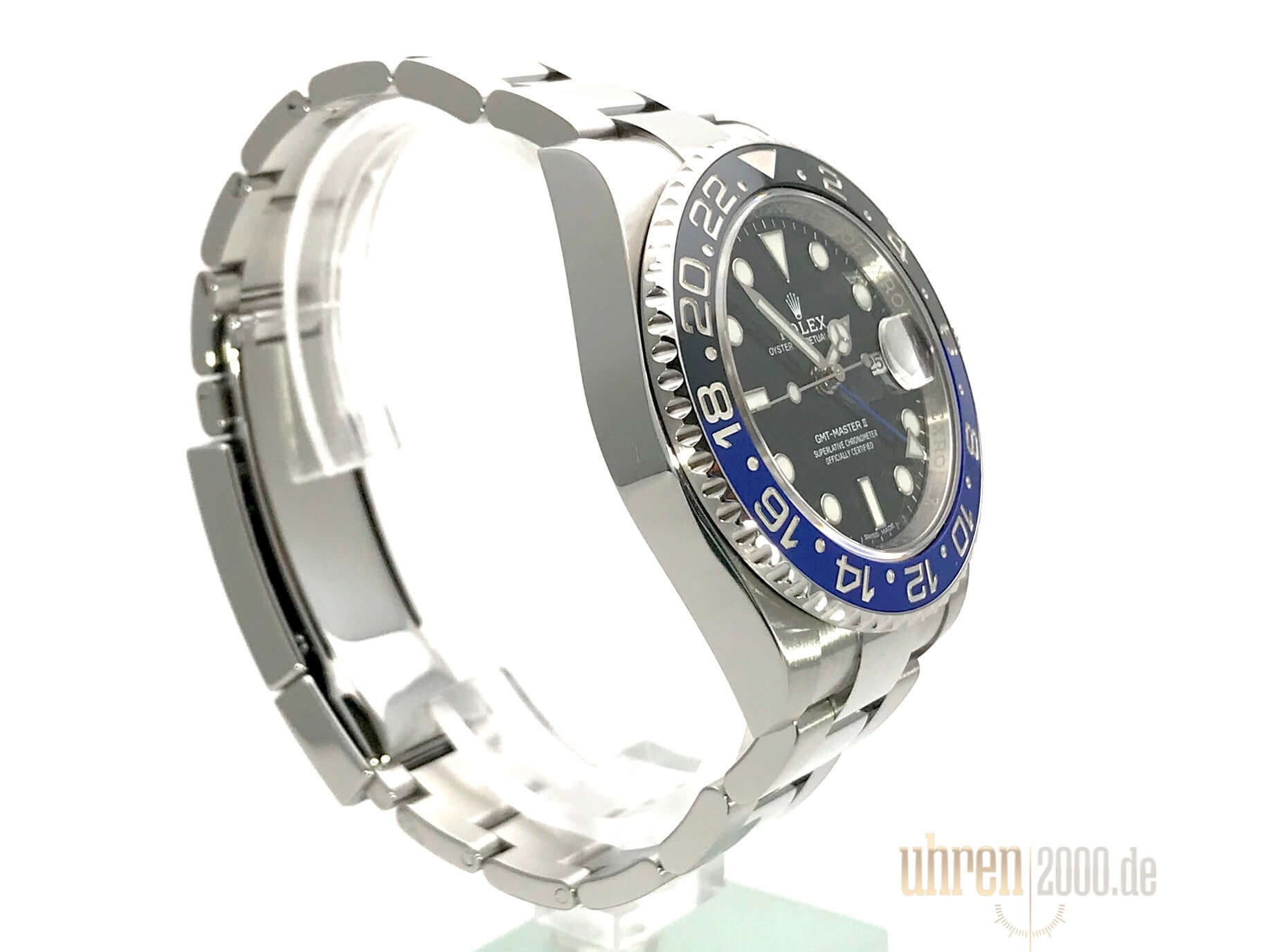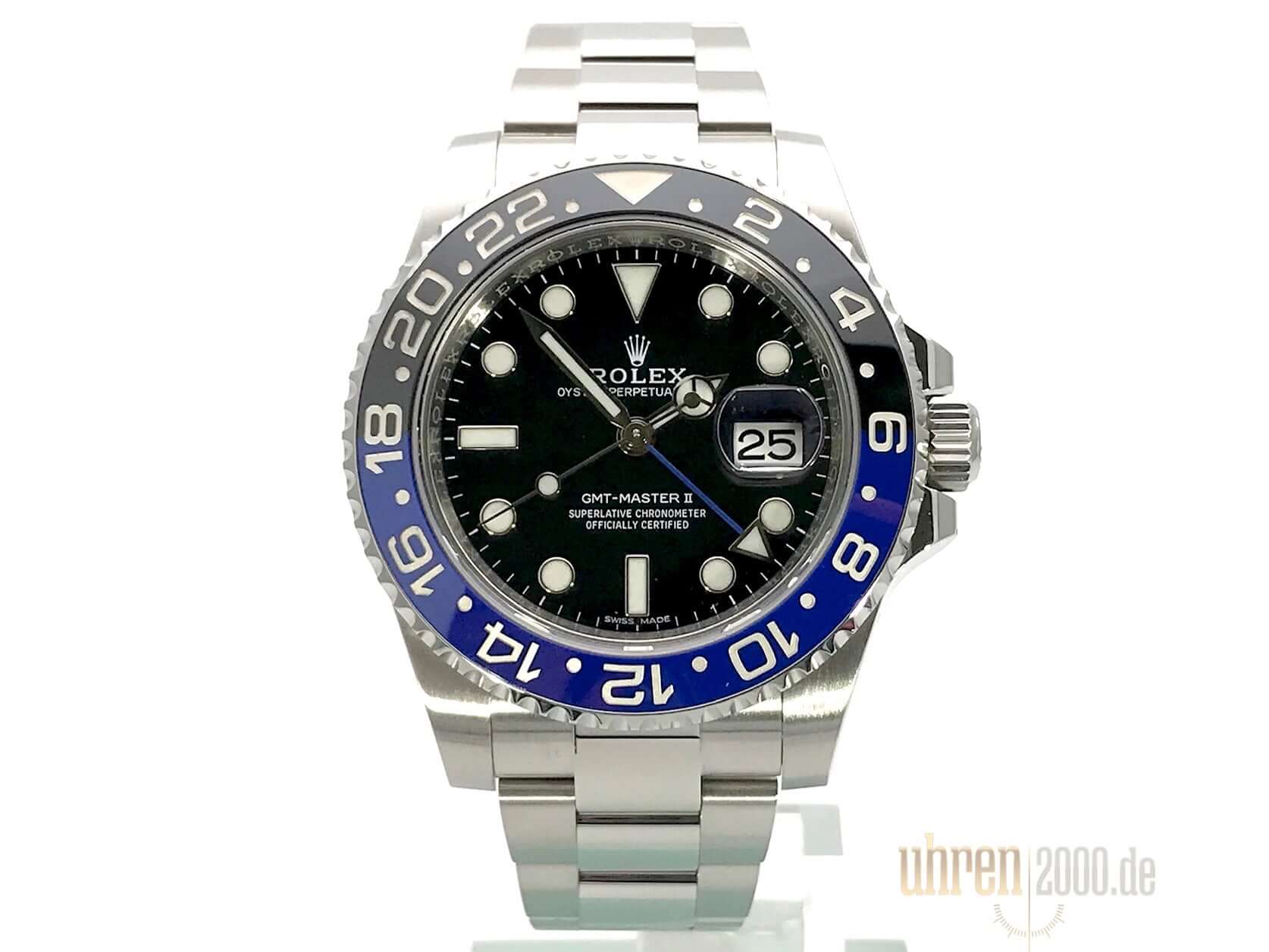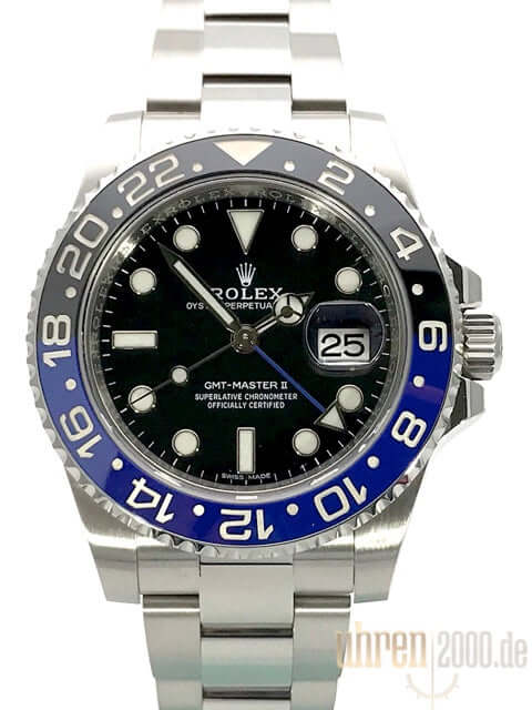 Gehäuse aus Edelstahl poliert und satiniert, Gehäusedurchmesser 40 mm, Gehäusehöhe 12 mm, Edelstahl Lünette geriffelt mit blau/schwarzer Keramik Einlage, 24 Stunden Skala, drehbar in beide Seiten, Oyster Edelstahl Armband poliert und satiniert mit Sicherheitsfaltschließe, schwarzes Zifferblatt mit aufgesetzten Leuchtindizes und Leuchtpunkten, Leuchtzeiger Automatikwerk, Rolex Manufakturkaliber 3186 mit 31 Steinen, Schwingung 28.800 A/h, Datumsanzeige, GMT / zweite Zeitzone, Chronometer, Saphirglas, verschraubte Krone mit Flankenschutz, verschraubter Edelstahlboden, Wasserdicht bis zu 10 bar.