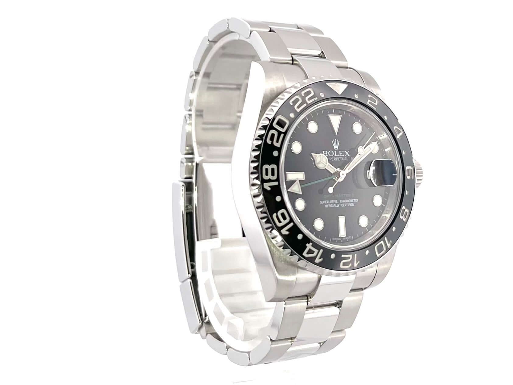 Gehäuse aus Edelstahl poliert und satiniert, Gehäusedurchmesser 40 mm, Gehäusehöhe 12 mm, Edelstahl Lünette geriffelt mit schwarzer Keramik Einlage und 24 Stunden Skala, drehbar, Oyster Edelstahlband poliert und satiniert mit Sicherheitsfaltschließe, schwarzes Zifferblatt mit aufgesetzten Leuchtindizes, Leuchtzeiger, Automatikwerk, Rolex Manufakturkaliber 3186 mit 31 Steine, 28.800 A/h, Datumsanzeige mit Glaslupe, zweite Zeitzone, Chronometer, Saphirglas, Krone verschraubbar mit Flankenschutz, Edelstahlboden verschraubt, Wasserdicht bis zu 10 bar.