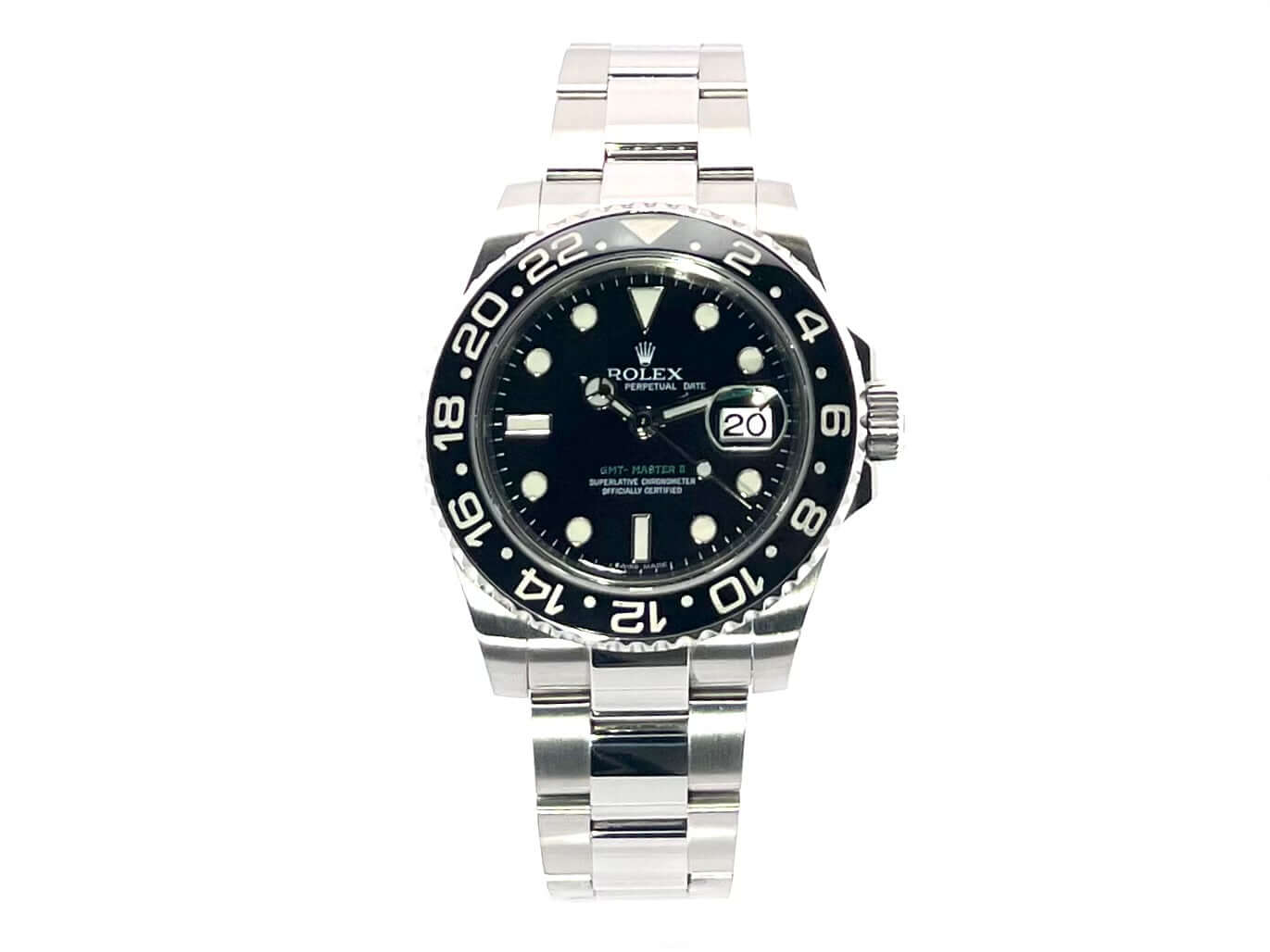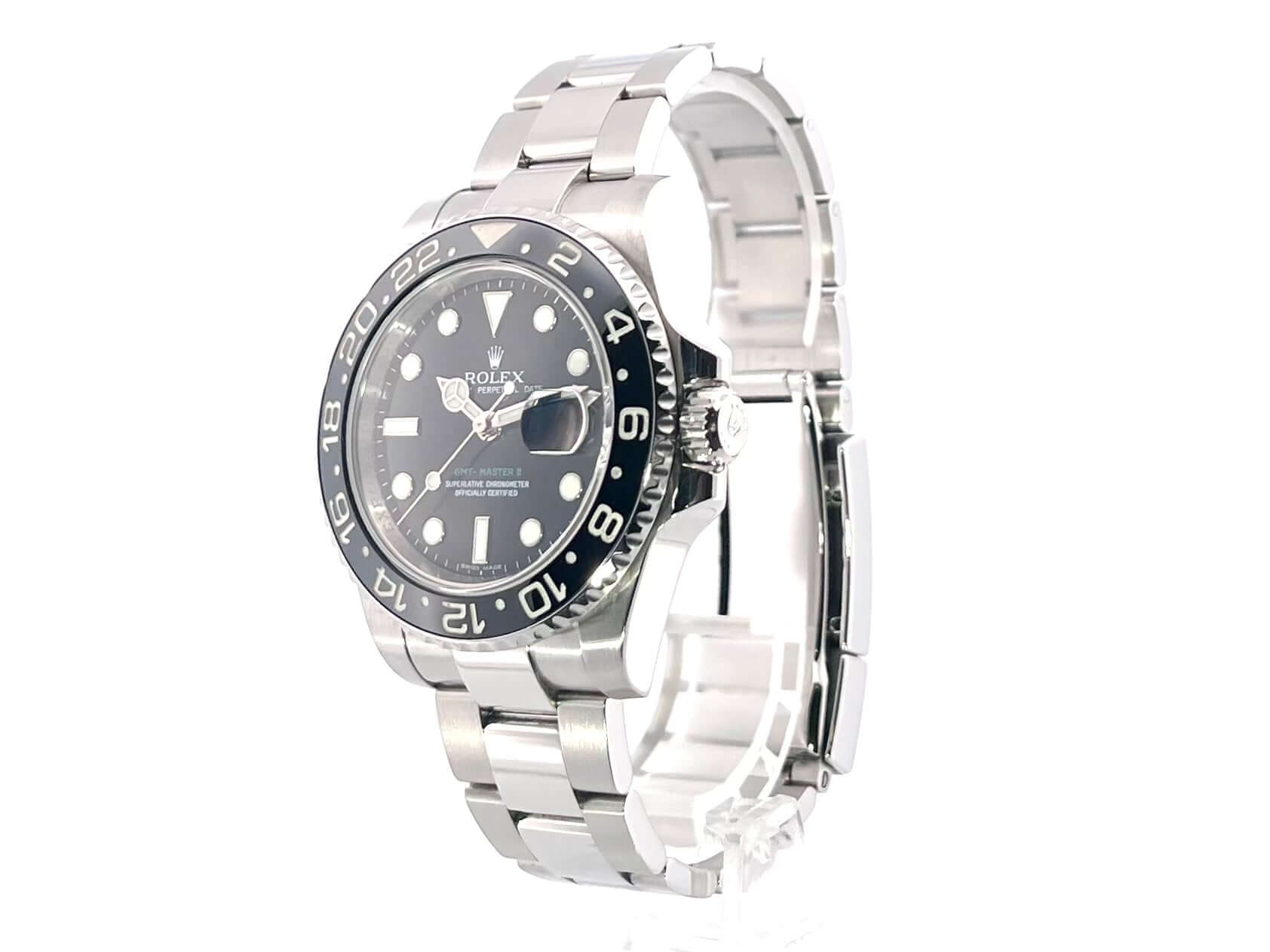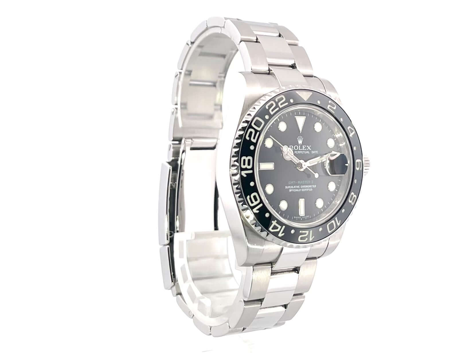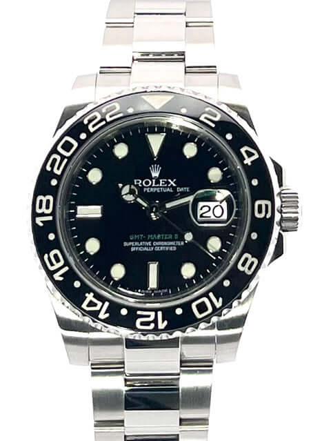 Gehäuse aus Edelstahl poliert und satiniert, Gehäusedurchmesser 40 mm, Gehäusehöhe 12 mm, Edelstahl Lünette geriffelt mit schwarzer Keramik Einlage und 24 Stunden Skala, drehbar, Oyster Edelstahlband poliert und satiniert mit Sicherheitsfaltschließe, schwarzes Zifferblatt mit aufgesetzten Leuchtindizes, Leuchtzeiger, Automatikwerk, Rolex Manufakturkaliber 3186 mit 31 Steine, 28.800 A/h, Datumsanzeige mit Glaslupe, zweite Zeitzone, Chronometer, Saphirglas, Krone verschraubbar mit Flankenschutz, Edelstahlboden verschraubt, wasserdicht bis zu 10 bar.