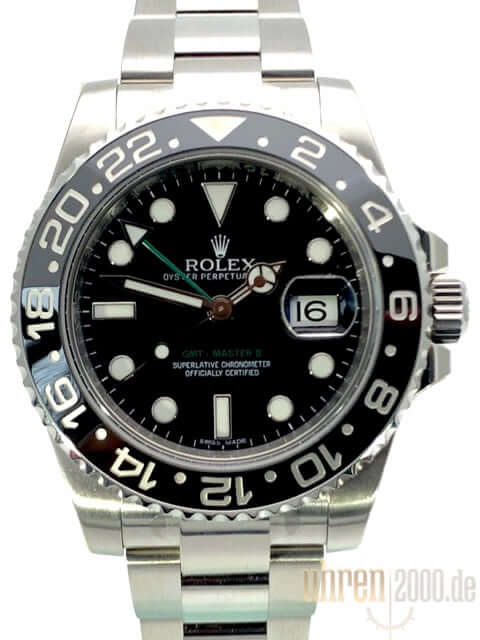 Gehäuse aus Edelstahl poliert und satiniert, Gehäusedurchmesser 40 mm, Gehäusehöhe 12 mm, Edelstahl Lünette geriffelt mit schwarzer Keramik Einlage und 24 Stunden Skala, drehbar, Oyster Edelstahlband poliert und satiniert mit Sicherheitsfaltschließe, schwarzes Zifferblatt mit aufgesetzten Leuchtindizes, Leuchtpunkte, Leuchtzeiger, Automatikwerk, Rolex Manufakturkaliber 3186 mit 31 Steine, 28.800 A/h, Datumsanzeige mit Glaslupe, zweite Zeitzone, Chronometer, Saphirglas, Krone verschraubbar mit Flankenschutz, Edelstahlboden verschraubt, Wasserdicht bis zu 10 bar.