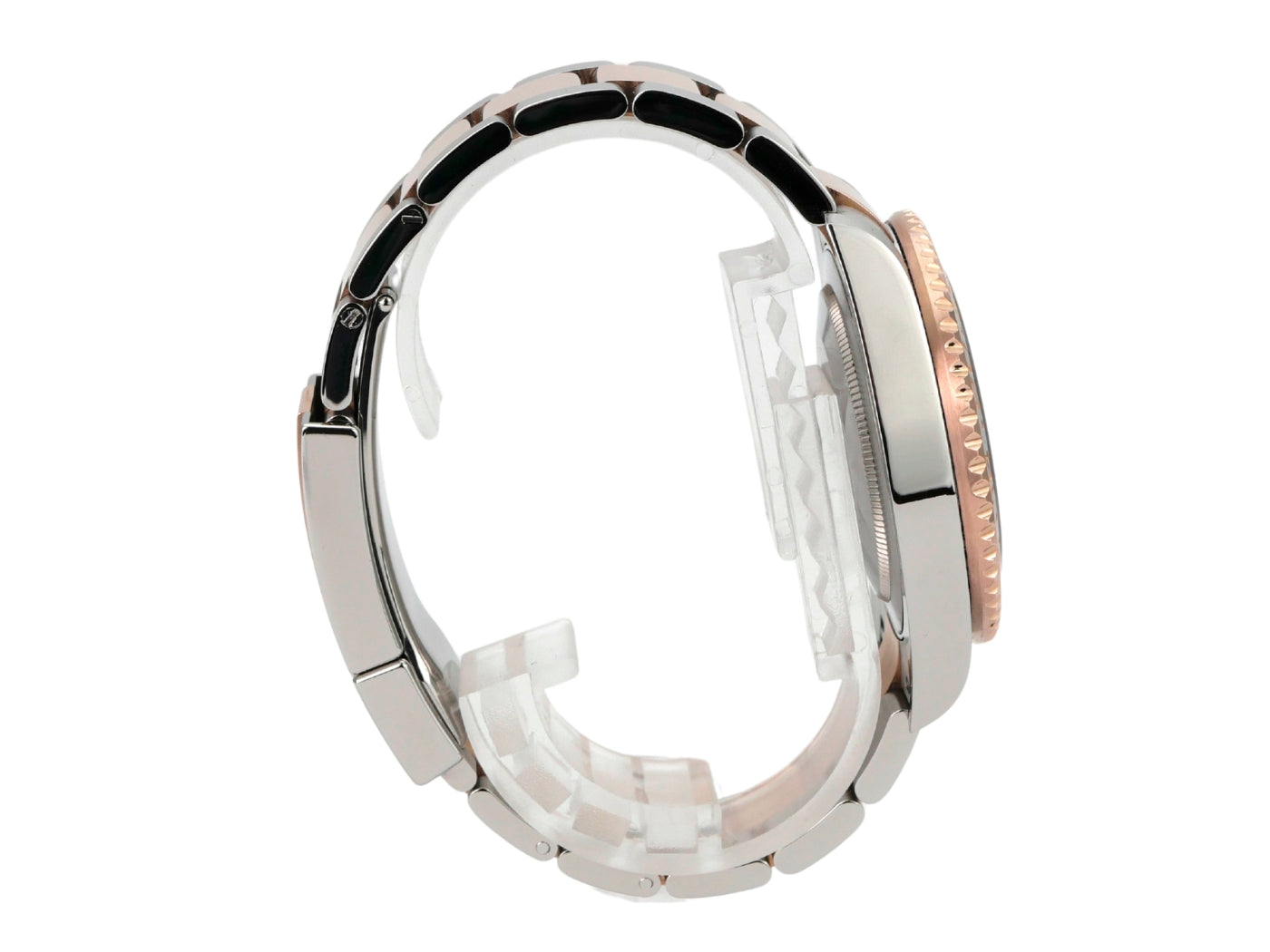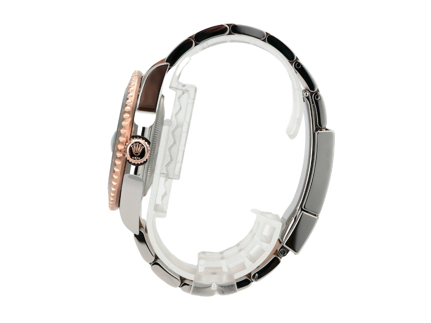 Gehäuse aus Edelstahl / 18 kt Everose-Gold poliert und satiniert, Gehäusedurchmesser 40 mm, Höhe 12,1 mm, 18 kt Everose-Gold Lünette geriffelt mit Keramik Einlage und 24 Stunden Skala, beidseitig drehbar, Oyster Edelstahl / 18 kt Everose-Gold Armband poliert und satiniert mit Sicherheitsfaltschließe, schwarzes Zifferblatt mit aufgesetzten Leuchtindizes und Leuchtpunkten, Leuchtzeiger, Automatikwerk, Rolex Manufakturkaliber 3285 mit 31 Steine, Schwingung 28.800 A/h, 70 Stunden Gangreserve, Datumsanzeige, zweite Zeitzone, Chronometer, kratzresistentes Saphirglas, verschraubbare Everose-Gold Krone mit Flankenschutz, Edelstahlboden verschraubt, wasserdicht bis zu 10 bar.