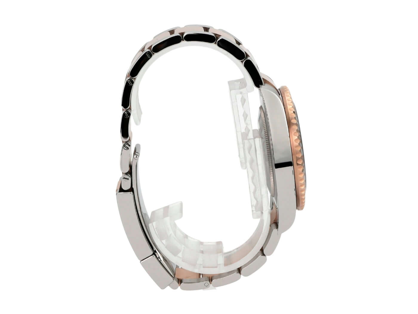 Gehäuse aus Edelstahl / 18 kt Everose-Gold poliert und satiniert, Gehäusedurchmesser 40 mm, Höhe 12,1 mm, 18 kt Everose-Gold Lünette geriffelt mit Keramik Einlage und 24 Stunden Skala, beidseitig drehbar, Oyster Edelstahl / 18 kt Everose-Gold Armband poliert und satiniert mit Sicherheitsfaltschließe, schwarzes Zifferblatt mit aufgesetzten Leuchtindizes und Leuchtpunkten, Leuchtzeiger, Automatikwerk, Rolex Manufakturkaliber 3285 mit 31 Steine, Schwingung 28.800 A/h, 70 Stunden Gangreserve, Datumsanzeige, zweite Zeitzone, Chronometer, kratzresistentes Saphirglas, verschraubbare Everose-Gold Krone mit Flankenschutz, Edelstahlboden verschraubt, wasserdicht bis zu 10 bar.
