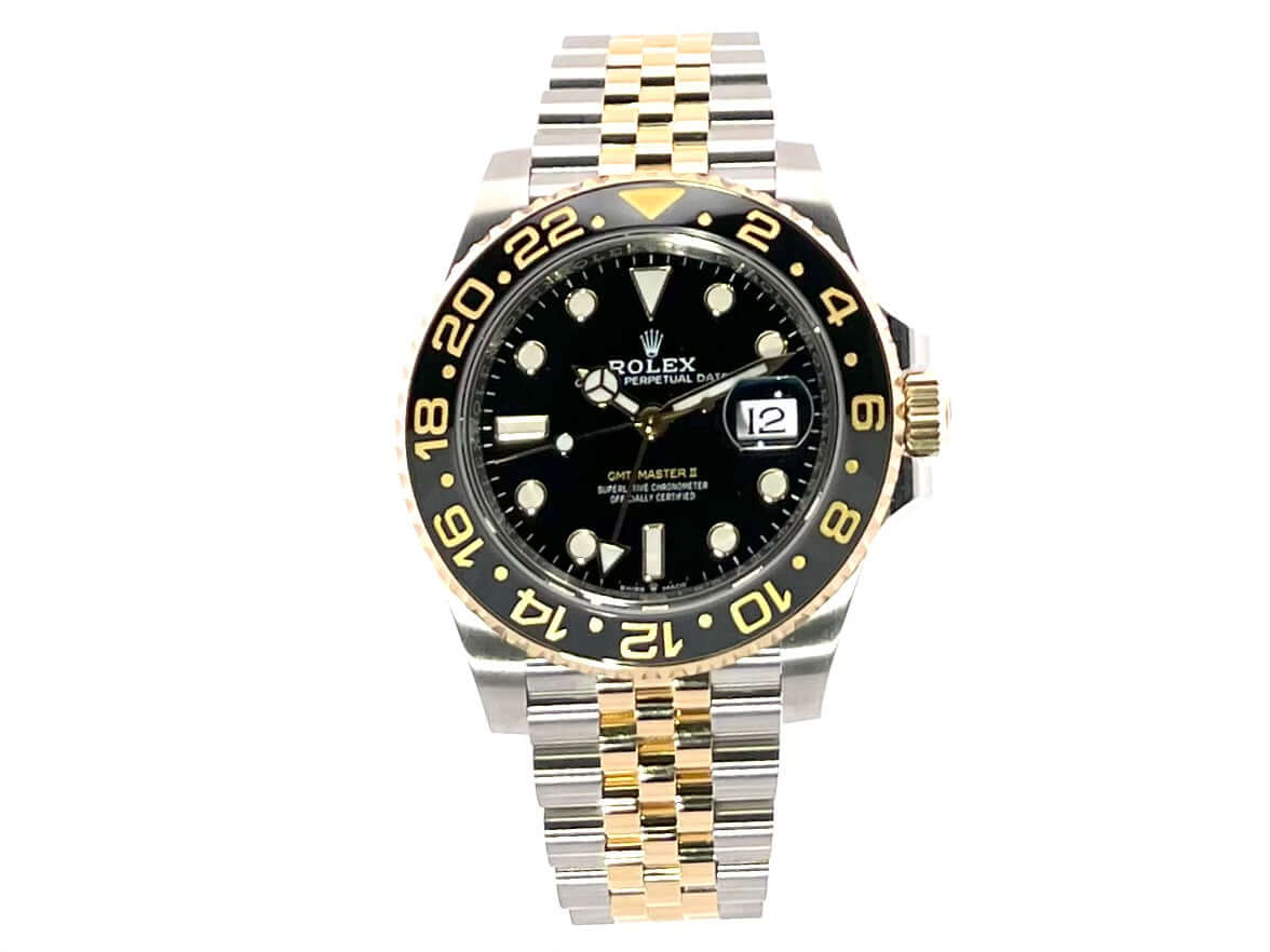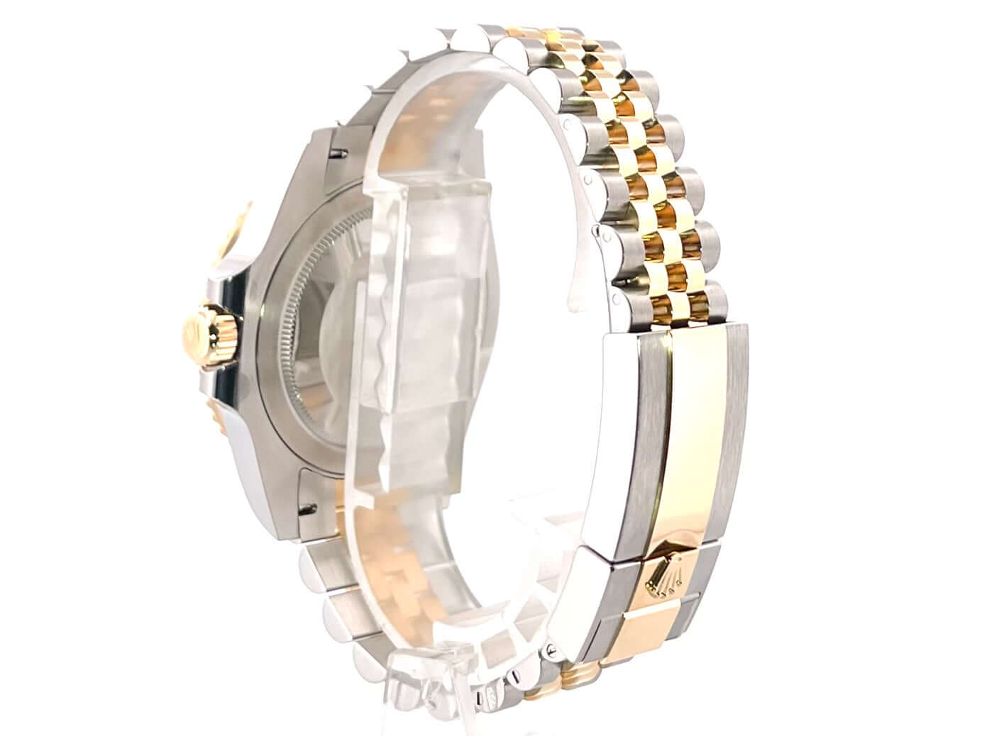 Gehäuse aus Edelstahl, drehbare 24-Stunden-Lünette mit schwarz / grauer Cerachrom-Zahlenscheibe, Jubilee-Band aus Edelstahl / 18 Karat Gelbgold mit Oysterclasp-Schließe und Easylink, schwarzes Zifferblatt, Automatik, Rolex Manufakturkaliber 3285 mit 31 Steine, Schwingung 28.800 A/h, 70 Stunden Gangreserve, Datumsanzeige, zweite Zeitzone, Chronometer, kratzfestes Saphirglas, verschraubbare Krone mit Flankenschutz, verschraubter Edelstahl Boden, wasserdicht bis zu 10 bar.