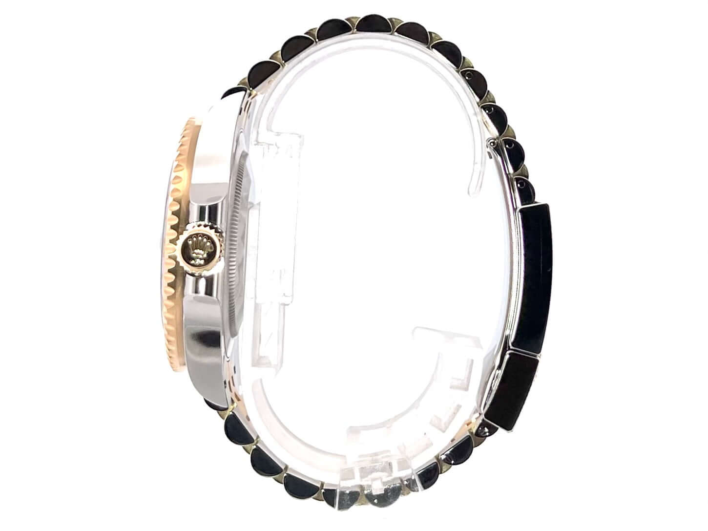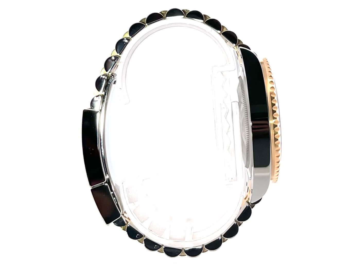 Das Gehäuse der Uhr besteht aus robustem Edelstahl, während die drehbare 24-Stunden-Lünette mit einer schwarz/grauen Cerachrom-Zahlenscheibe versehen ist. Diese innovative Lünette ermöglicht es dem Träger, die Zeit in einer zweiten Zeitzone abzulesen — ideal für Vielreisende. Das elegante Jubile-Armband, das aus Edelstahl und 18 Karat Gelbgold gefertigt ist, sorgt für einen angenehmen Tragekomfort und verleiht der Uhr einen glänzenden Look. Die Oysterclasp-Schließe mit Easylink-Technologie gewährleistet zudem eine einfache Anpassung der Bandlänge.