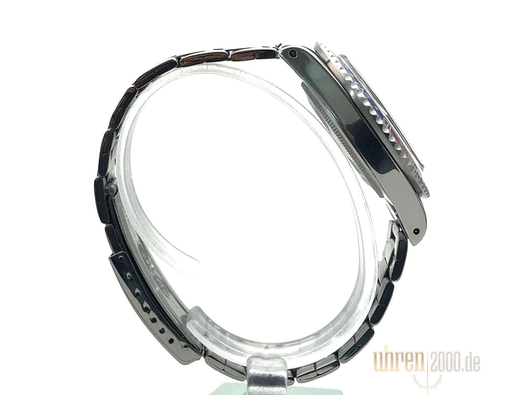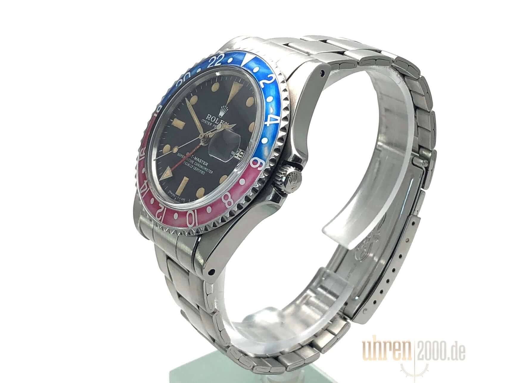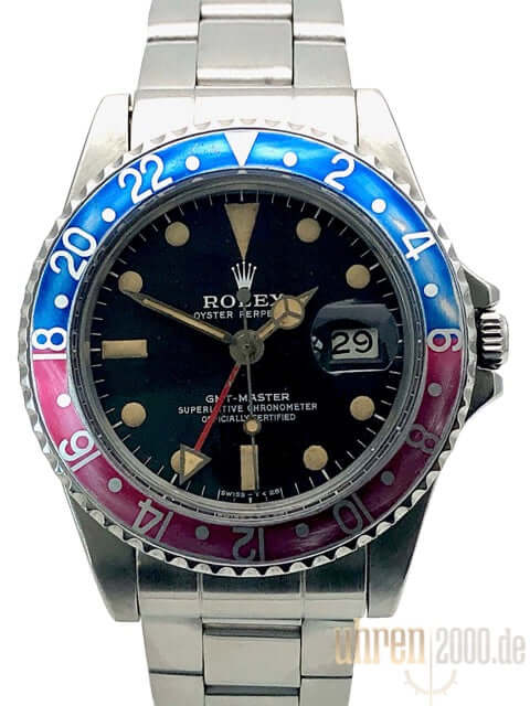 Gehäuse aus Edelstahl poliert und satiniert, Gehäusedurchmesser 40 mm, Edelstahl Lünette geriffelt mit blau / roter Einlage und 24 Stunden Skala, drehbar, Oyster Edelstahlband poliert und satiniert mit Faltschließe, schwarzes Zifferblatt mit aufgesetzten Leuchtindizes und Leuchtpunkten, Leuchtzeiger, Automatikwerk, Rolex Manufakturkaliber 1575, 19.600 A/h, Datum mit Glaslupe, zweite Zeitzone, Chronometer, Plexiglas, verschraubte Krone mit Flankenschutz, Edelstahlboden verschraubt, Wasserdicht bis zu 5 bar.