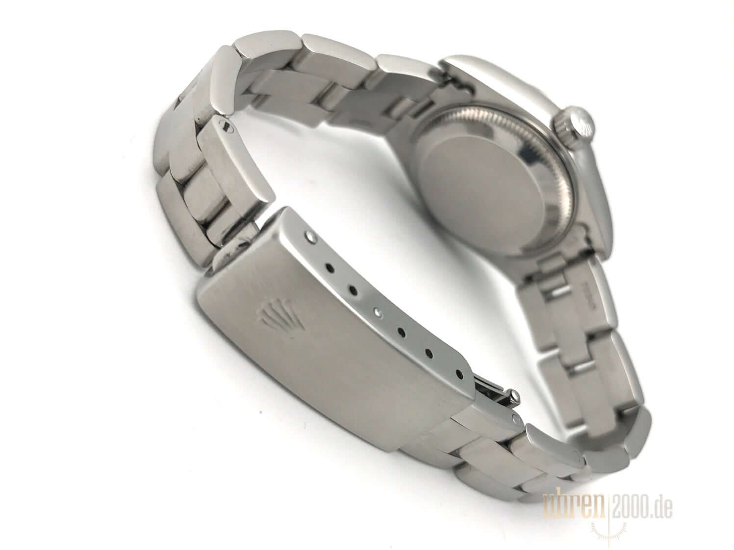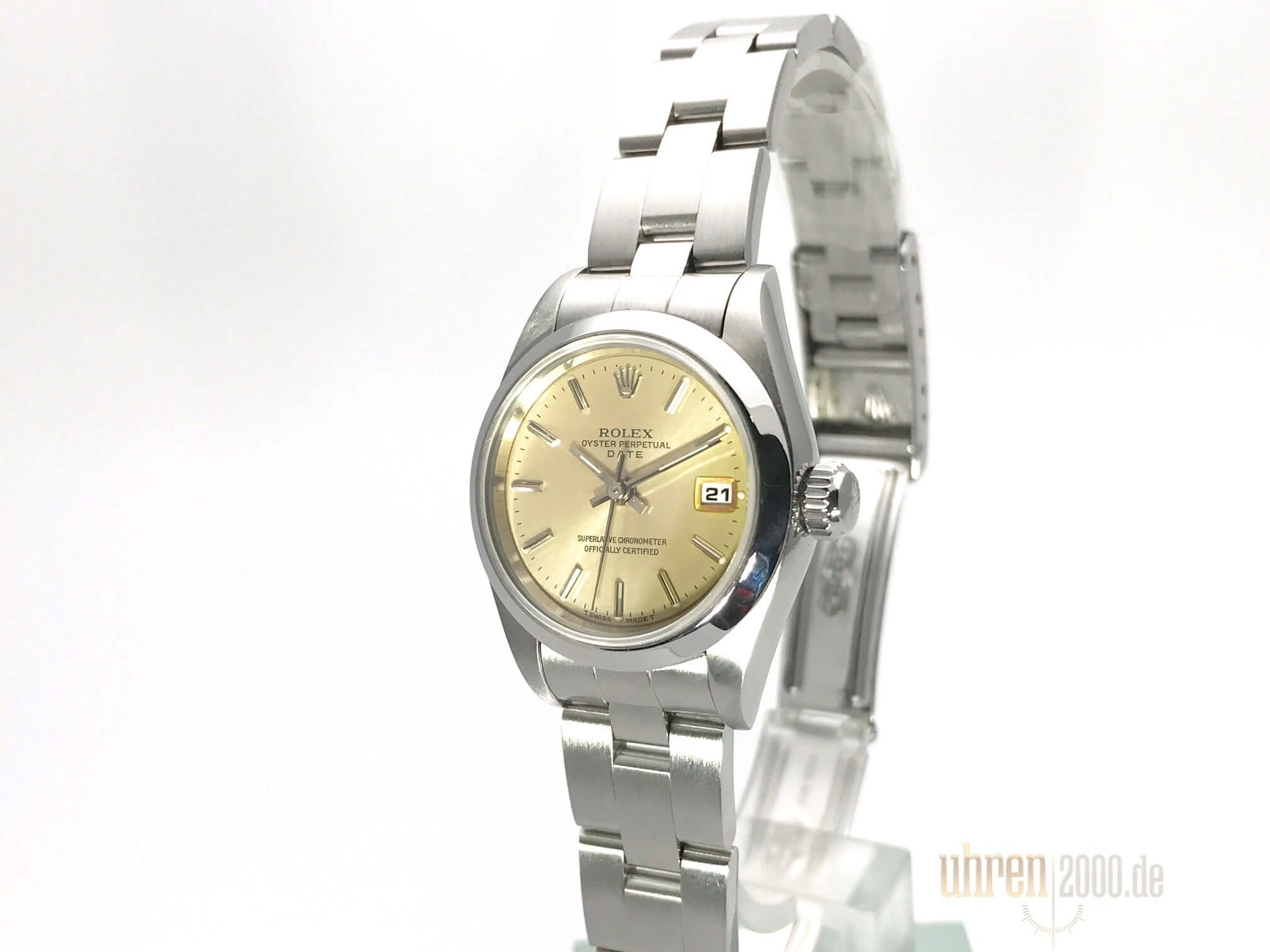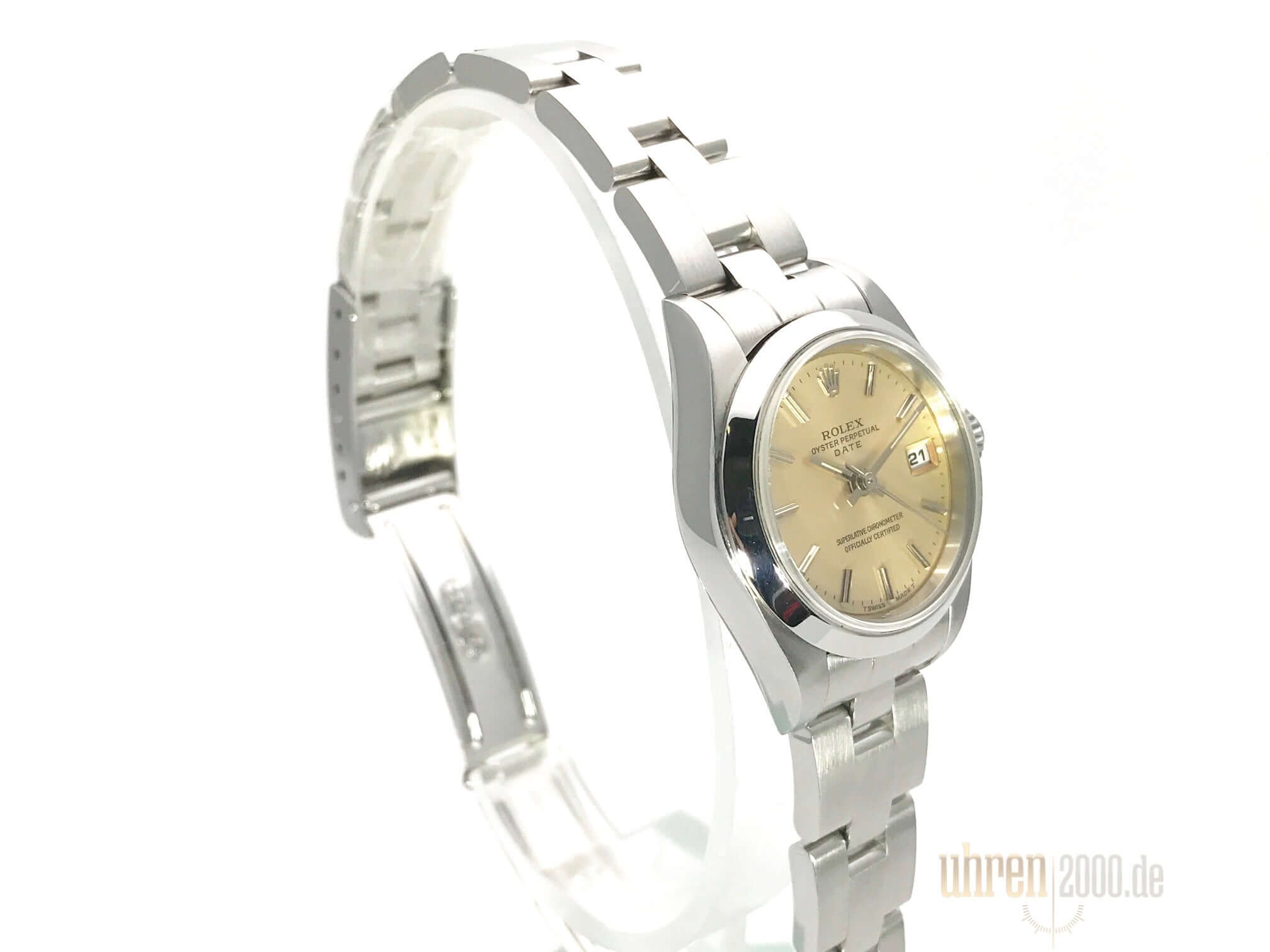 Gehäuse aus Edelstahl poliert und satiniert, Gehäusedurchmesser 26 mm, Lünette Edelstahl poliert und glatt, Oysterband aus Edelstahl poliert und satiniert mit Faltschließe, Champagner Zifferblatt, Automatikwerk, Rolex Manufakturkaliber, Schwingung 28.800 A/h, Gangreserve für ca. 48 Stunden, Datumsanzeige, kratzfestes Saphirglas, verschraubbare Krone, verschraubter Boden aus Edelstahl, Wasserdicht bis zu 10 bar.