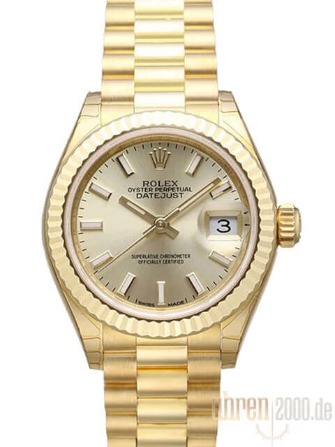 Rolex Lady-Datejust 28 18 kt Gelbgold 279178 Champagner Präsident-Band