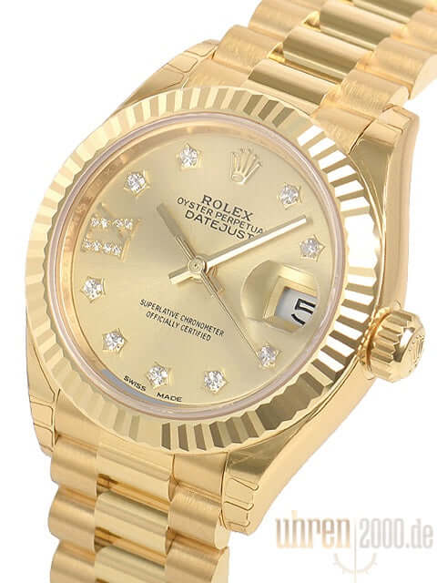 Rolex Lady-Datejust 28 18 kt Gelbgold 279178 Champagner DIA