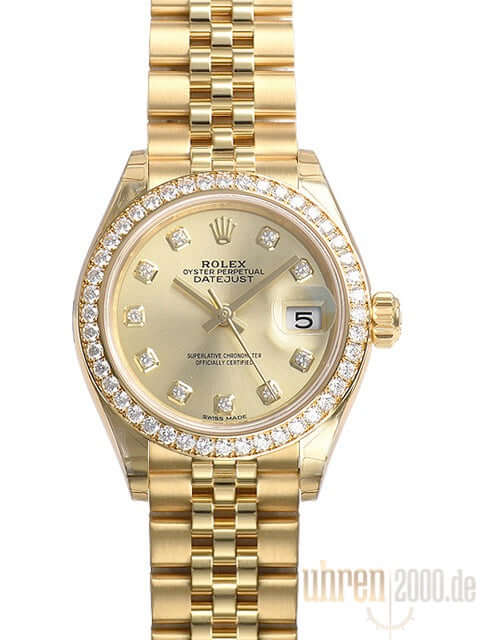 Rolex Lady-Datejust 28 Gelbgold Ref. 279138RBR Champagner Diamant Jubile-Band