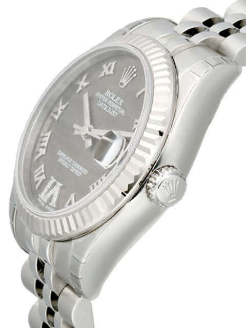 Gehäuse aus Edelstahl poliert und satiniert, Gehäusedurchmesser 31 mm, Lünette aus 18 kt Weißgold geriffelt, Jubile Edelstahl Armband poliert und satiniert mit Faltschließe, Bronze DIA Zifferblatt mit aufgesetzten römischen Ziffern und 11 Diamanten auf der VI, Automatik, Rolex Manufakturkaliber 2235, Chronometer, Datum, Saphirglas, Krone verschraubt, Edelstahlboden verschraubt, Wasserdicht bis 10 bar.