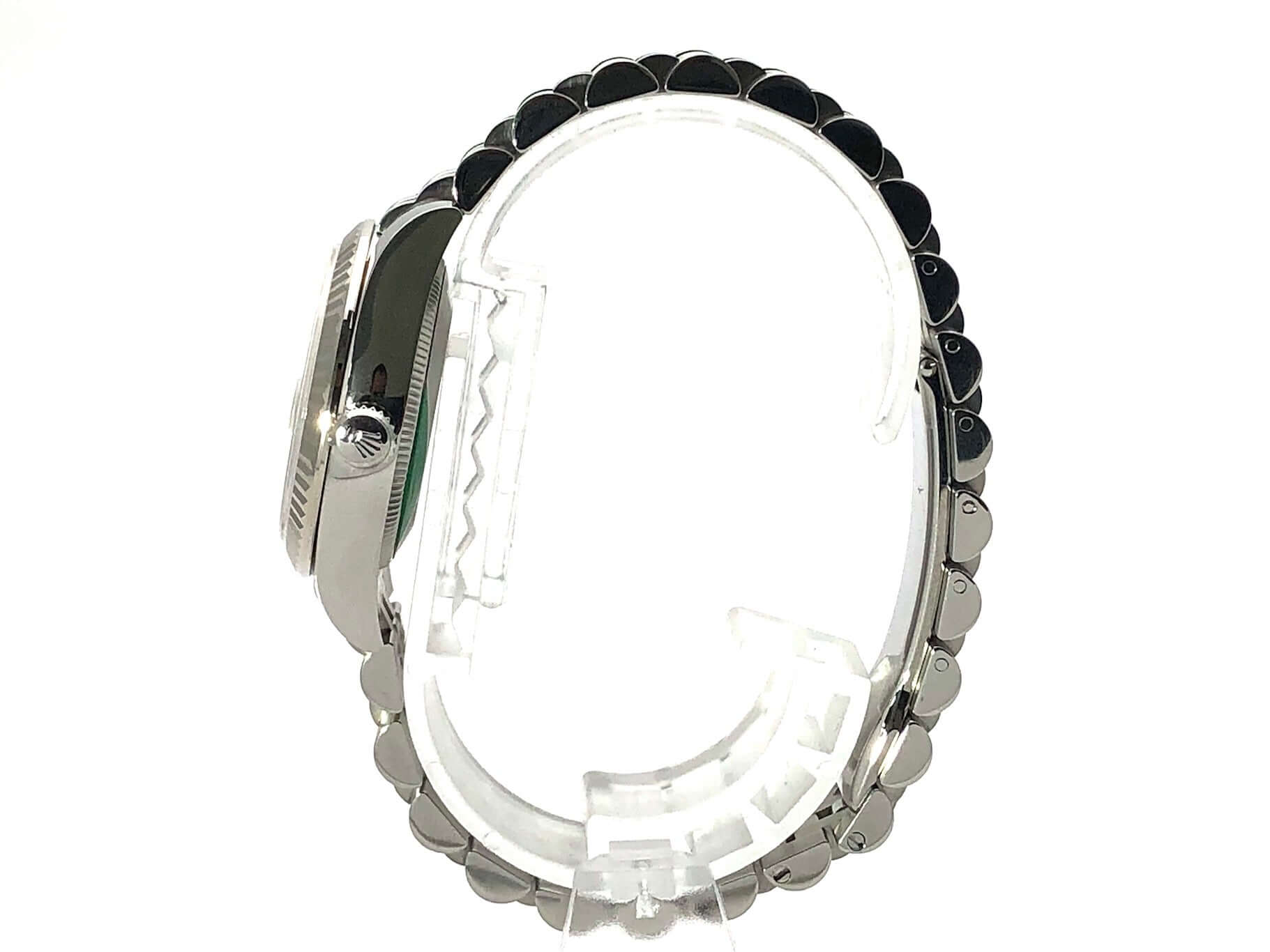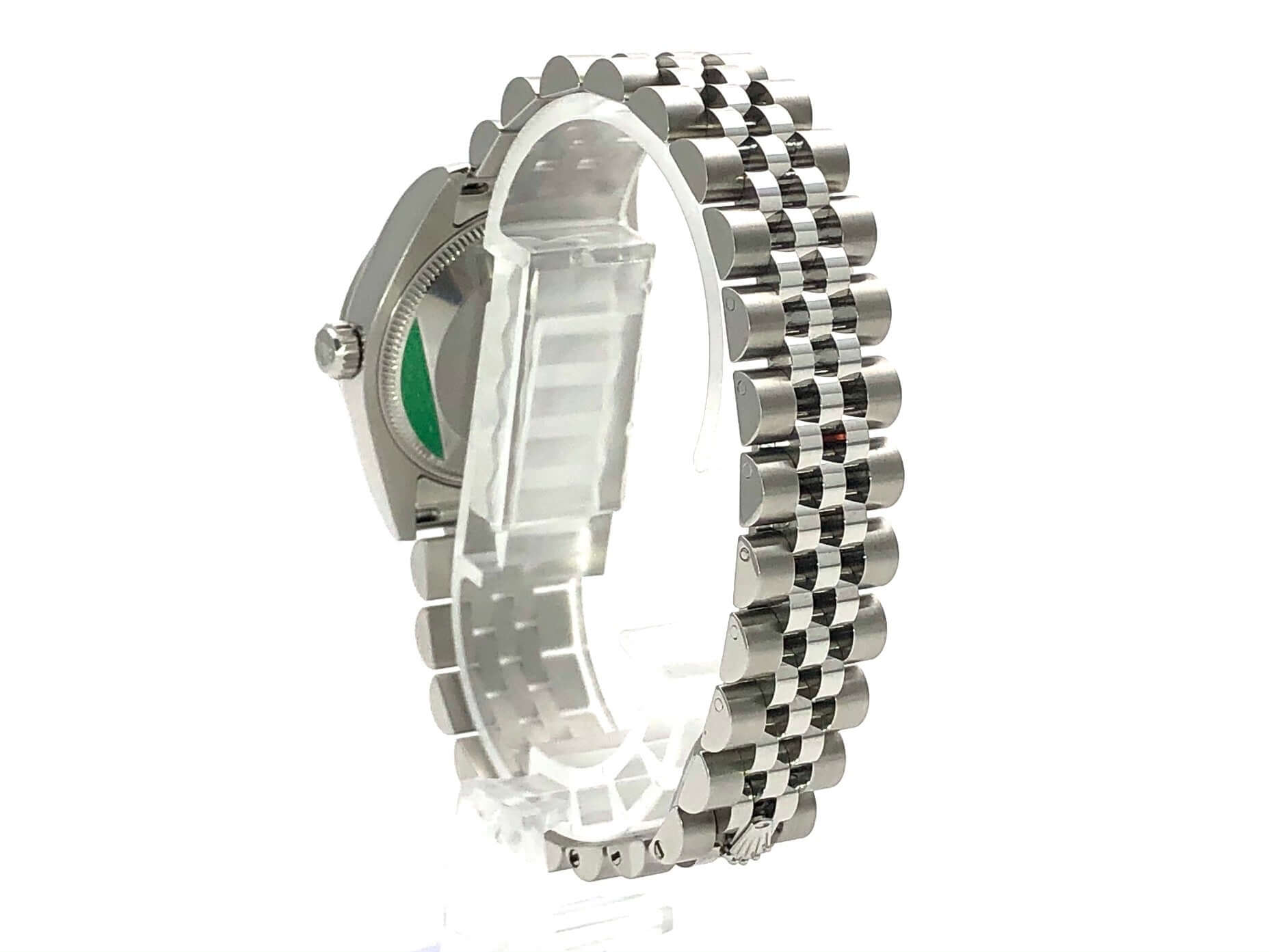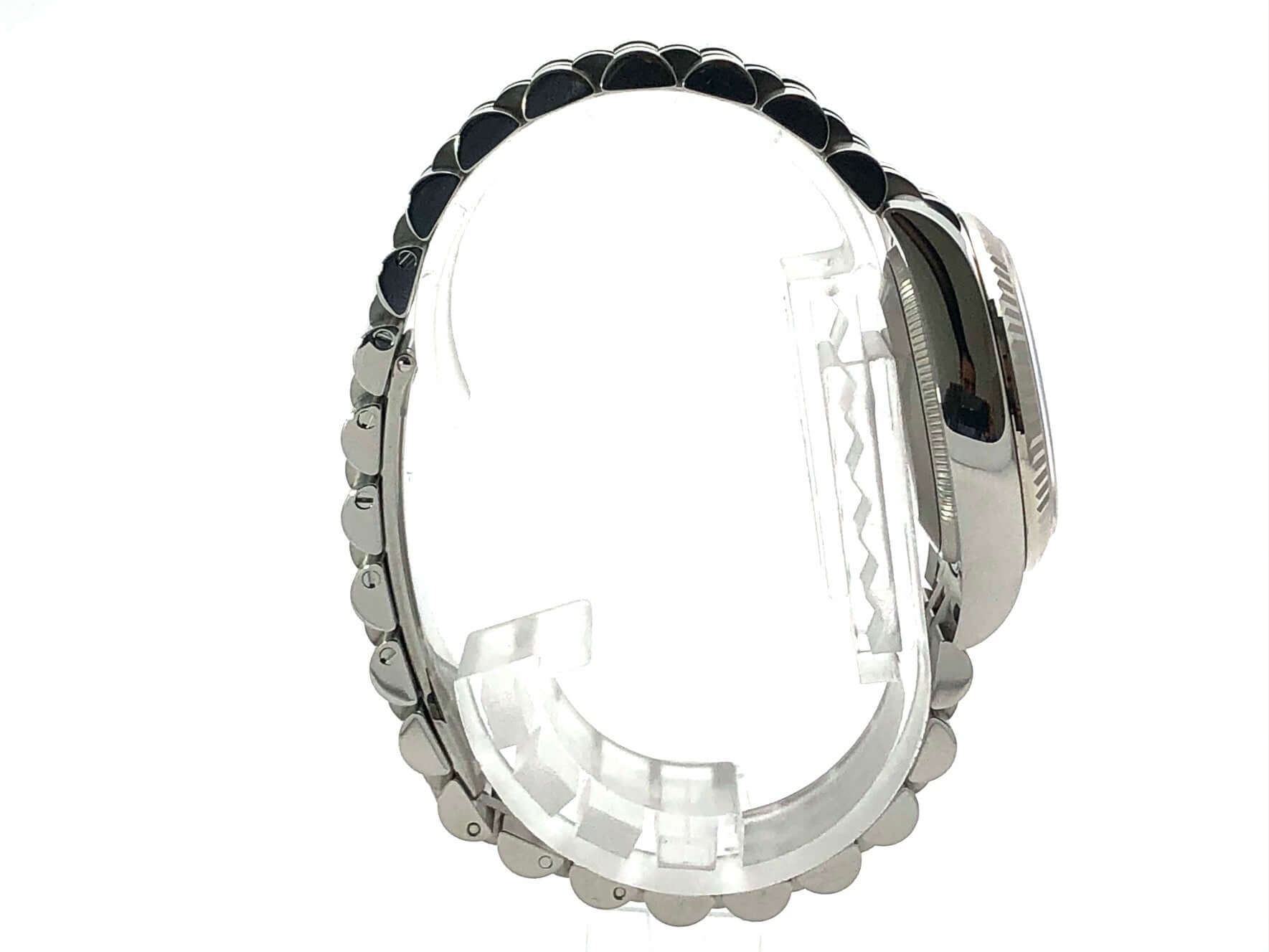 Gehäuse aus Edelstahl poliert und satiniert, Gehäusedurchmesser 31 mm, Lünette aus 18 kt Weißgold geriffelt, Jubile Edelstahl Armband poliert und satiniert mit Faltschließe, silberfarbenes Zifferblatt mit aufgesetzten Leuchtindizes, Leuchtzeiger, Automatik, Rolex Manufakturkaliber 2235, Chronometer, Datum, Saphirglas, Krone verschraubt, Edelstahlboden verschraubt, Wasserdicht bis 10 bar.