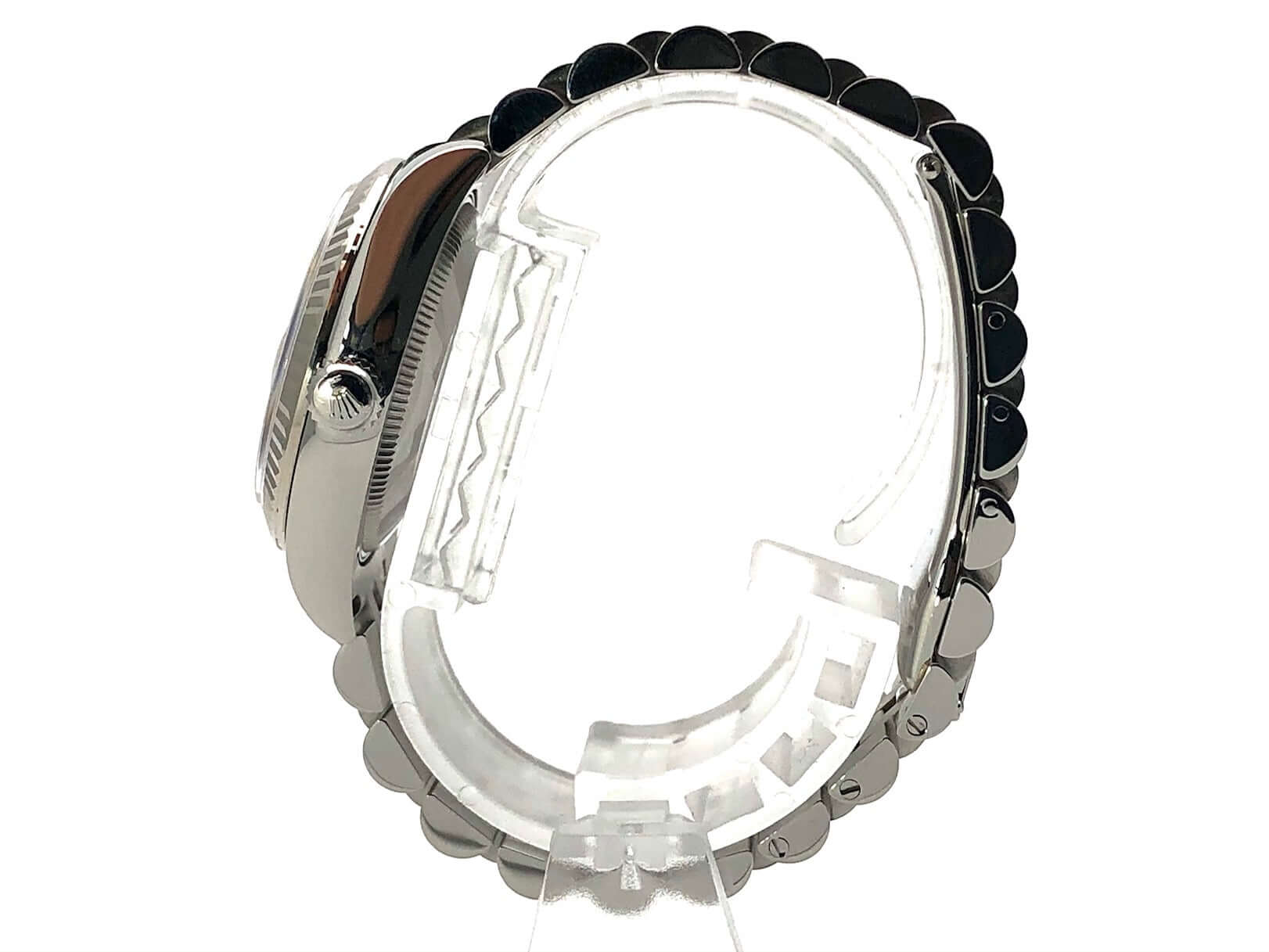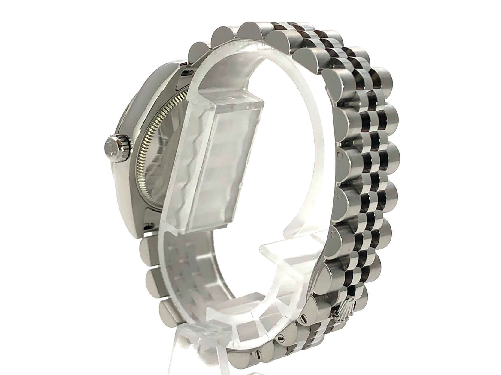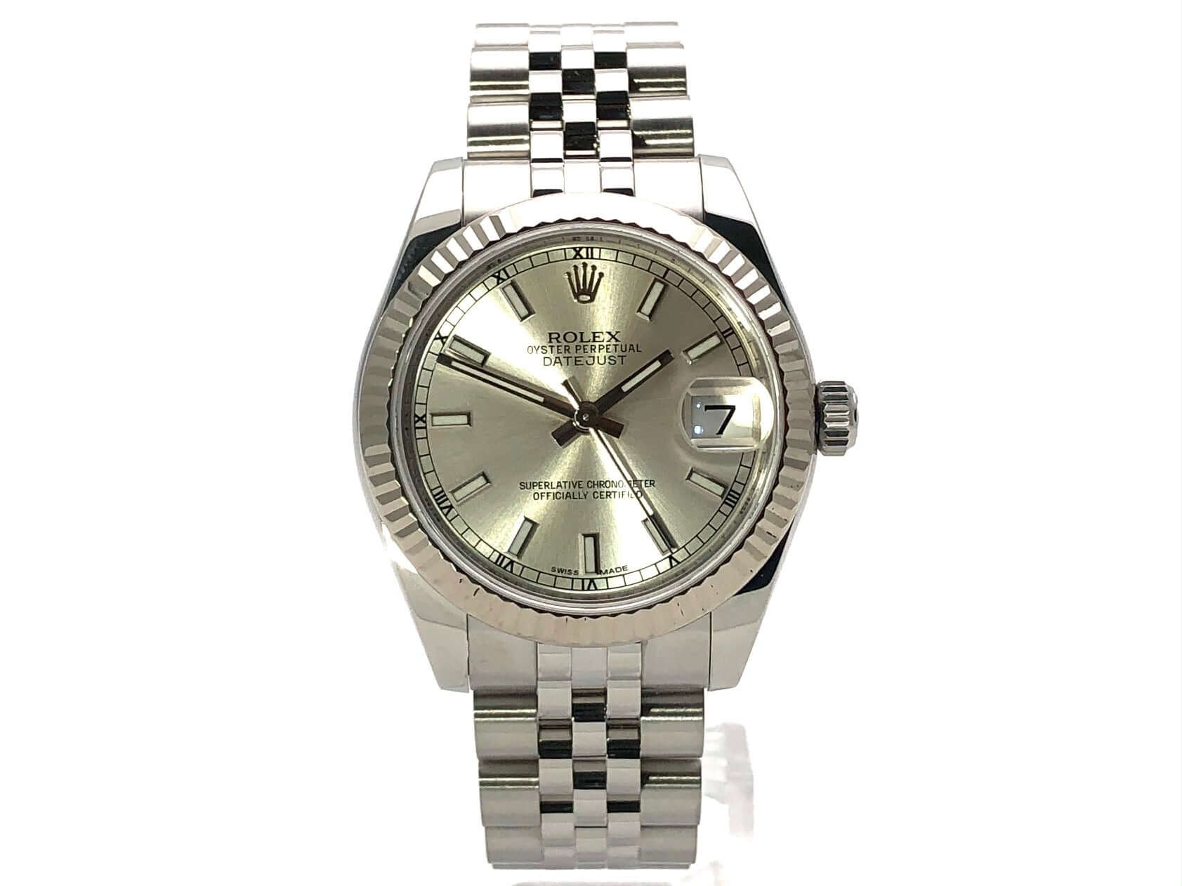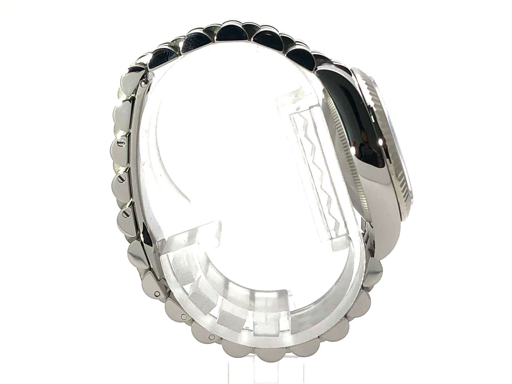 Gehäuse aus Edelstahl poliert und satiniert, Gehäusedurchmesser 31 mm, Lünette aus 18 kt Weißgold geriffelt, Jubile Edelstahl Armband poliert und satiniert mit Faltschließe, silberfarbenes Zifferblatt mit aufgesetzten Leuchtindizes, Leuchtzeiger, Automatik, Rolex Manufakturkaliber 2235, Chronometer, Datum, Saphirglas, Krone verschraubt, Edelstahlboden verschraubt, Wasserdicht bis 10 bar.