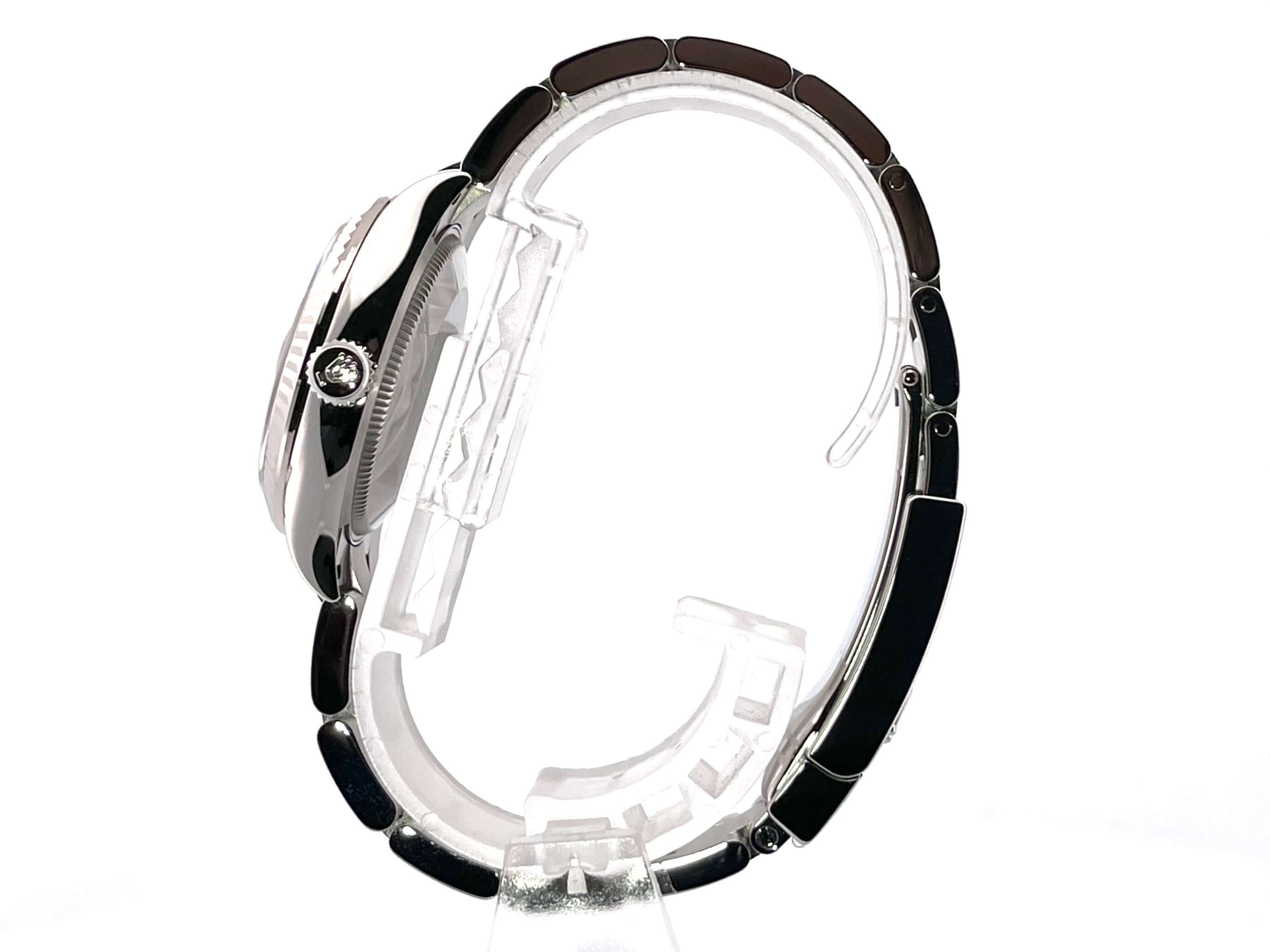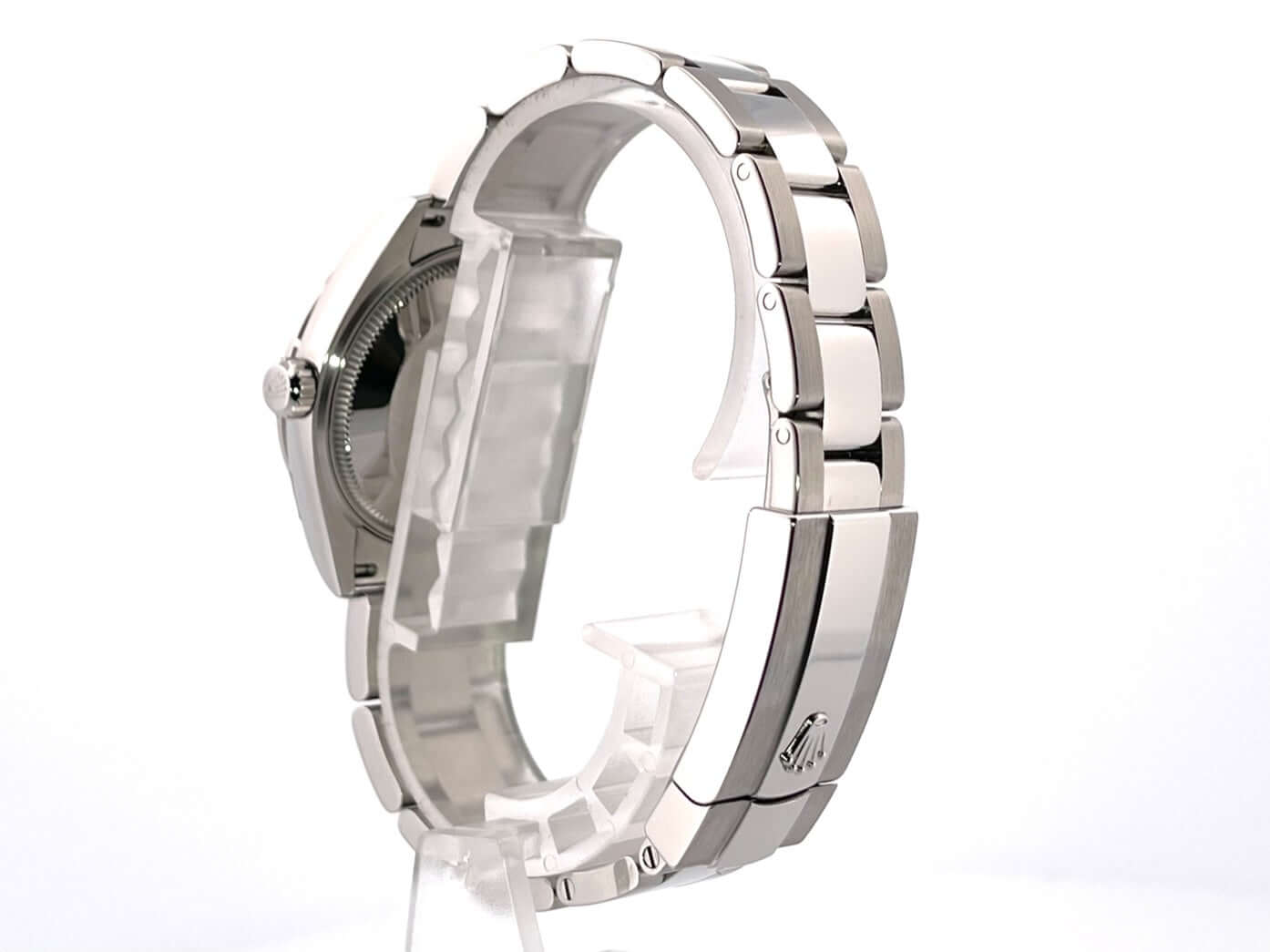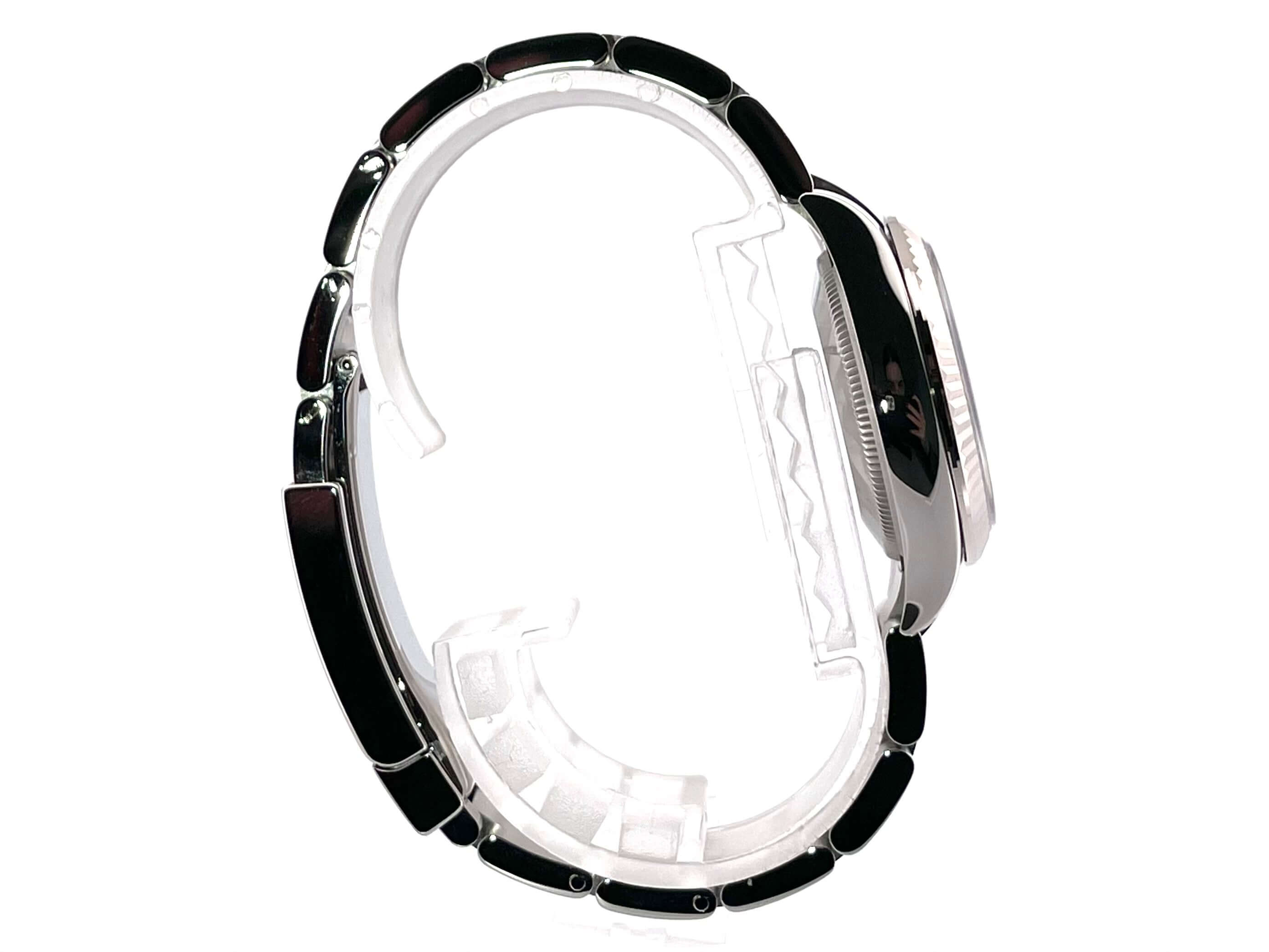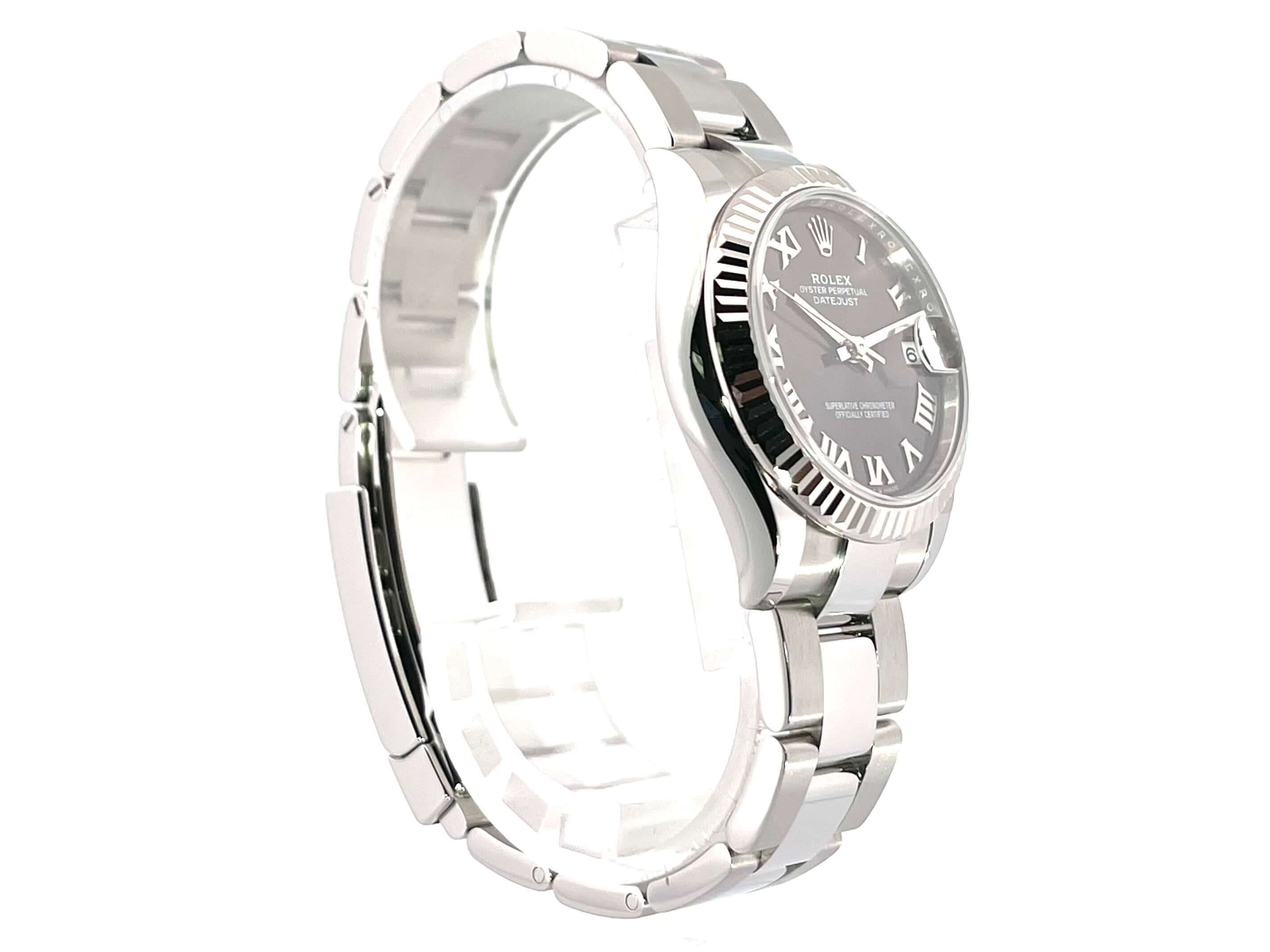 Gehäuse aus Edelstahl poliert und satiniert, Gehäusedurchmesser 31 mm, Lünette aus 18 kt Weißgold geriffelt, Oyster Edelstahl Armband poliert und satiniert mit Faltschließe, dunkelgraues Zifferblatt mit aufgesetzten römischen Ziffern, Automatik, Rolex Manufakturkaliber 2236, 55 Stunden Gangreserve, Datum, Chronometer, Saphirglas, Krone verschraubt, Edelstahlboden verschraubt, Wasserdicht bis 10 bar.