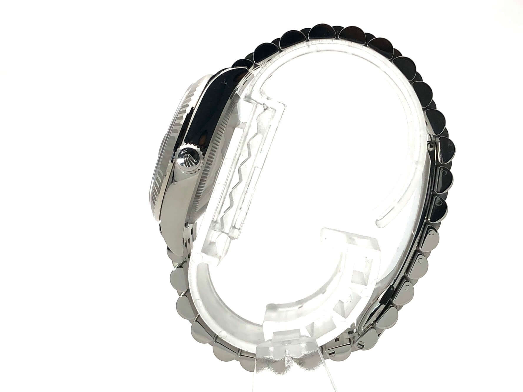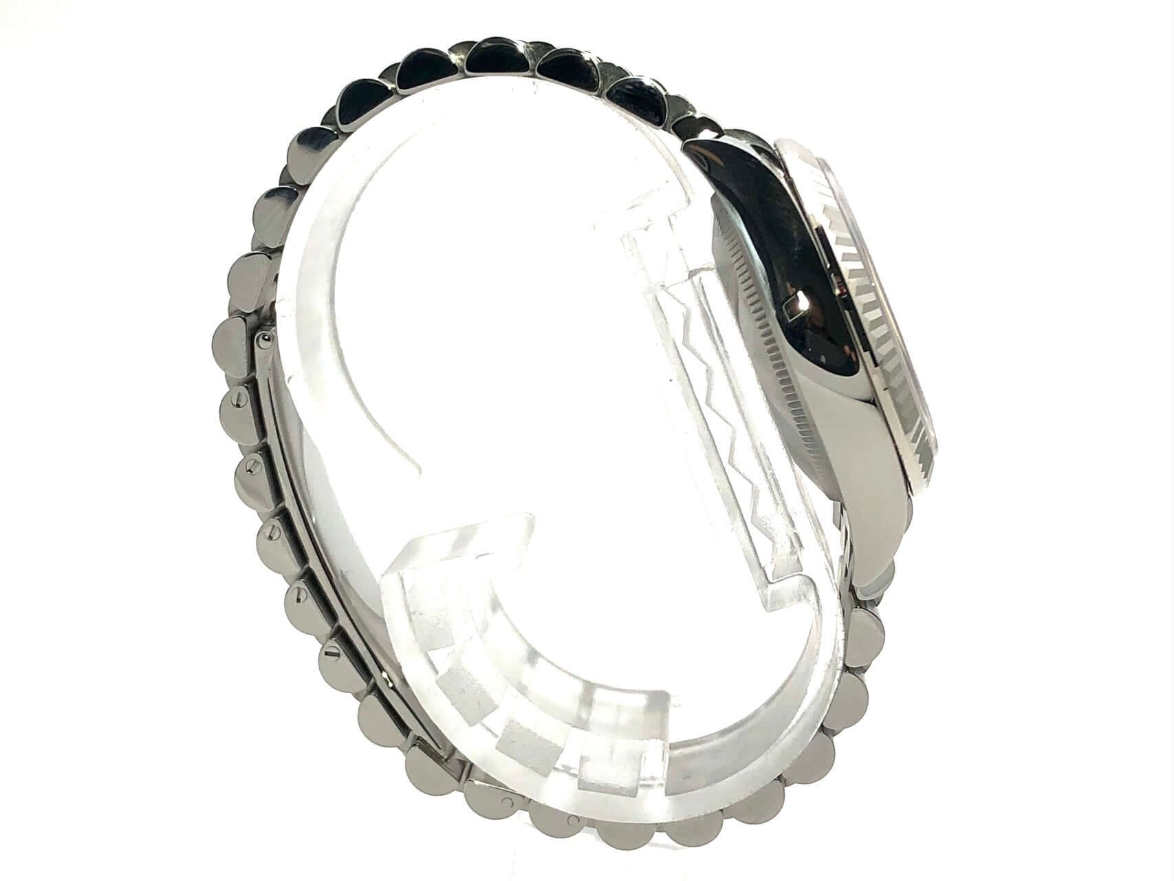 Gehäuse aus Edelstahl poliert und satiniert, Gehäusedurchmesser 31 mm, Lünette aus 18 kt Weißgold geriffelt, Jubile Edelstahl Armband poliert und satiniert mit Faltschließe, dunkelgraues Zifferblatt mit aufgesetzten römischen Ziffern, Automatik, Rolex Manufakturkaliber 2236, 55 Stunden Gangreserve, Datum, Chronometer, Saphirglas, Krone verschraubt, Edelstahlboden verschraubt, Wasserdicht bis 10 bar.