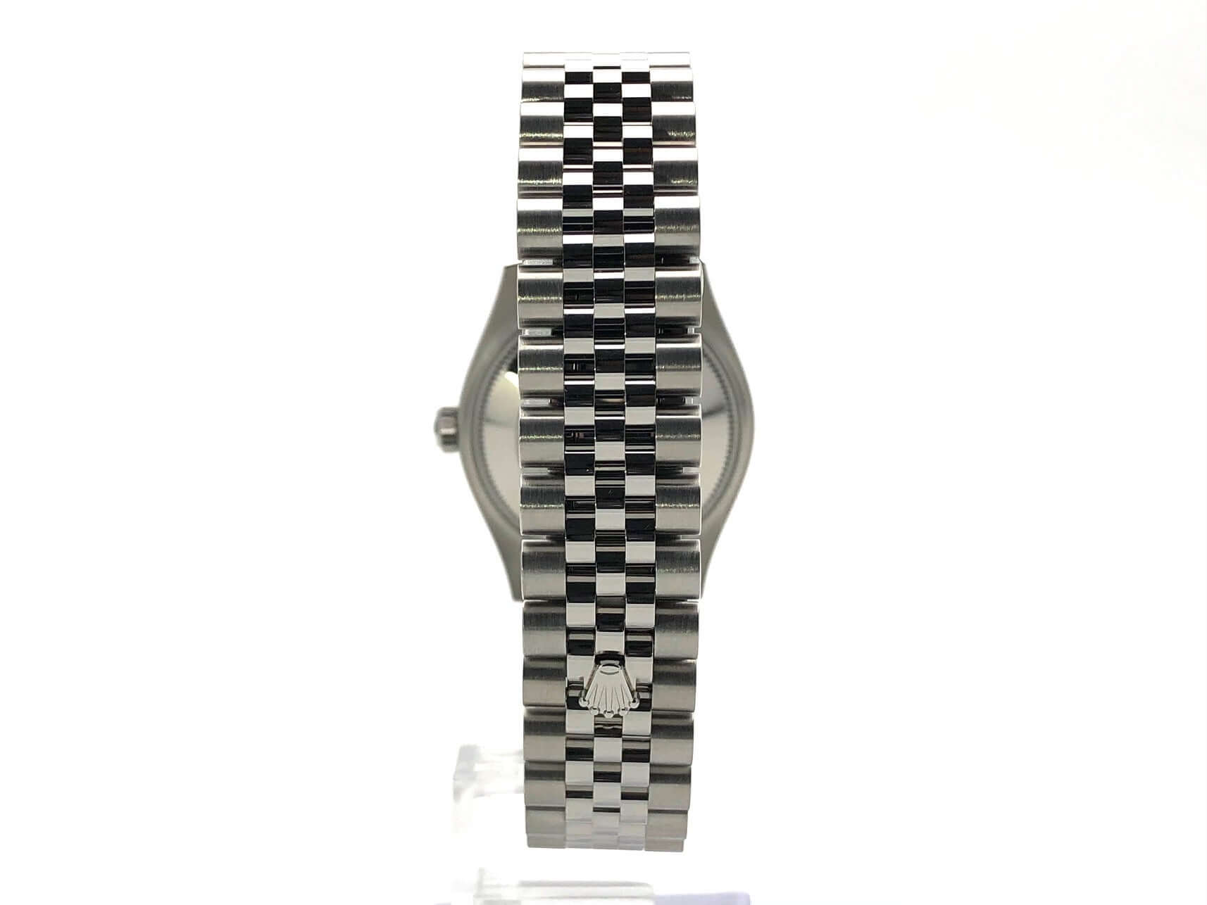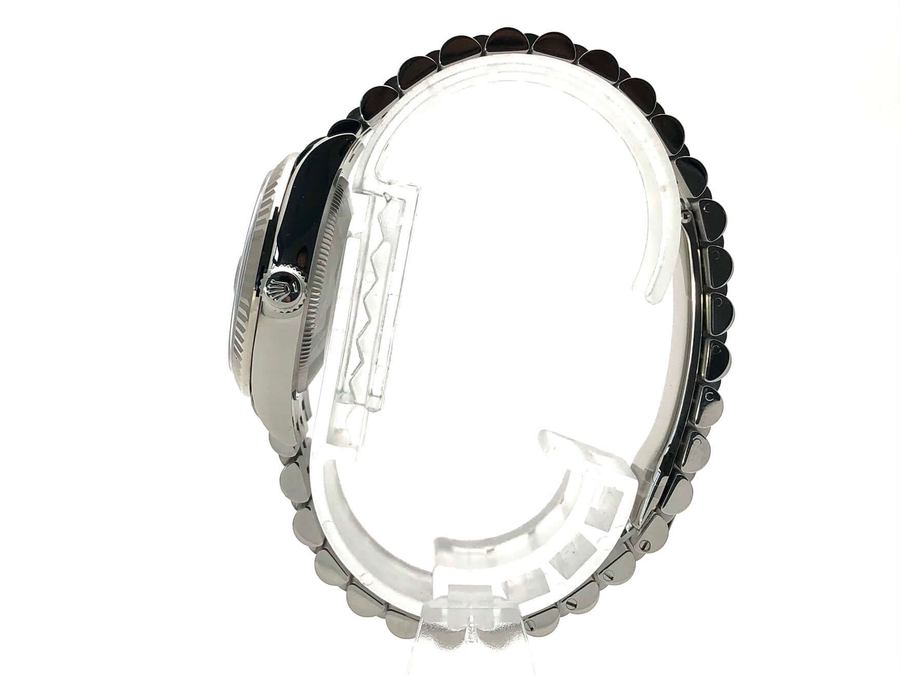 Gehäuse aus Edelstahl poliert und satiniert, Gehäusedurchmesser 31 mm, Lünette aus 18 kt Weißgold geriffelt, Jubile Edelstahl Armband poliert und satiniert mit Faltschließe, grünes Zifferblatt mit Leuchtindizes, Automatik, Rolex Manufakturkaliber 2236, 55 Stunden Gangreserve, Datum, Chronometer, Saphirglas, Krone verschraubt, Edelstahlboden verschraubt, Wasserdicht bis 10 bar.