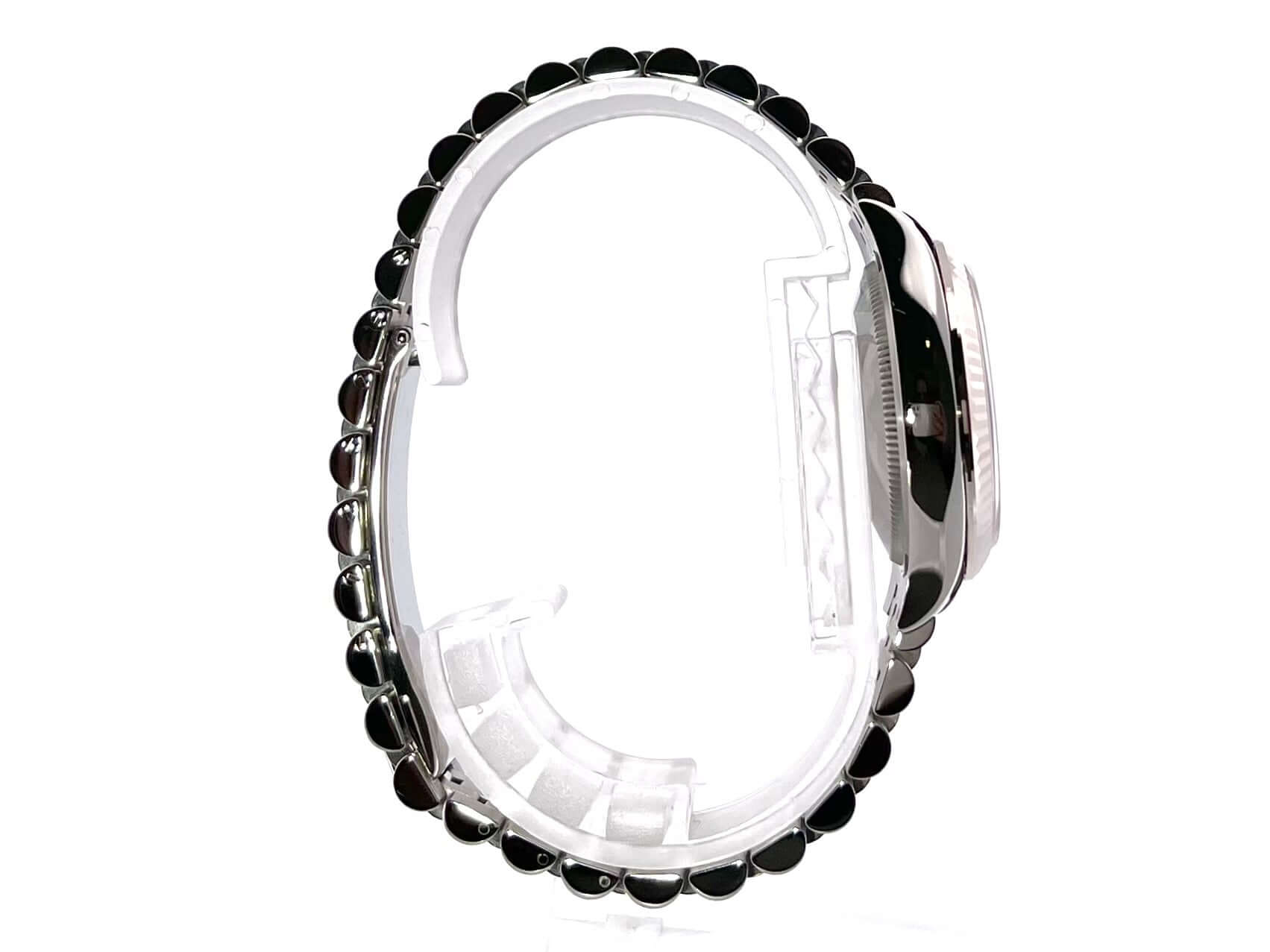 Gehäuse aus Edelstahl poliert und satiniert, Gehäusedurchmesser 31 mm, Lünette aus 18 kt Weißgold geriffelt, Jubile Edelstahl Armband poliert und satiniert mit Faltschließe, pinkfarbenes Zifferblatt mit Diamanten besetzt, Automatik, Rolex Manufakturkaliber 2236, 55 Stunden Gangreserve, Datum, Chronometer, Saphirglas, Krone verschraubt, Edelstahlboden verschraubt, Wasserdicht bis 10 bar.