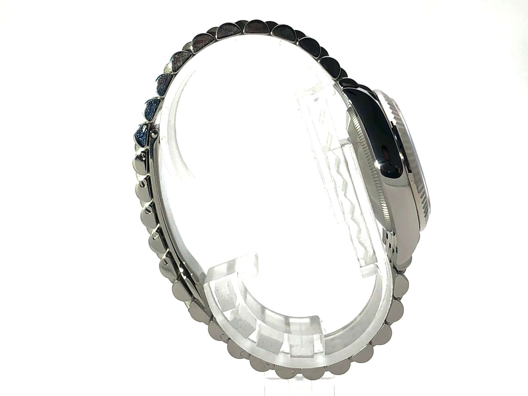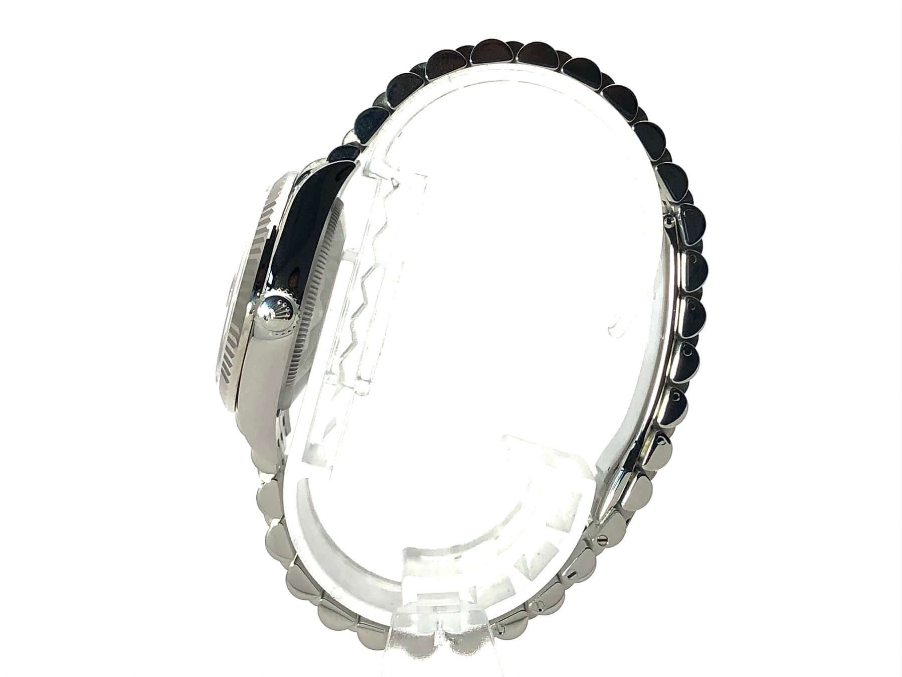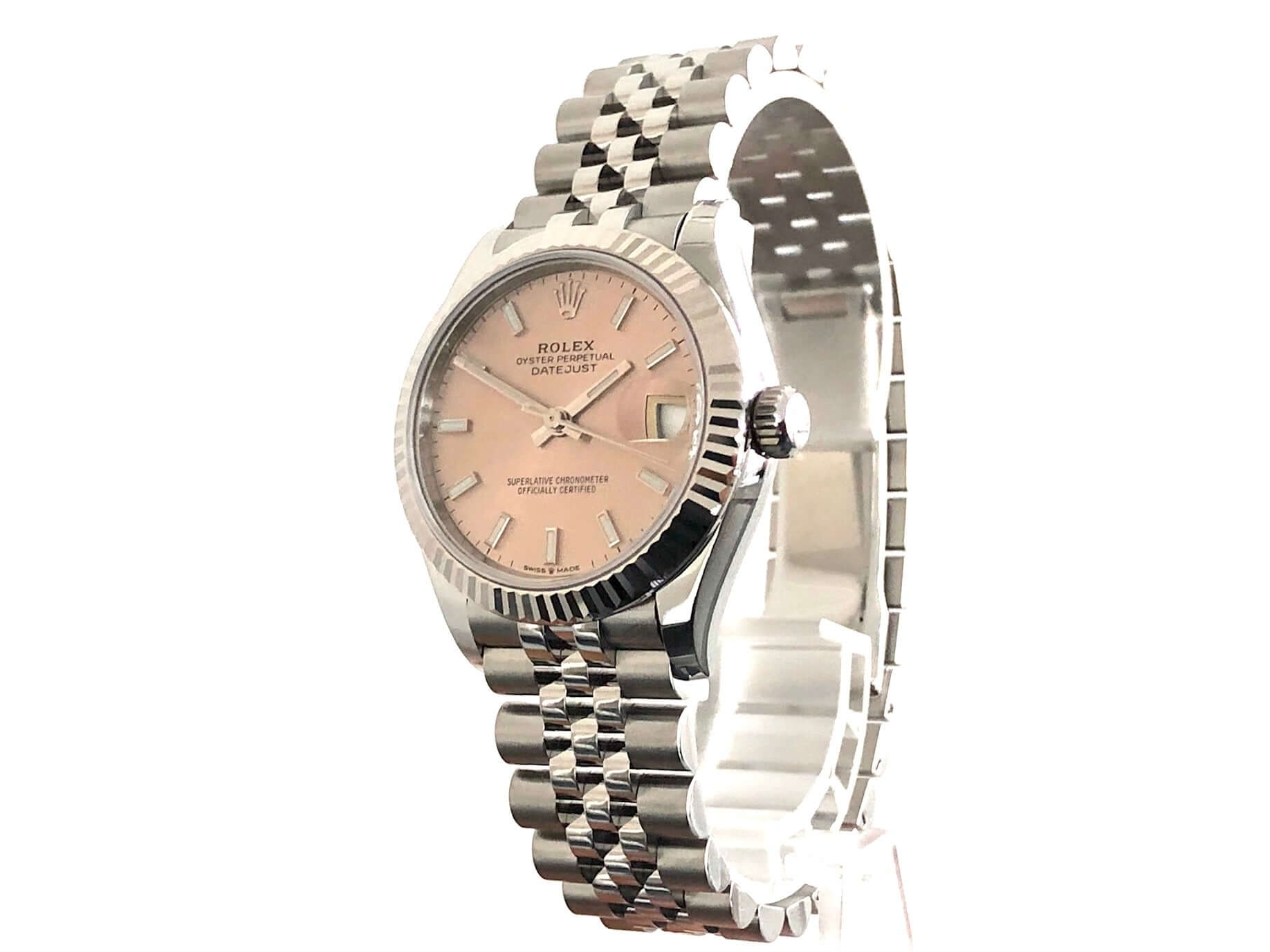 Gehäuse aus Edelstahl poliert und satiniert, Gehäusedurchmesser 31 mm, Lünette aus 18 kt Weißgold geriffelt, Jubile Edelstahl Armband poliert und satiniert mit Faltschließe, pinkfarbenes Zifferblatt mit Leuchtindizes, Automatik, Rolex Manufakturkaliber 2236, 55 Stunden Gangreserve, Datum, Chronometer, Saphirglas, Krone verschraubt, Edelstahlboden verschraubt, Wasserdicht bis 10 bar.