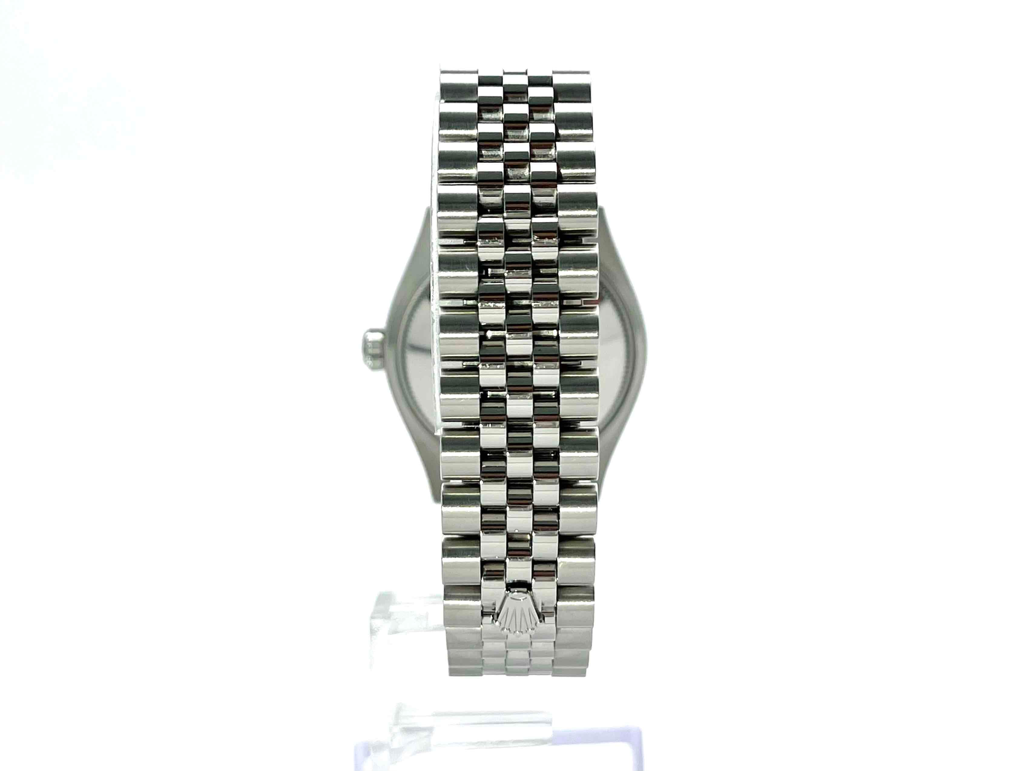 Gehäuse aus Edelstahl poliert und satiniert, Gehäusedurchmesser 31 mm, Lünette aus 18 kt Weißgold geriffelt, Jubile Edelstahl Armband poliert und satiniert mit Faltschließe, pinkfarbenes Zifferblatt mit aufgesetzten römischen Ziffern, Automatik, Rolex Manufakturkaliber 2236, 55 Stunden Gangreserve, Datum, Chronometer, Saphirglas, Krone verschraubt, Edelstahlboden verschraubt, Wasserdicht bis 10 bar.
