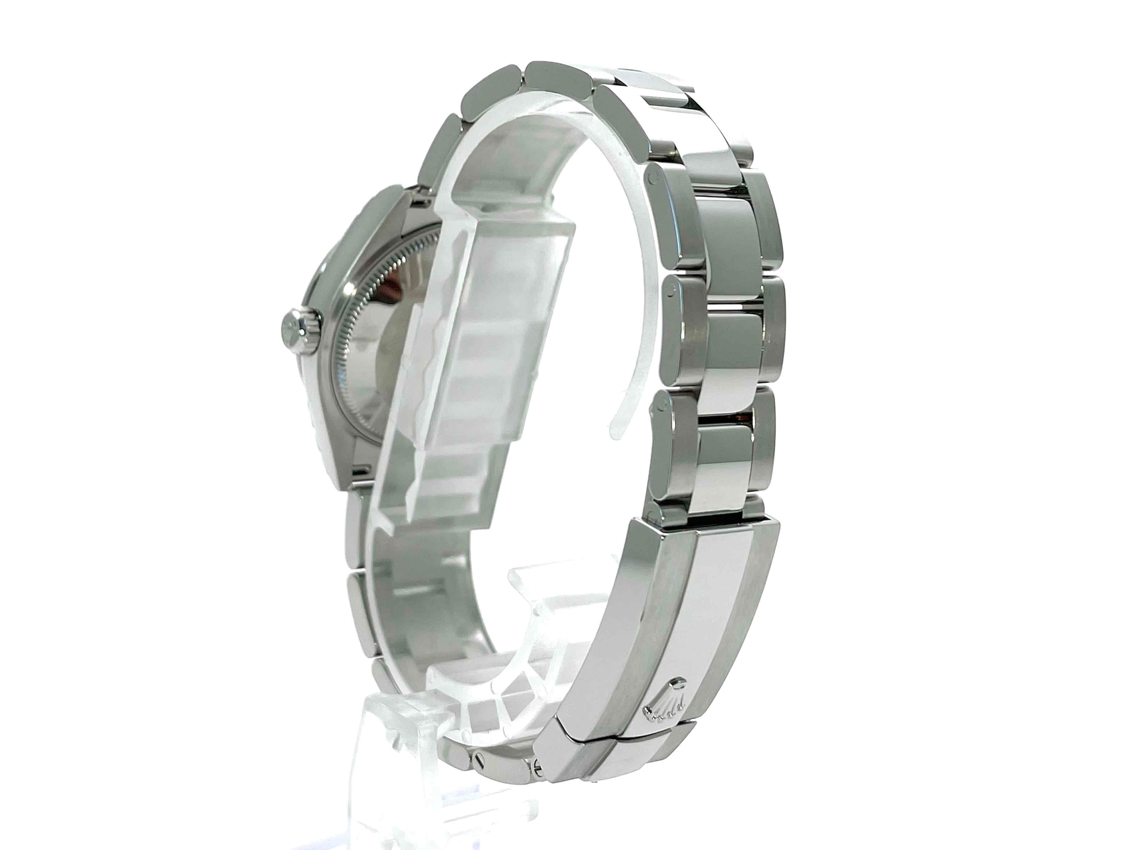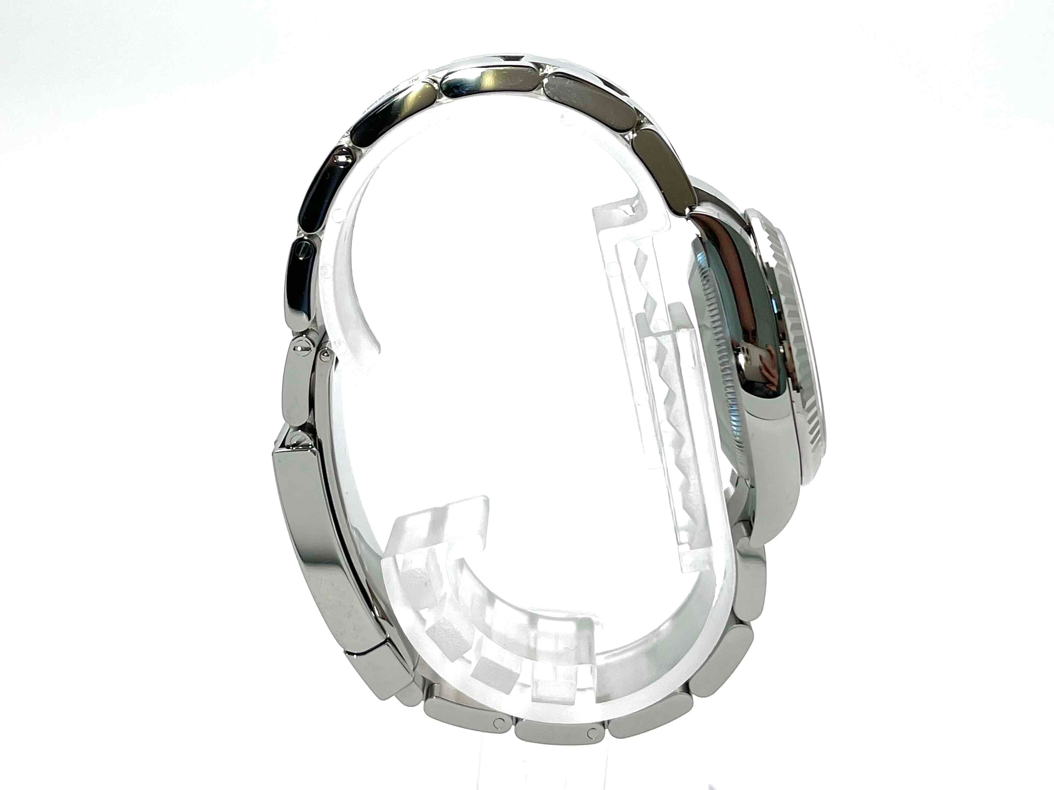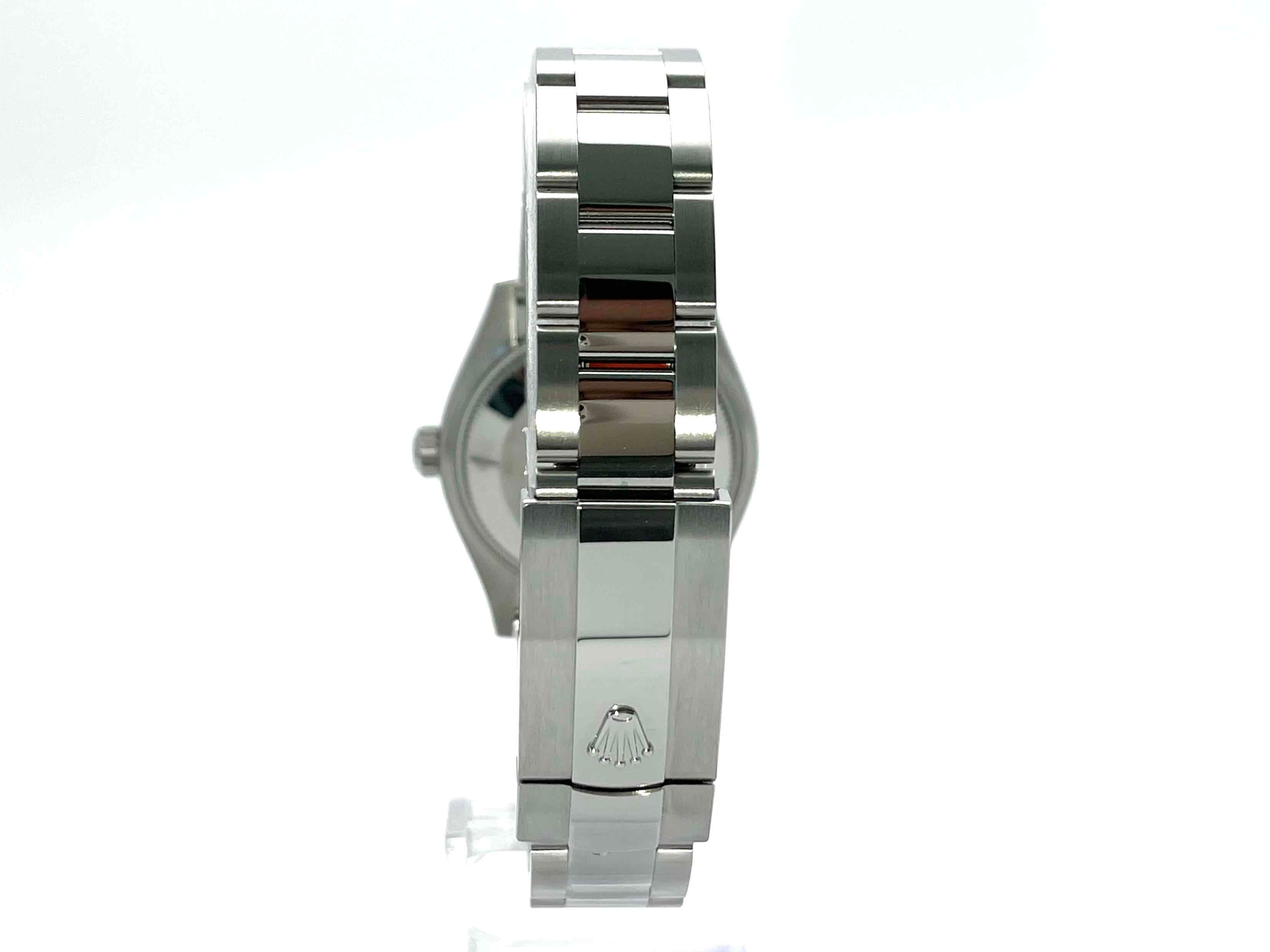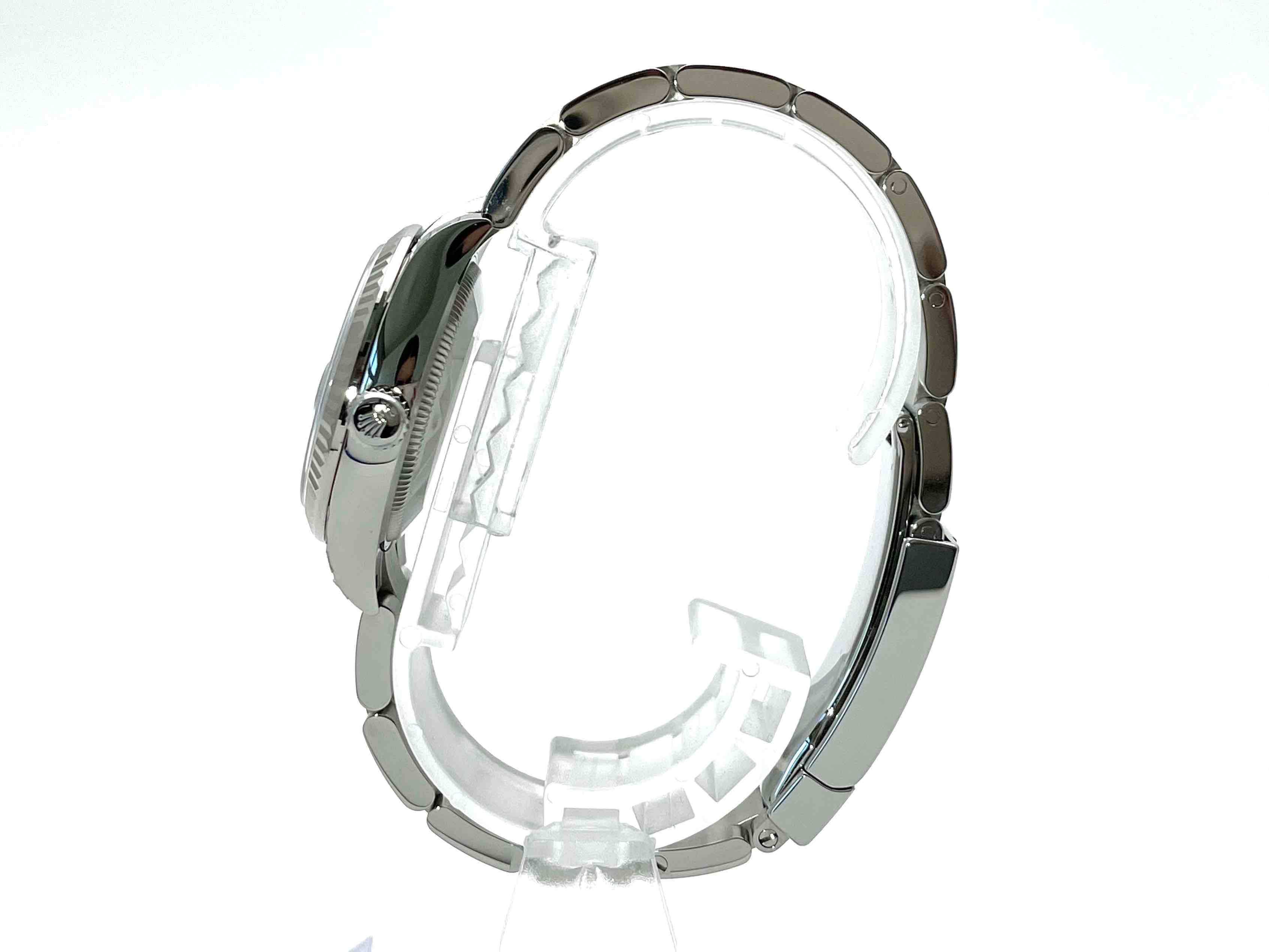 Gehäuse aus Edelstahl poliert und satiniert, Gehäusedurchmesser 31 mm, Lünette aus 18 kt Weißgold geriffelt, Oyster Edelstahl Armband poliert und satiniert mit Faltschließe, schwarzes Zifferblatt mit aufgesetzten römischen Ziffern, Automatik, Rolex Manufakturkaliber 2236, 55 Stunden Gangreserve, Datum, Chronometer, Saphirglas, Krone verschraubt, Edelstahlboden verschraubt, Wasserdicht bis 10 bar.