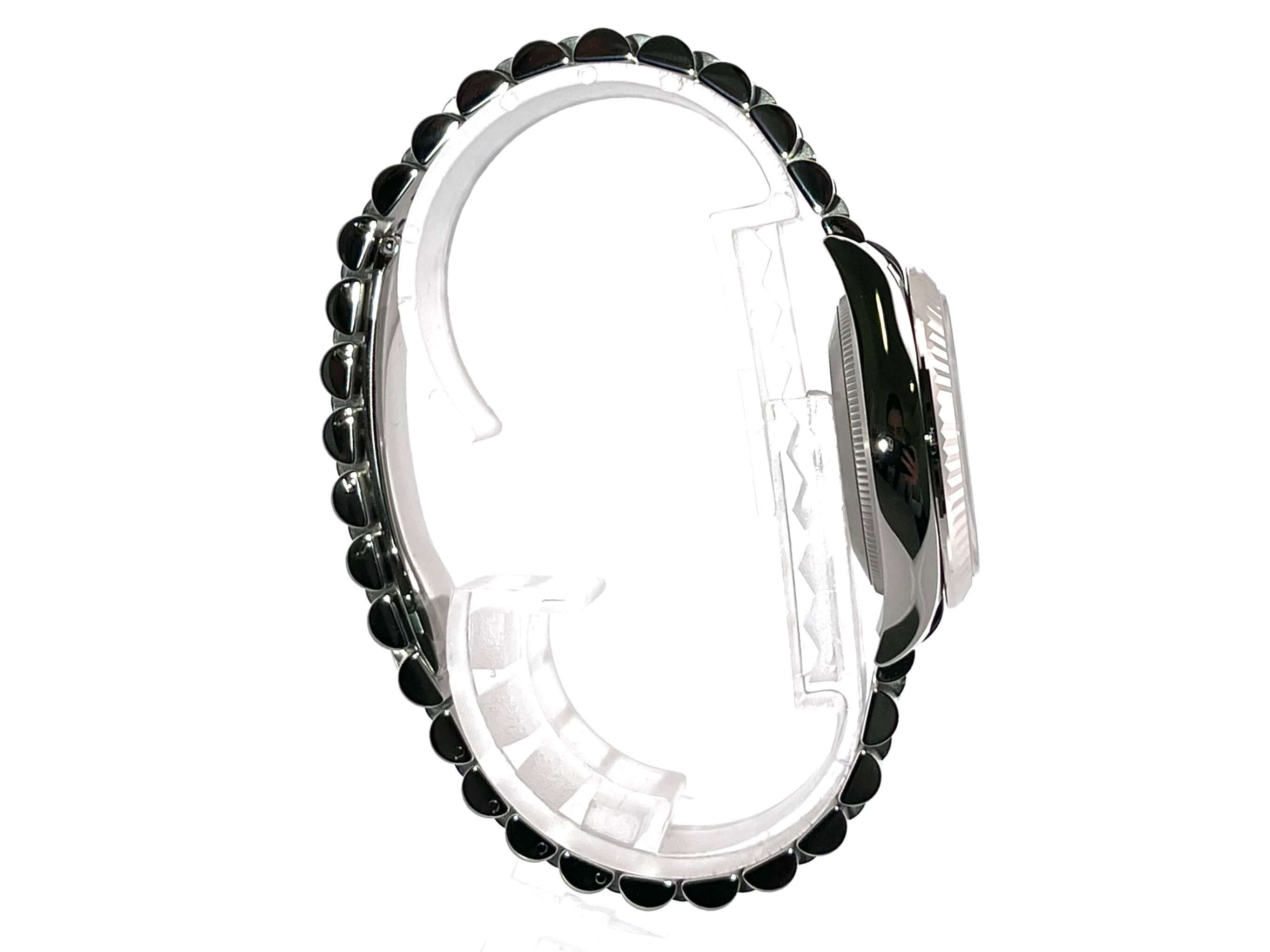 Gehäuse aus Edelstahl poliert und satiniert, Gehäusedurchmesser 31 mm, Lünette aus 18 kt Weißgold geriffelt, Jubile Edelstahl Armband poliert und satiniert mit Faltschließe, silberfarbenes Zifferblatt mit Leuchtindizes, Automatik, Rolex Manufakturkaliber 2236, 55 Stunden Gangreserve, Datum, Chronometer, Saphirglas, Krone verschraubt, Edelstahlboden verschraubt, Wasserdicht bis 10 bar.