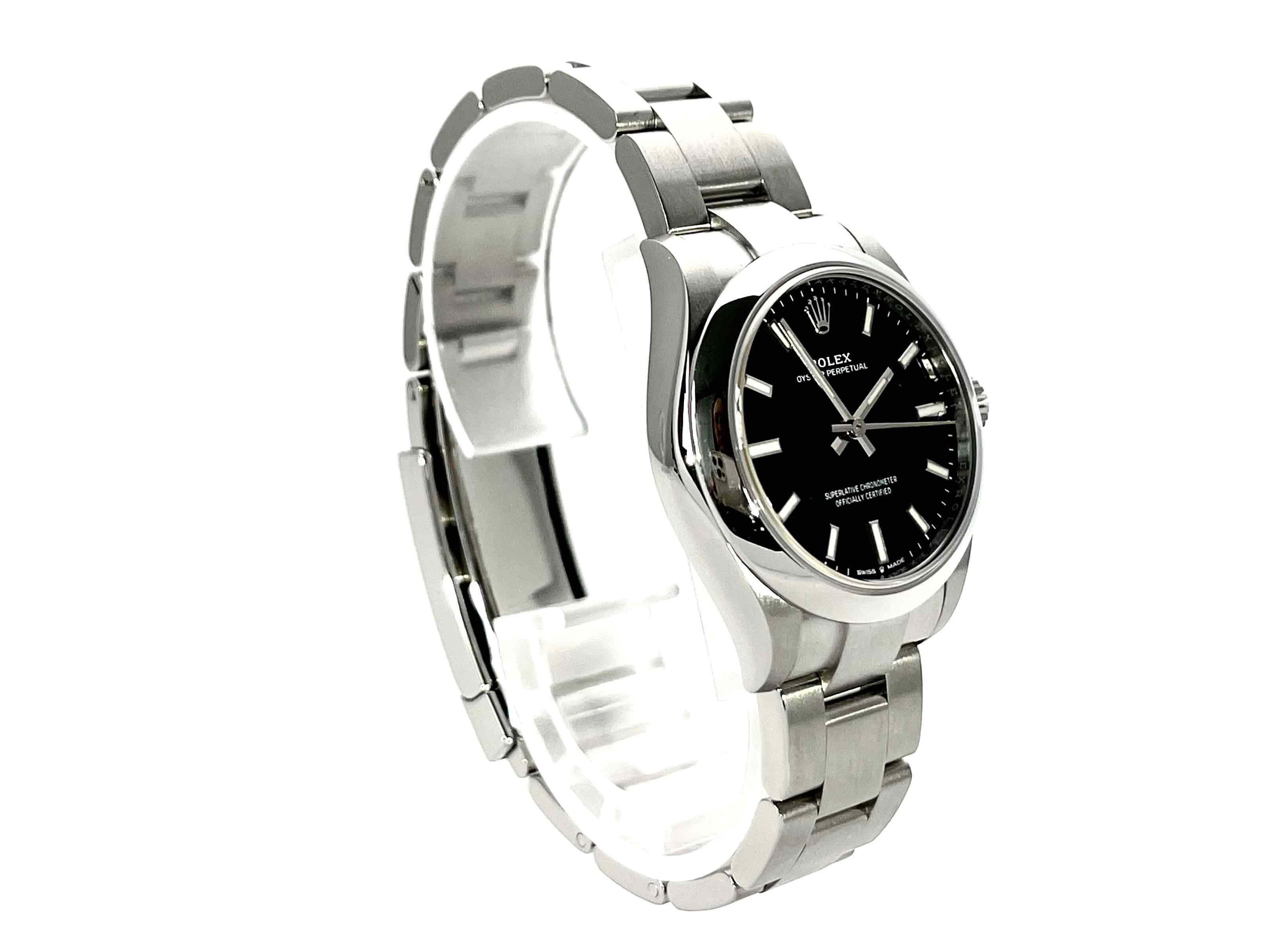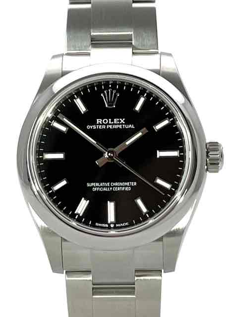 Gehäuse aus Edelstahl poliert und satiniert, Gehäusedurchmesser 31 mm, Oyster Edelstahlband poliert und satiniert mit Faltschließe, schwarzes Zifferblatt mit aufgesetzten Leuchtindizes, Leuchtzeiger, Automatik, Rolex Manufakturkaliber 2232, 55 Stunden Gangreserve, Chronometer, Saphirglas, Wasserdicht bis 10 bar.