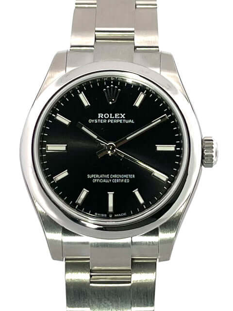 Gehäuse aus Edelstahl poliert und satiniert, Gehäusedurchmesser 31 mm, Oyster Edelstahlband poliert und satiniert mit Faltschließe, schwarzes Zifferblatt mit aufgesetzten Leuchtindizes, Leuchtzeiger, Automatik, Rolex Manufakturkaliber 2232, 55 Stunden Gangreserve, Chronometer, Saphirglas, Wasserdicht bis 10 bar.