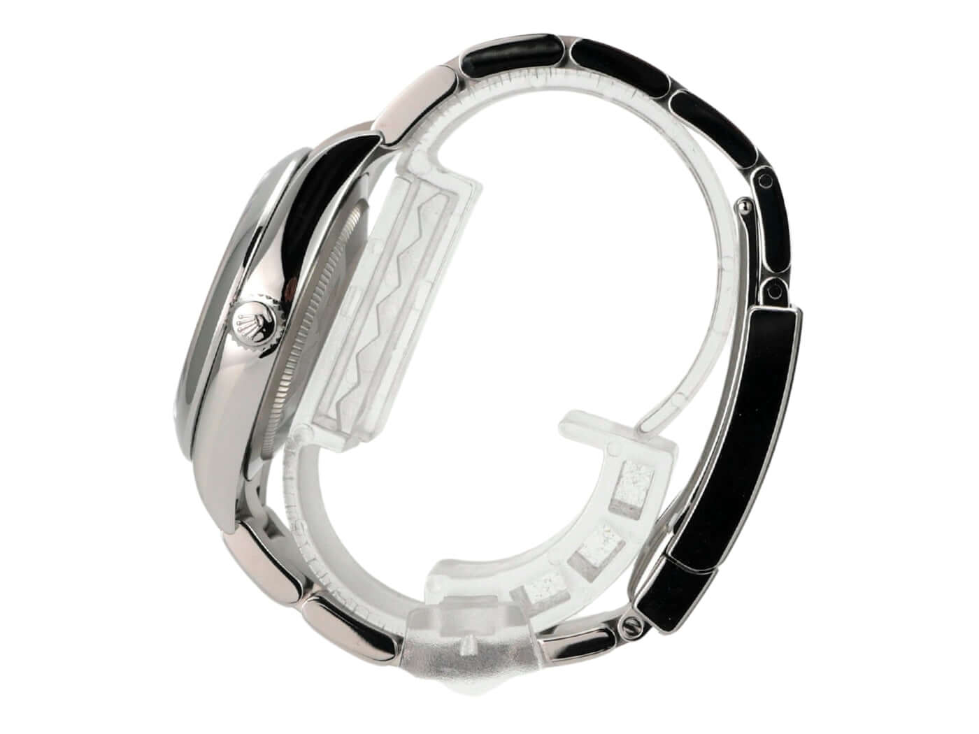Gehäuse aus Edelstahl satiniert, Gehäusedurchmesser 34 mm, polierte Edelstahl Lünette, Oyster Edelstahlband poliert und satiniert mit Faltschließe, beigefarbenes Zifferblatt mit aufgesetzten Leuchtindizes, Leuchtzeiger, Automatik, Rolex Manufakturkaliber 2232, 55 Stunden Gangreserve, Saphirglas, wasserdicht bis zu 10 bar.
