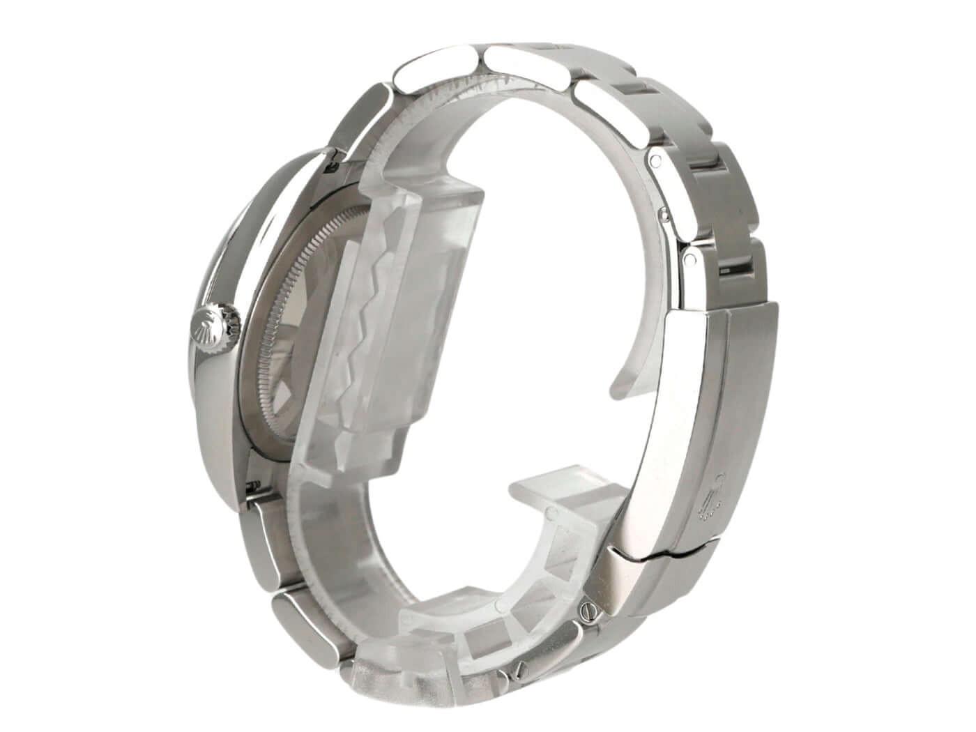 Gehäuse aus Edelstahl satiniert, Gehäusedurchmesser 34 mm, polierte Edelstahl Lünette, Oyster Edelstahlband poliert und satiniert mit Faltschließe, Lavender Zifferblatt mit aufgesetzten Leuchtindizes, Leuchtzeiger, Automatik, Rolex Manufakturkaliber 2232, 55 Stunden Gangreserve, Saphirglas, wasserdicht bis zu 10 bar.