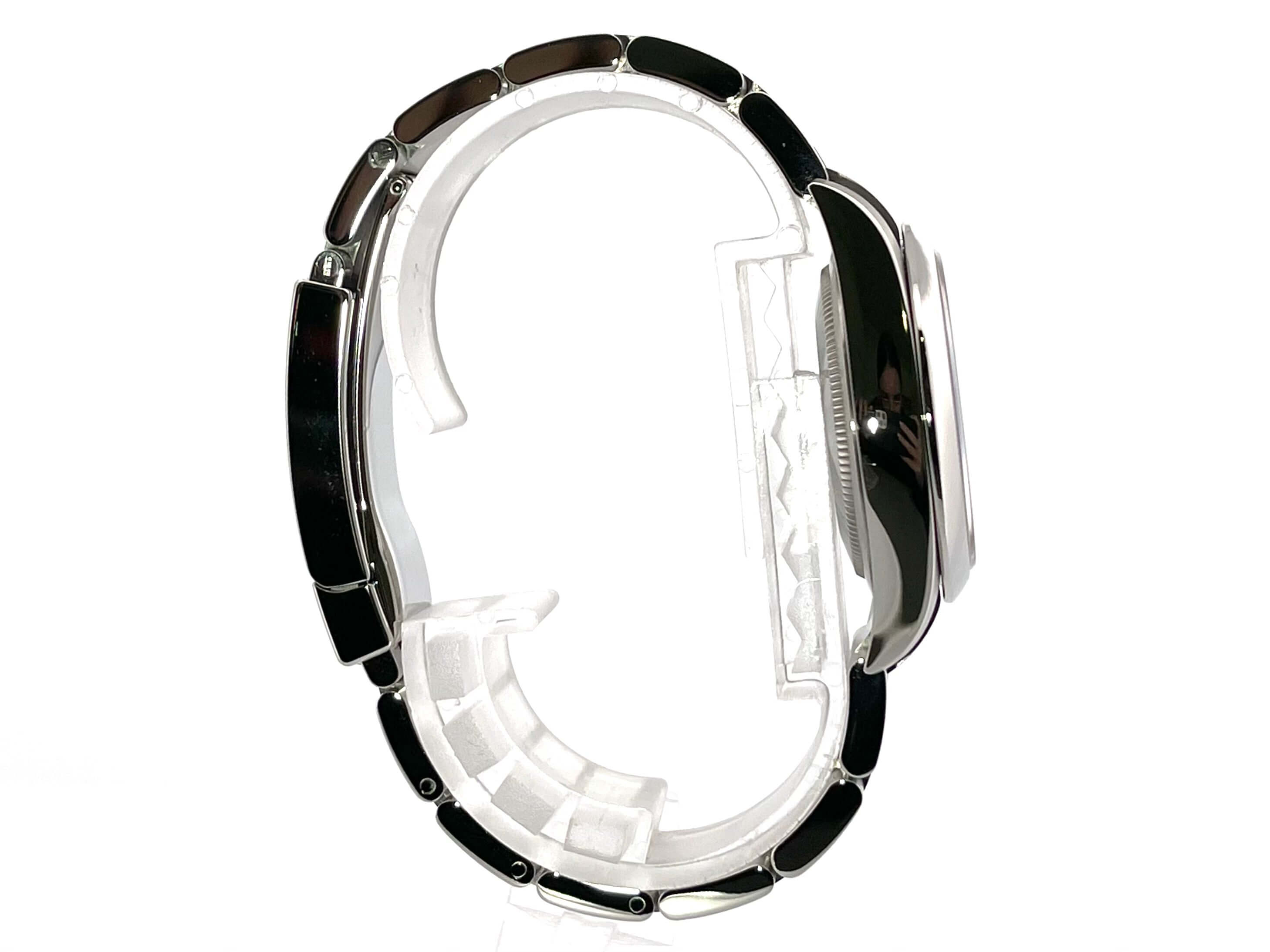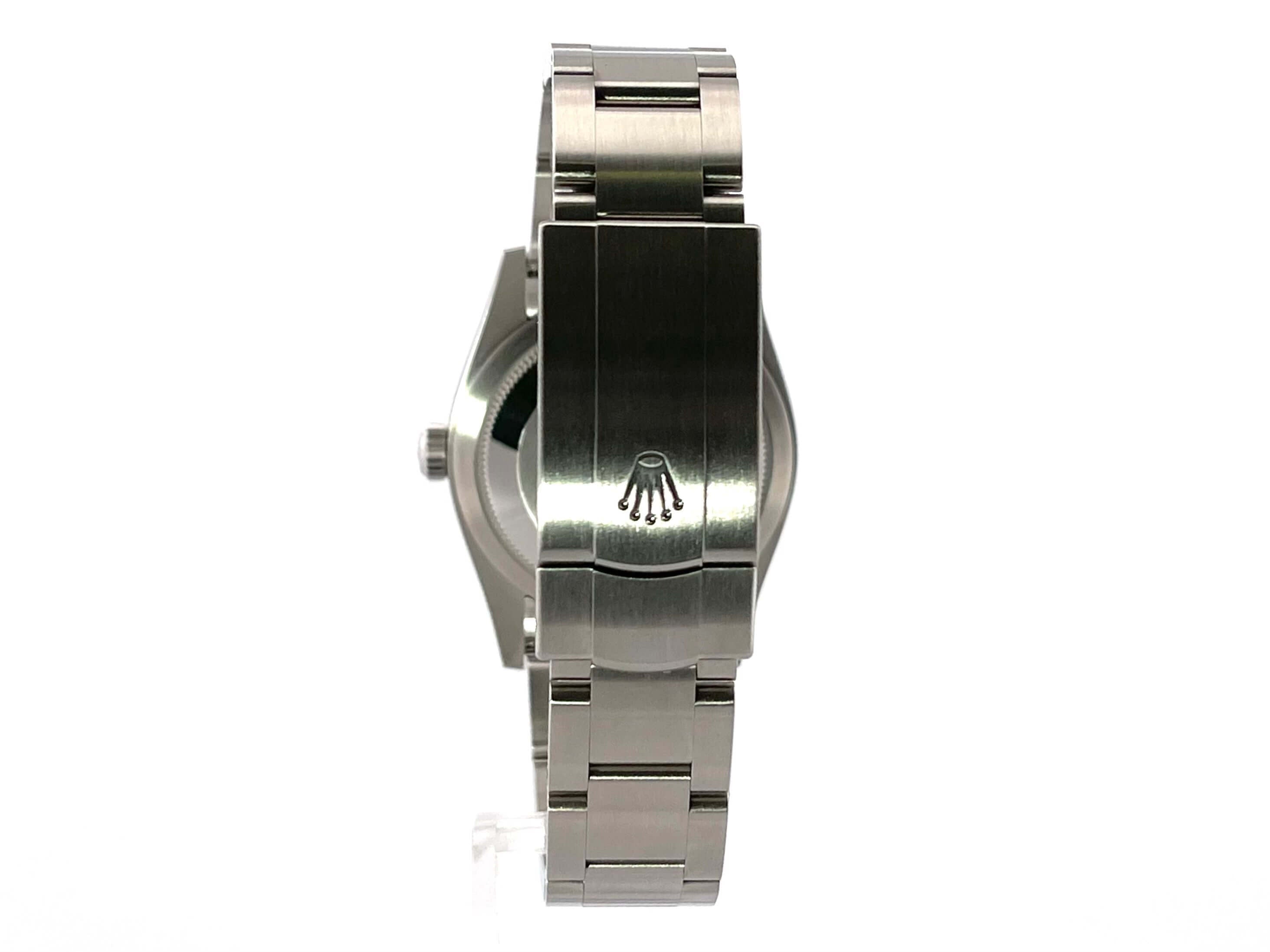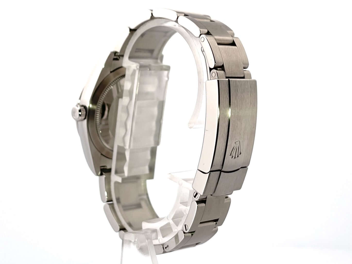 Gehäuse aus Edelstahl satiniert, Gehäusedurchmesser 34 mm, polierte Edelstahl Lünette, Oyster Edelstahlband poliert und satiniert mit Faltschließe, schwarzes Zifferblatt mit aufgesetzten Leuchtindizes, Leuchtzeiger, Automatik, Rolex Manufakturkaliber 2232, 55 Stunden Gangreserve, Saphirglas, Wasserdicht bis zu 10 bar.