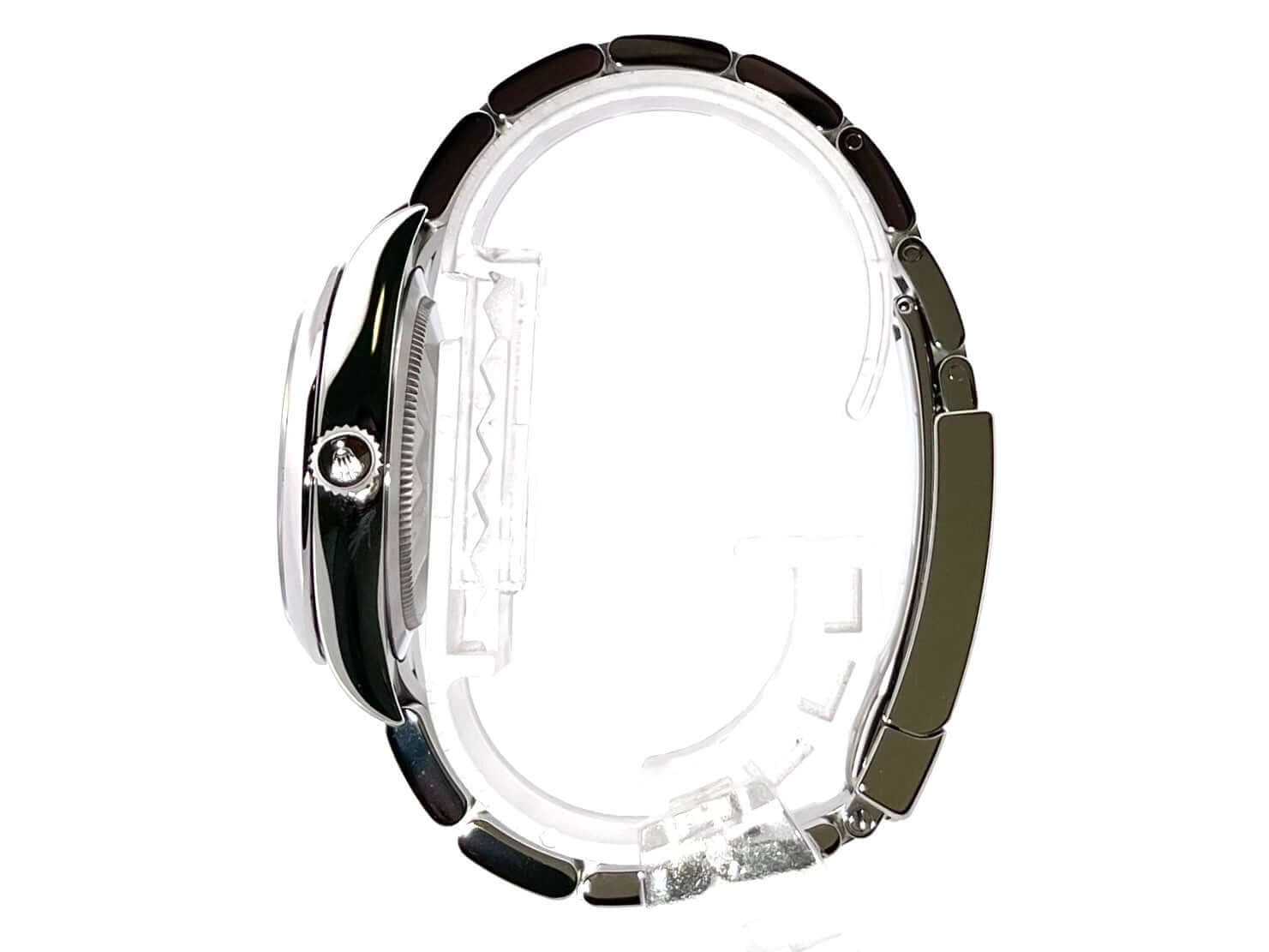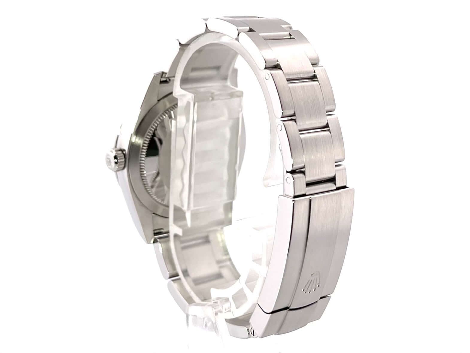 Gehäuse aus Edelstahl satiniert, Gehäusedurchmesser 34 mm, polierte Edelstahl Lünette, Oyster Edelstahlband poliert und satiniert mit Faltschließe, silberfarbenes Zifferblatt mit aufgesetzten Leuchtindizes, Leuchtzeiger, Automatik, Rolex Manufakturkaliber 2232, 55 Stunden Gangreserve, Saphirglas, Wasserdicht bis zu 10 bar.