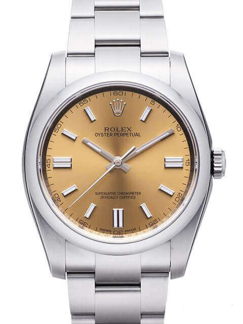 Gehäuse Edelstahl poliert und satiniert, Gehäusedurchmesser 36 mm, Oyster Edelstahl Armband satiniert mit Faltschließe, Zifferblatt white grape mit Index, Automatikwerk, Chronometer mit Zeugnis, Rolex Manufakturkaliber, Saphirglas, Wasserdicht bis 10 bar.