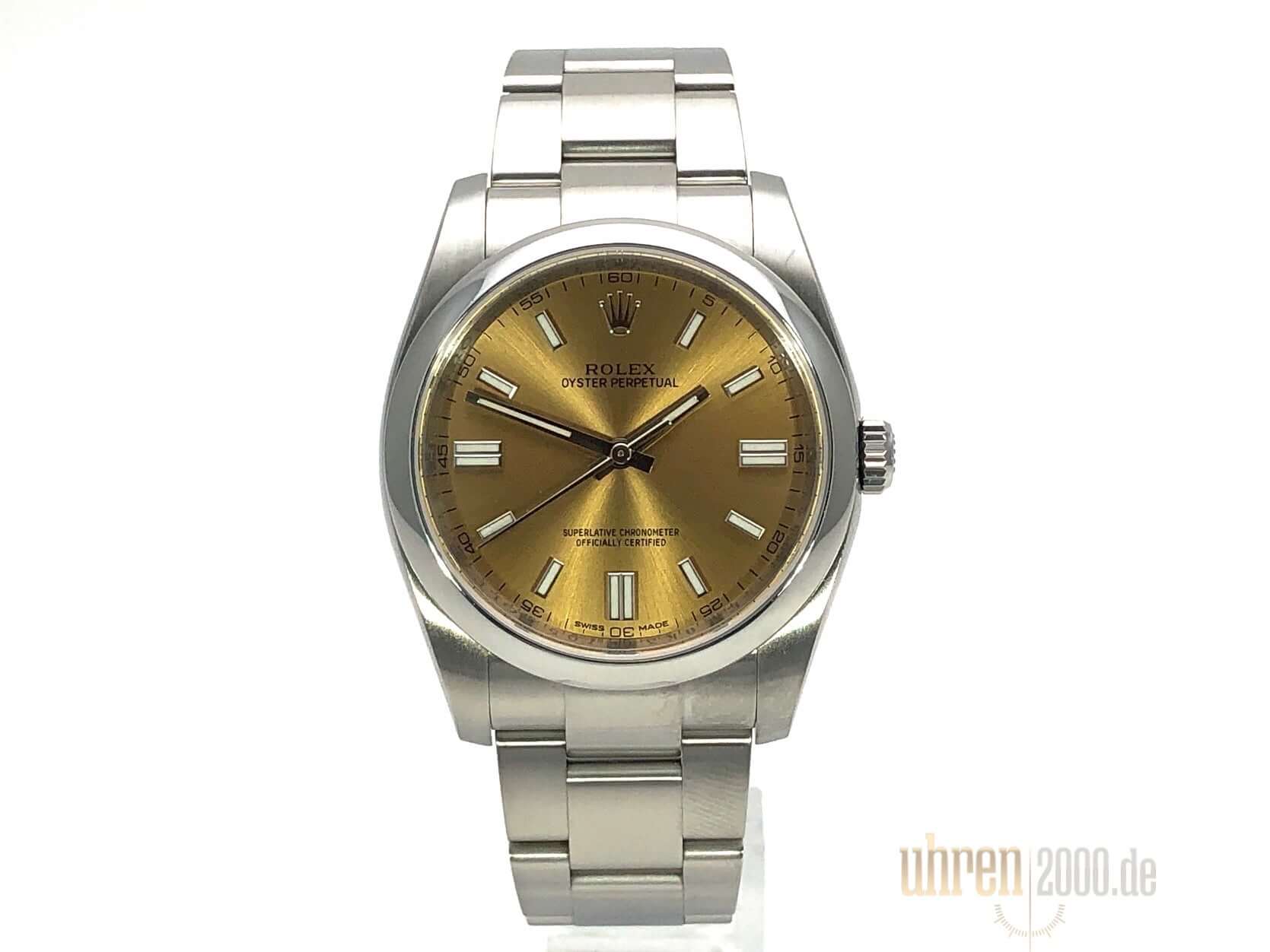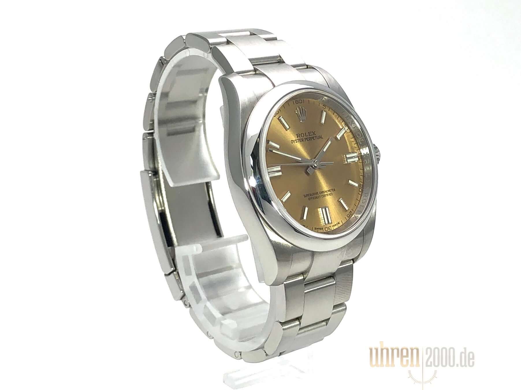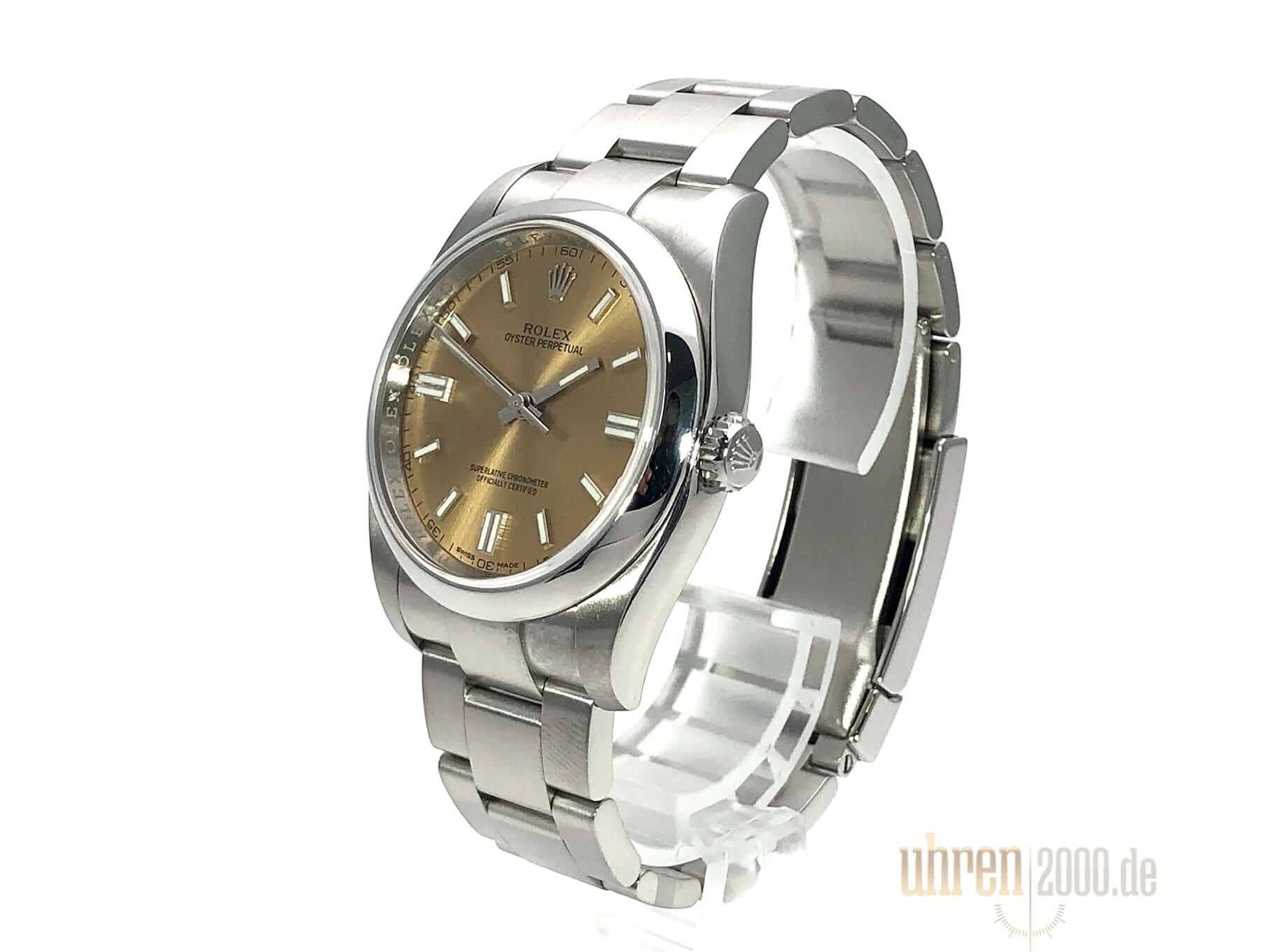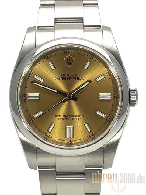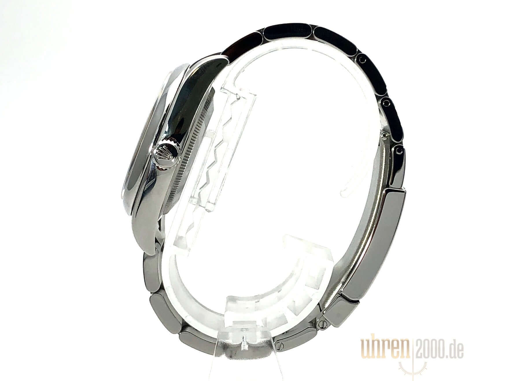 Gehäuse aus Edelstahl poliert und satiniert, Gehäusedurchmesser 36 mm, Oyster Edelstahl Armband satiniert mit Faltschließe, Zifferblatt white grape mit Indizes, Leuchtzeiger, Automatikwerk, Rolex Manufakturkaliber, Chronometer, Saphirglas, Wasserdicht bis 10 bar.