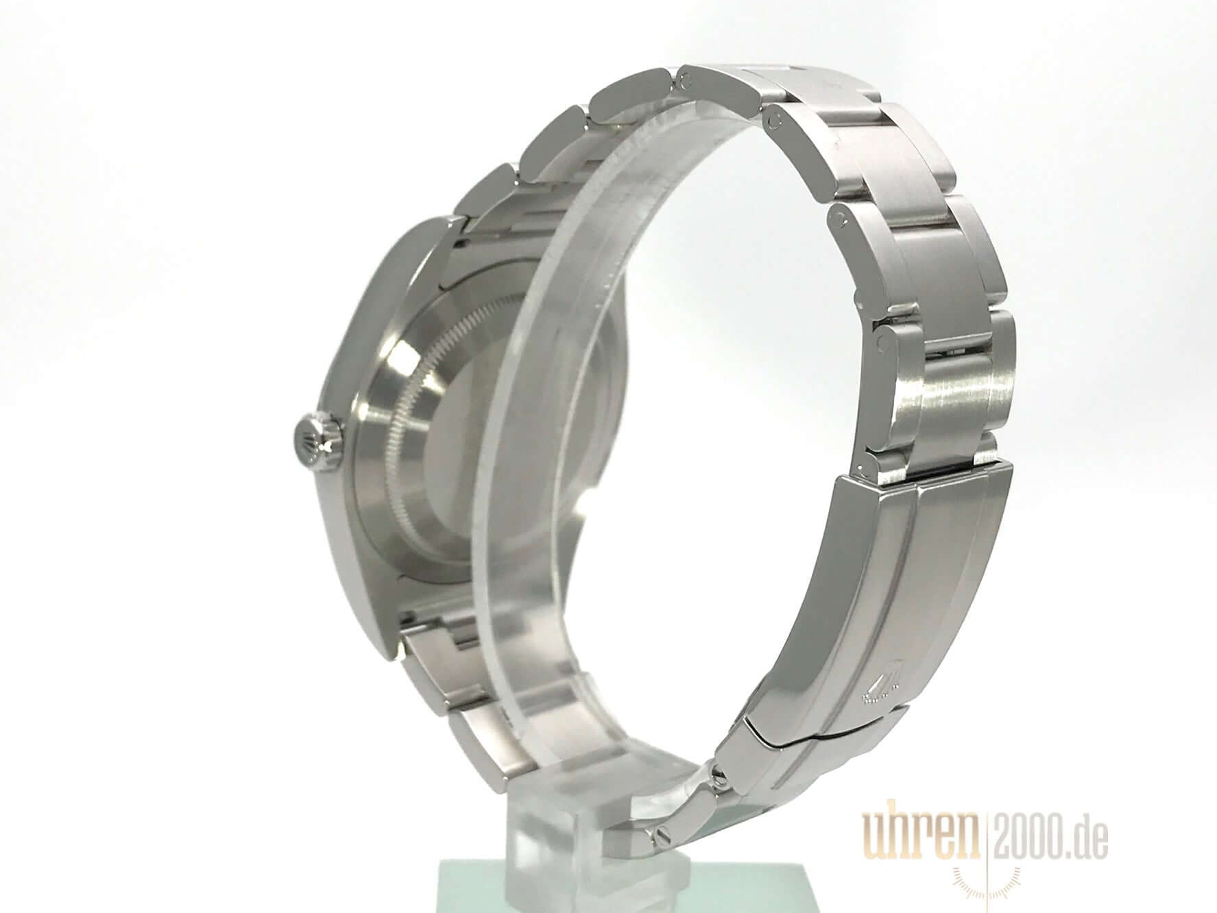 Gehäuse aus Edelstahl poliert und satiniert, Gehäusedurchmesser 39 mm, Oyster Edelstahl Armband poliert und satiniert mit Faltschließe, Zifferblatt Grau mit Index, Rolex Manufakturkaliber 3132, Saphirglas, Wasserdicht bis 10 bar.