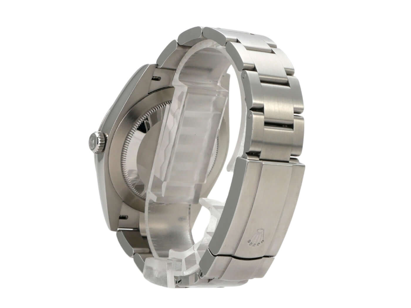 Gehäuse aus Edelstahl poliert und satiniert, Gehäusedurchmesser 41 mm, Oyster Edelstahlband mit Faltschließe, Silberfarbenes Zifferblatt mit Leuchtindizes, Leuchtzeiger, Automatik, Rolex Manufakturkaliber 3230, Gangreserve 70 Stunden, Saphirglas, wasserdicht bis 10 bar.