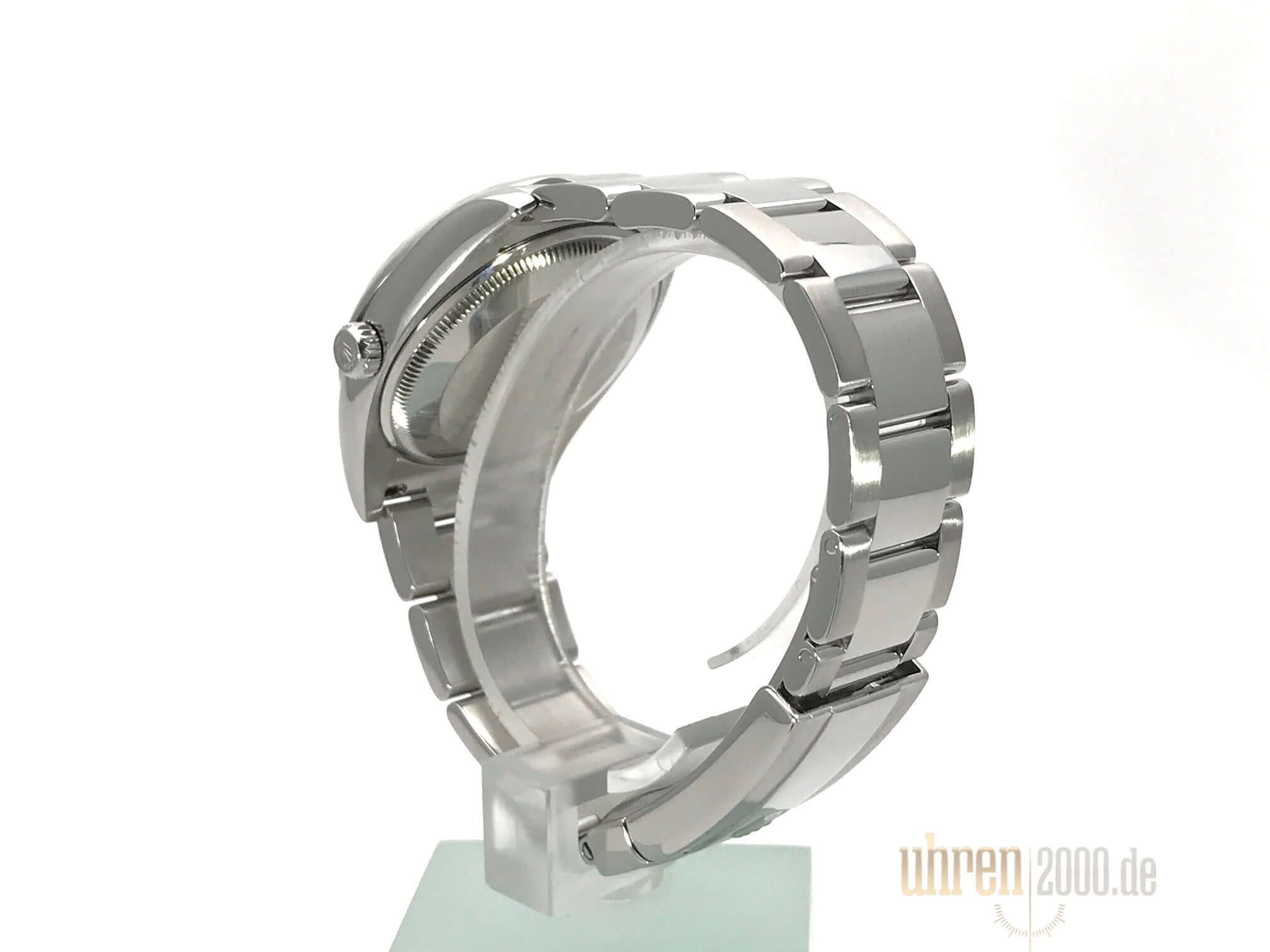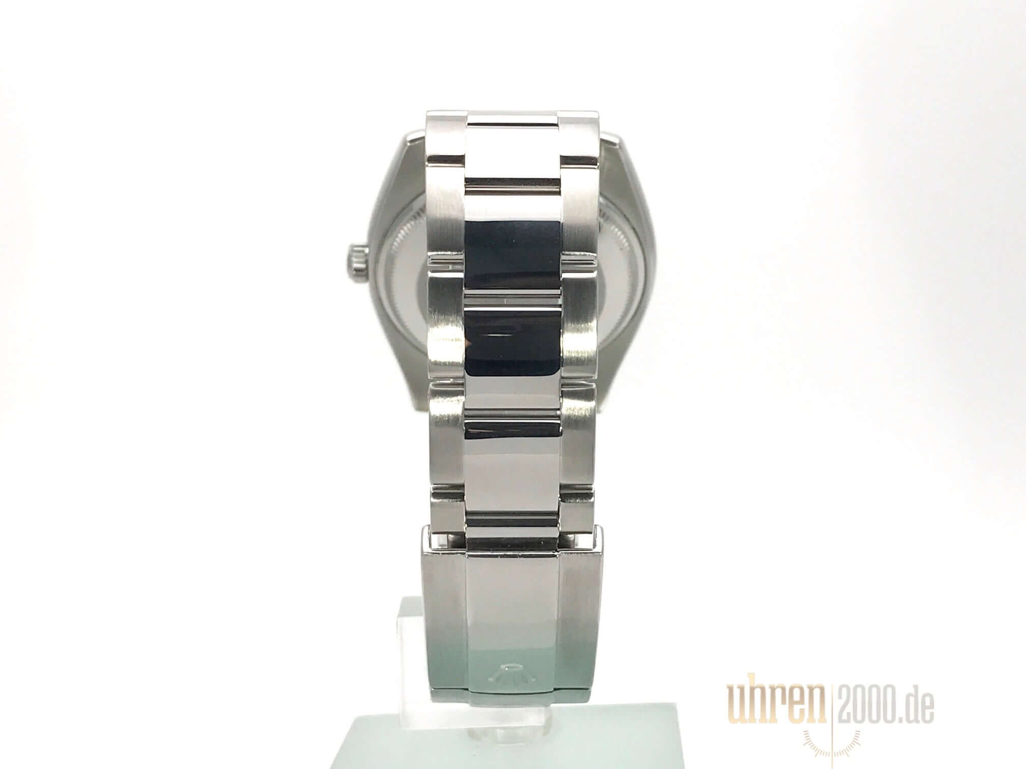 Gehäuse aus Edelstahl poliert und satiniert, Gehäusedurchmesser 34 mm, Gehäusehöhe 11,5 mm, Edelstahl Lünette poliert, Oyster Edelstahlband poliert und satiniert mit Faltschließe, schwarzes Zifferblatt mit römischen Ziffern, Automatikwerk, Rolex Manufakturkaliber 3135 mit 31 Steine, 28.800 A/h, Datumsanzeige, Chronometer, Saphirglas, Krone verschraubbar, Edelstahlboden verschraubt, Wasserdicht bis zu 10 bar.