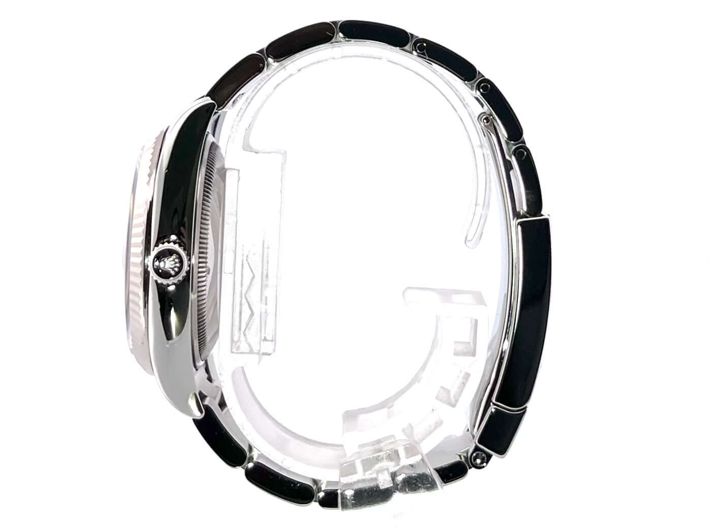 Gehäuse aus Edelstahl poliert und satiniert, Gehäusedurchmesser 34 mm, Gehäusehöhe 11,8 mm, Weißgold Lünette poliert und geriffelt, Oyster Edelstahl Armband poliert und satiniert mit Faltschließe, weißes Zifferblatt mit 5 aufgesetzten Diamanten und arabischen Ziffern, Automatikwerk, C.O.S.C. Zertifizierter Chronometer, Rolex Manufakturkaliber 3135 mit 31 Steine, 28.800 A/h, Datumsanzeige mit Lupe, Saphirglas, Krone verschraubt, Edelstahlboden verschraubt, Wasserdicht bis zu 10 bar.