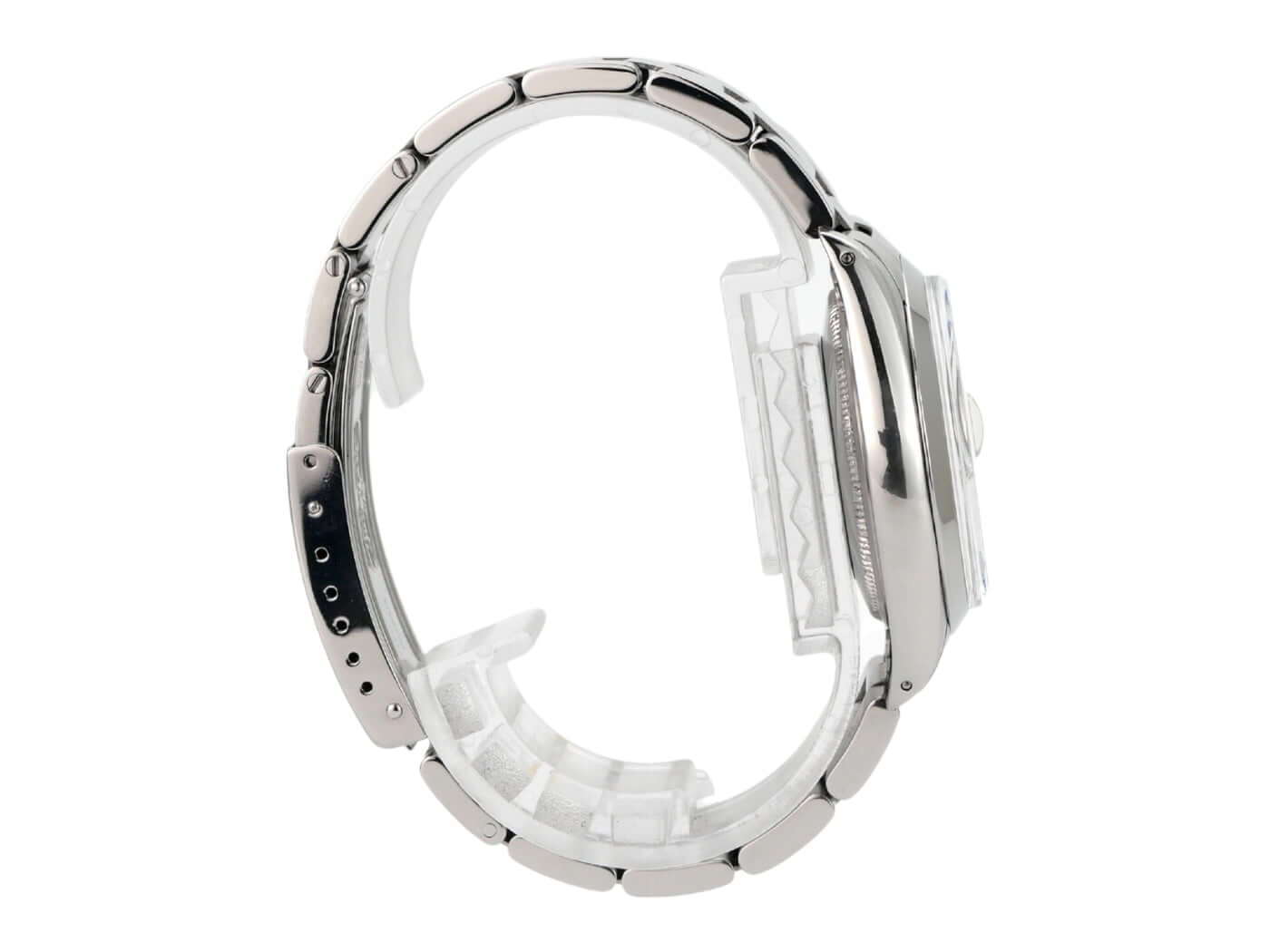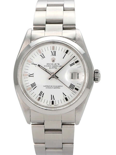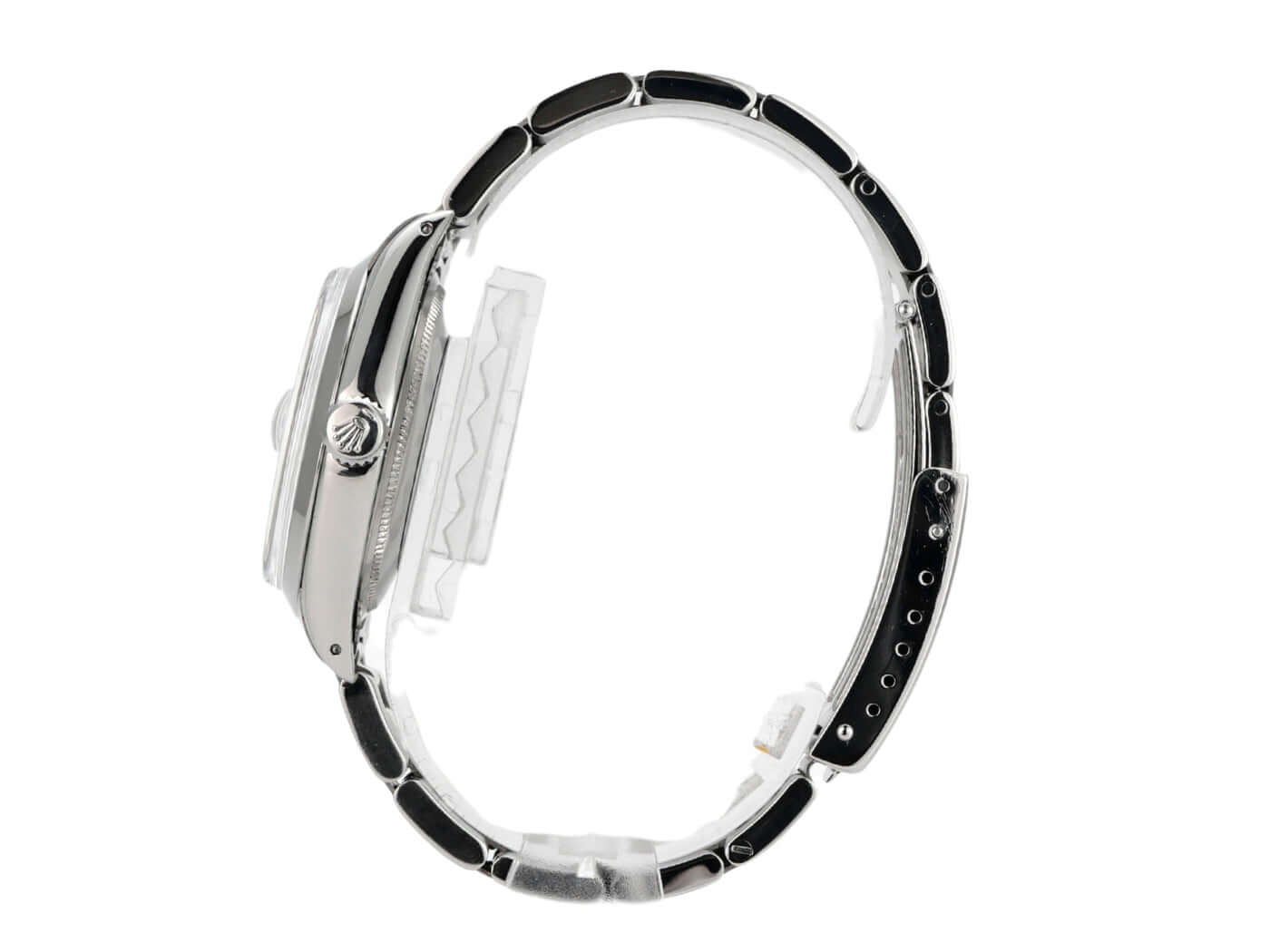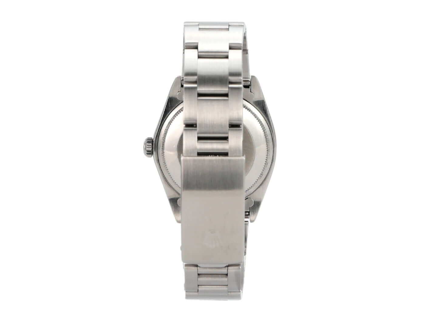 Gehäuse aus Edelstahl poliert und satiniert, Gehäusedurchmesser 34 mm, Edelstahl Lünette poliert, Oyster Edelstahlband poliert und satiniert mit Faltschließe, weißes Zifferblatt, Automatikwerk, Rolex Manufakturkaliber, 19.800 A/h, Datumsanzeige, Chronometer, Plexiglas, Krone verschraubbar, Edelstahlboden verschraubt, wasserdicht bis zu 10 bar.