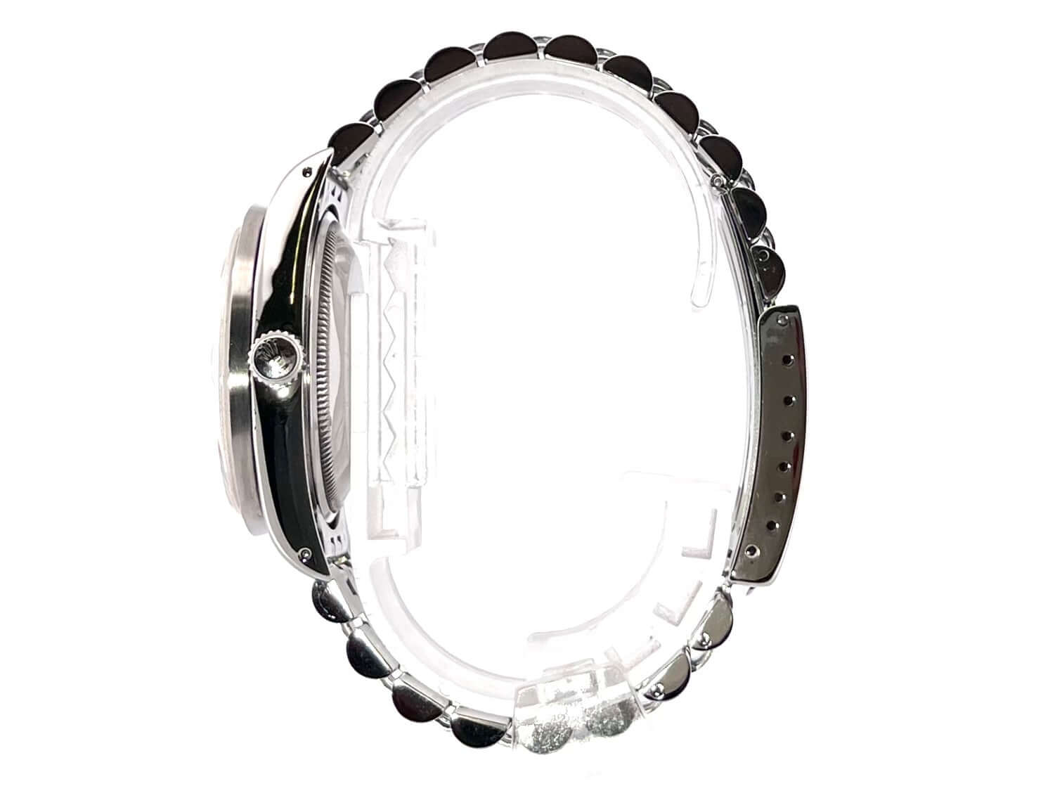 Gehäuse aus Edelstahl poliert und satiniert, Gehäusedurchmesser 34 mm, Gehäusehöhe 11,5 mm, Edelstahl Lünette geriffelt, Jubile-Edelstahlband poliert und satiniert mit Faltschließe, silberfarbenes Zifferblatt, Automatikwerk, Rolex Manufakturkaliber, 28.800 A/h, Datumsanzeige, Chronometer, Saphirglas, Krone verschraubbar, Edelstahlboden verschraubt, Wasserdicht bis zu 10 bar.