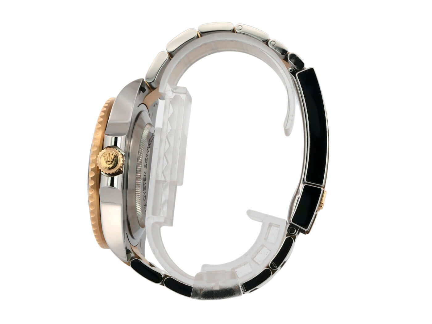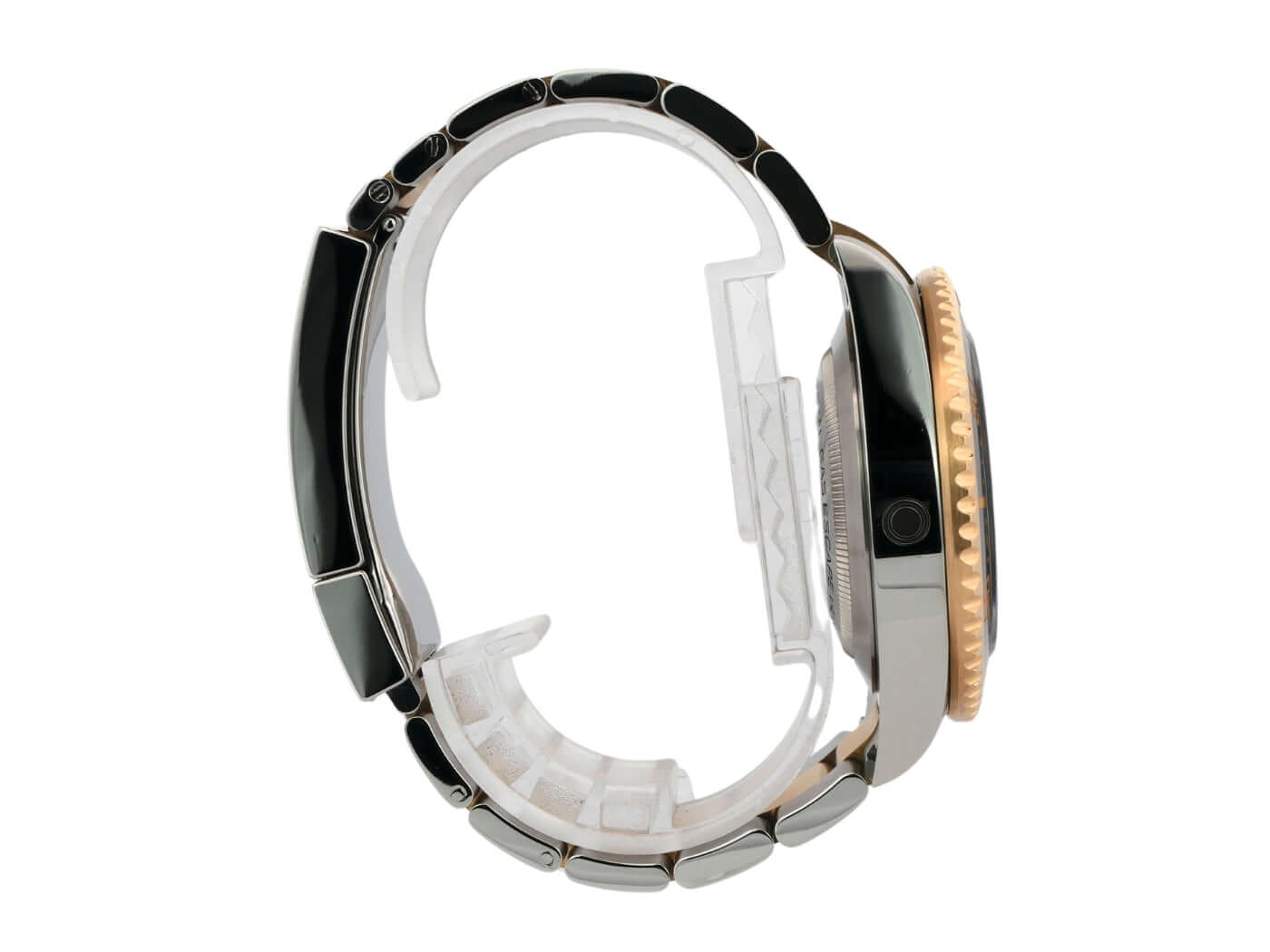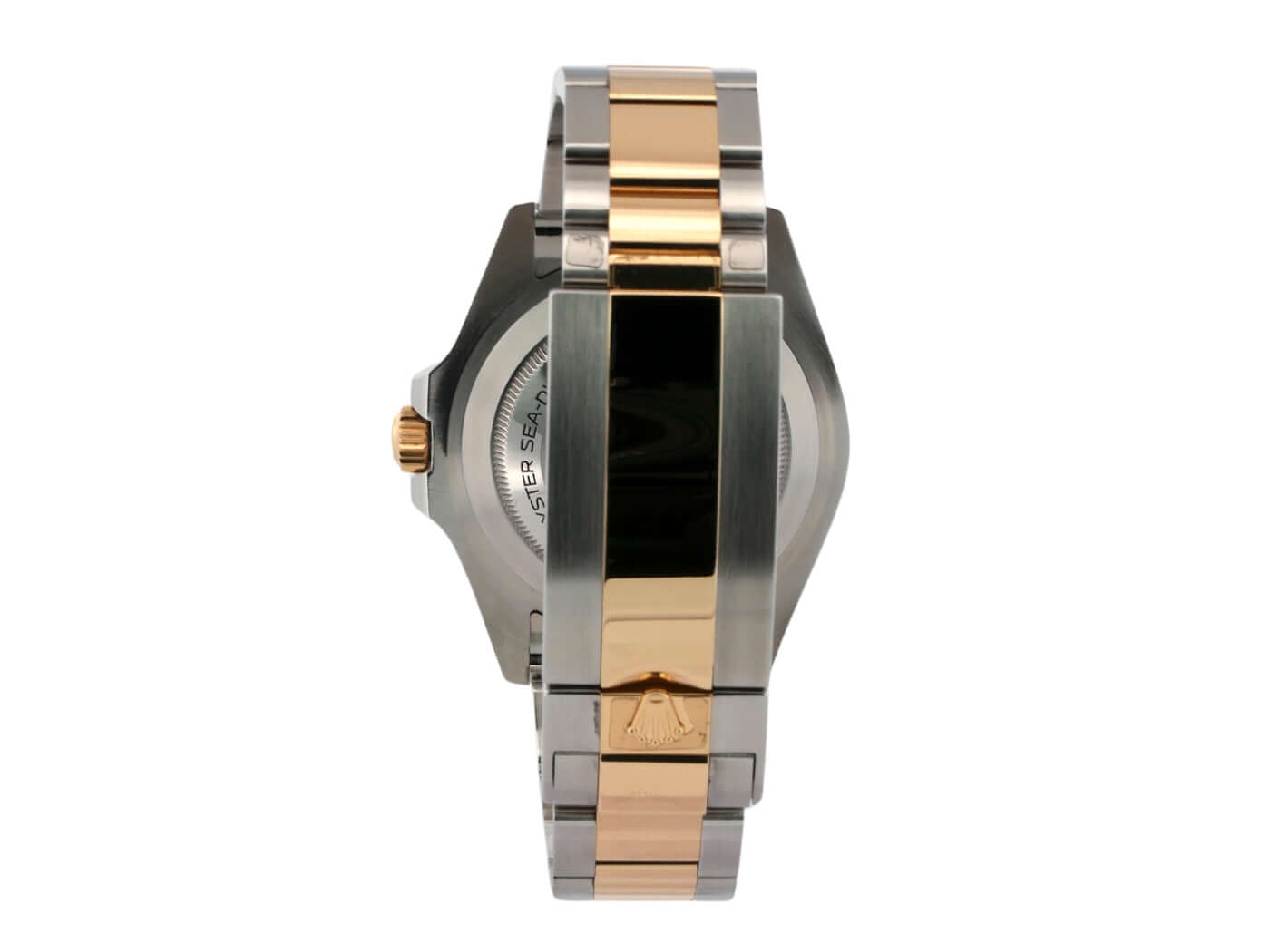 Gehäuse aus Edelstahl / Gelbgold poliert und satiniert, Gehäusedurchmesser 43 mm, Lünette aus Gelbgold mit schwarzer Keramik Einlage, 60 Minuten Skala und Leuchtpunkt, einseitig drehbar, Oyster Edelstahl / Gelbgold Armband satiniert mit Sicherheitsfaltschließe, schwarzes Zifferblatt mit aufgesetzten Leuchtindizes, Leuchtzeiger, Automatikwerk, Rolex Manufakturkaliber 3235, 31 Steine, Schwingung 28.800 A/h, Datumsanzeige bei 3 Uhr, Chronometer, Saphirglas, Gelbgold Krone verschraubt mit Flankenschutz, Heliumventil auf 9 Uhr Position, Edelstahlboden verschraubt und graviert, Wasserdicht bis zu 122 bar.