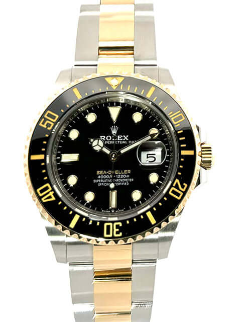 Gehäuse aus Edelstahl / Gelbgold poliert und satiniert, Gehäusedurchmesser 43 mm, Lünette aus Gelbgold mit schwarzer Keramik Einlage, 60 Minuten Skala und Leuchtpunkt, einseitig drehbar, Oyster Edelstahl / Gelbgold Armband satiniert mit Sicherheitsfaltschließe, schwarzes Zifferblatt mit aufgesetzten Leuchtindizes, Leuchtzeiger, Automatikwerk, Rolex Manufakturkaliber 3235, 31 Steine, Schwingung 28.800 A/h, Datumsanzeige bei 3 Uhr, Chronometer, Saphirglas, Gelbgold Krone verschraubt mit Flankenschutz, Heliumventil auf 9 Uhr Position, Edelstahlboden verschraubt und graviert, Wasserdicht bis zu 122 bar.