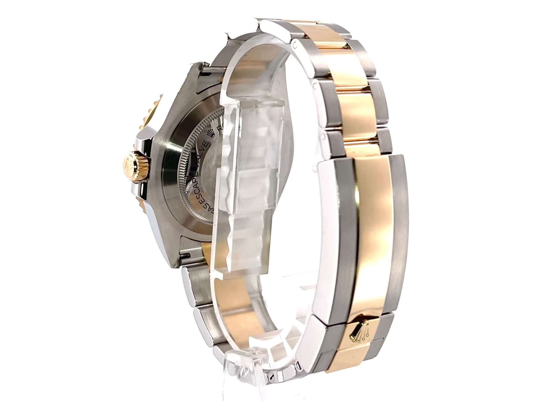Gehäuse aus Edelstahl / Gelbgold poliert und satiniert, Gehäusedurchmesser 43 mm, Lünette aus Gelbgold mit schwarzer Keramik Einlage, 60 Minuten Skala und Leuchtpunkt, einseitig drehbar, Oyster Edelstahl / Gelbgold Armband satiniert mit Sicherheitsfaltschließe, schwarzes Zifferblatt mit aufgesetzten Leuchtindizes, Leuchtzeiger, Automatikwerk, Rolex Manufakturkaliber 3235, 31 Steine, Schwingung 28.800 A/h, Datumsanzeige bei 3 Uhr, Chronometer, Saphirglas, Gelbgold Krone verschraubt mit Flankenschutz, Heliumventil auf 9 Uhr Position, Edelstahlboden verschraubt und graviert, Wasserdicht bis zu 122 bar.