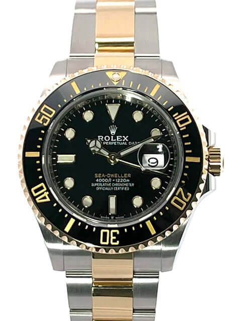 Gehäuse aus Edelstahl / Gelbgold poliert und satiniert, Gehäusedurchmesser 43 mm, Lünette aus Gelbgold mit schwarzer Keramik Einlage, 60 Minuten Skala und Leuchtpunkt, einseitig drehbar, Oyster Edelstahl / Gelbgold Armband satiniert mit Sicherheitsfaltschließe, schwarzes Zifferblatt mit aufgesetzten Leuchtindizes, Leuchtzeiger, Automatikwerk, Rolex Manufakturkaliber 3235, 31 Steine, Schwingung 28.800 A/h, Datumsanzeige bei 3 Uhr, Chronometer, Saphirglas, Gelbgold Krone verschraubt mit Flankenschutz, Heliumventil auf 9 Uhr Position, Edelstahlboden verschraubt und graviert, Wasserdicht bis zu 122 bar.