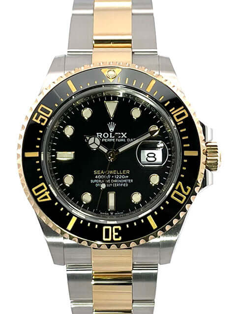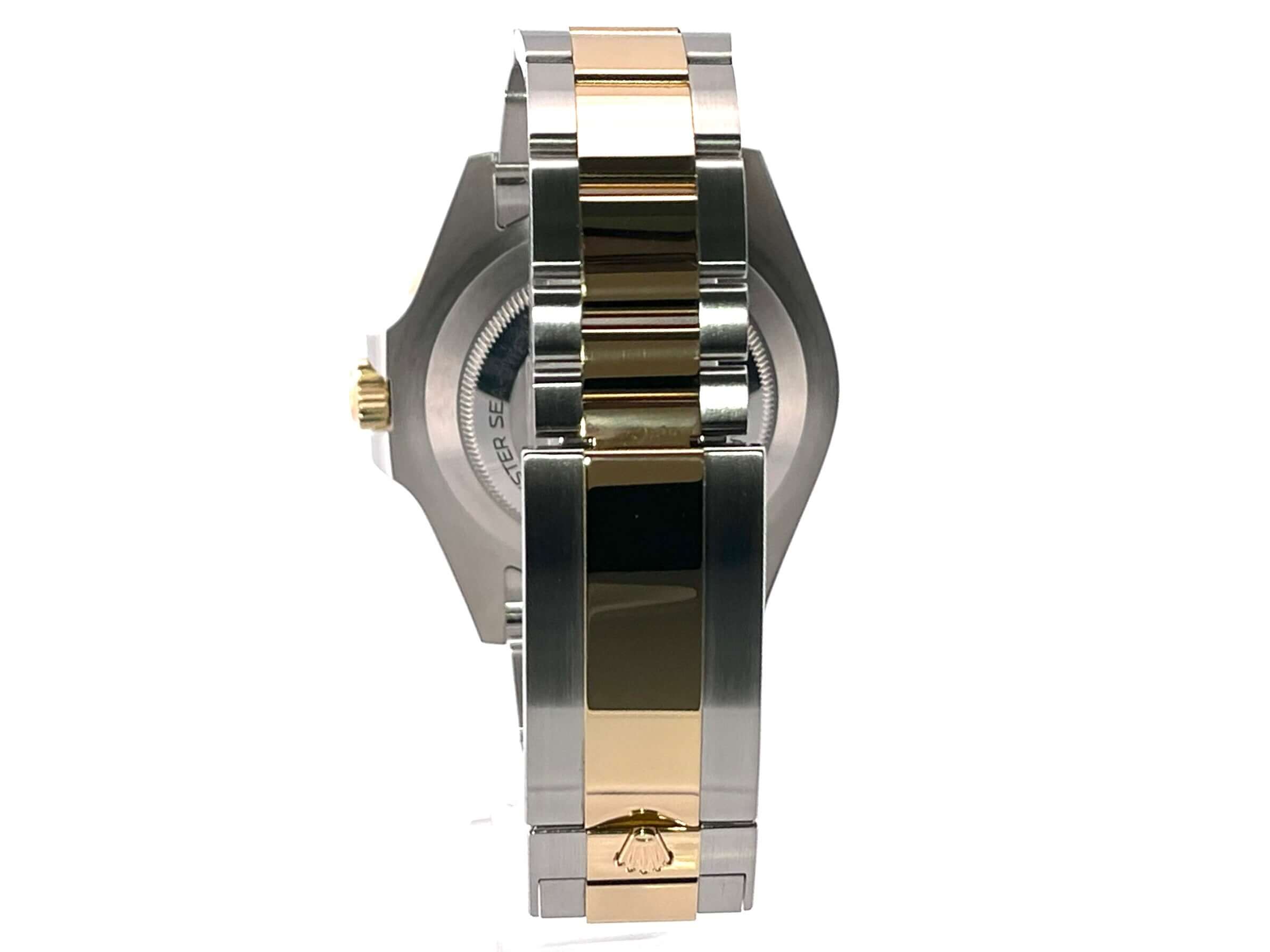 Gehäuse aus Edelstahl / Gelbgold poliert und satiniert, Gehäusedurchmesser 43 mm, Lünette aus Gelbgold mit schwarzer Keramik Einlage, 60 Minuten Skala und Leuchtpunkt, einseitig drehbar, Oyster Edelstahl / Gelbgold Armband satiniert mit Sicherheitsfaltschließe, schwarzes Zifferblatt mit aufgesetzten Leuchtindizes, Leuchtzeiger, Automatikwerk, Rolex Manufakturkaliber 3235, 31 Steine, Schwingung 28.800 A/h, Datumsanzeige bei 3 Uhr, Chronometer, Saphirglas, Gelbgold Krone verschraubt mit Flankenschutz, Heliumventil auf 9 Uhr Position, Edelstahlboden verschraubt und graviert, Wasserdicht bis zu 122 bar.