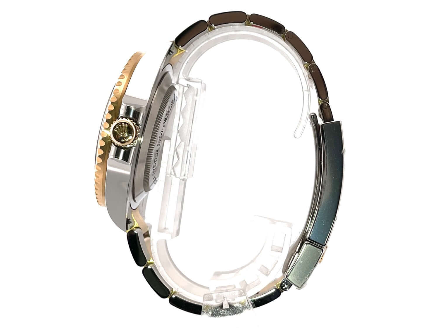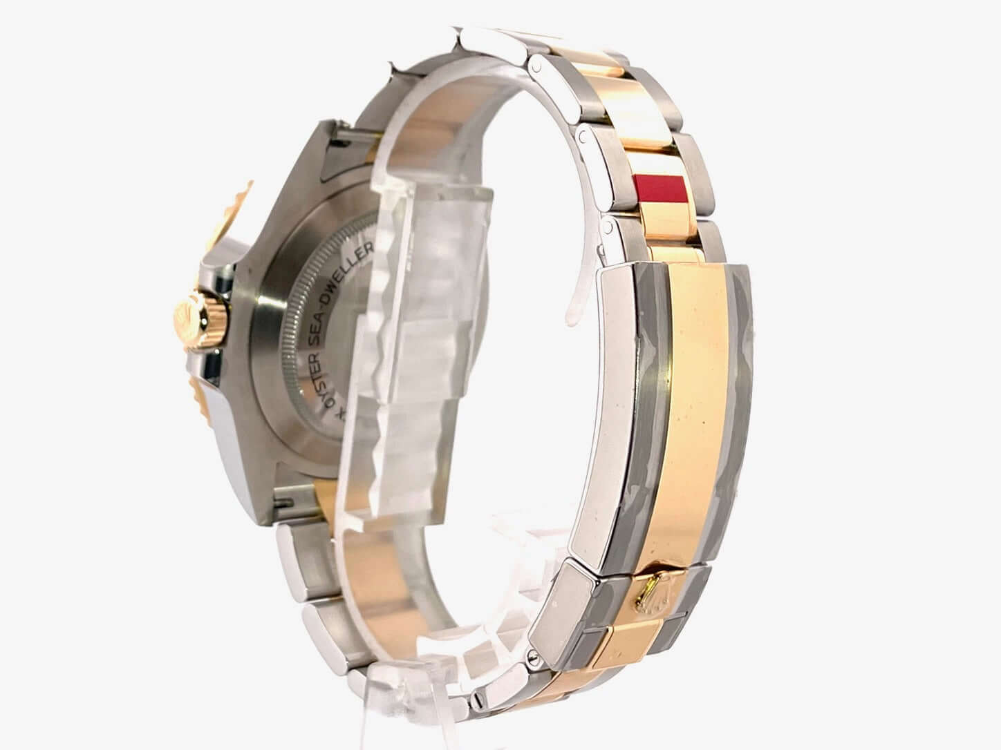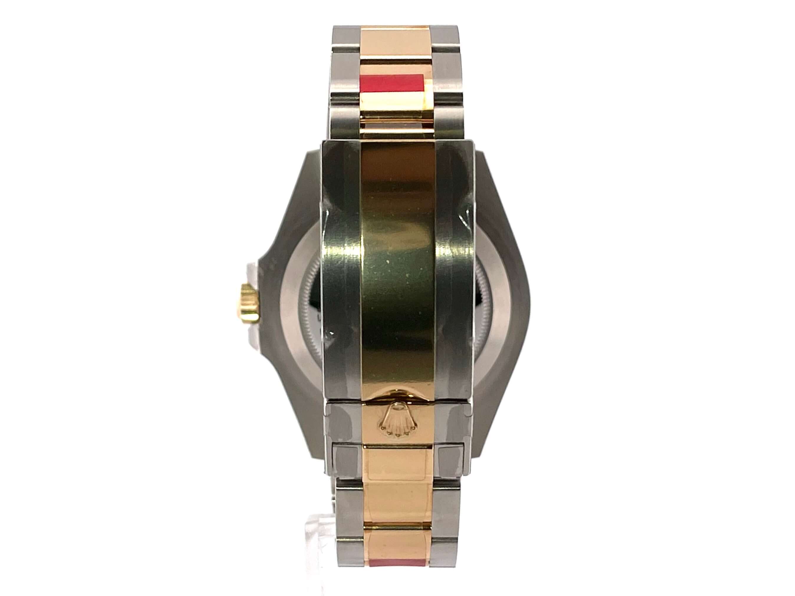 Gehäuse aus Edelstahl / Gelbgold poliert und satiniert, Gehäusedurchmesser 43 mm, Lünette aus Gelbgold mit schwarzer Keramik Einlage, 60 Minuten Skala und Leuchtpunkt, einseitig drehbar, Oyster Edelstahl / Gelbgold Armband satiniert mit Sicherheitsfaltschließe, schwarzes Zifferblatt mit aufgesetzten Leuchtindizes, Leuchtzeiger, Automatikwerk, Rolex Manufakturkaliber 3235, 31 Steine, Schwingung 28.800 A/h, Datumsanzeige bei 3 Uhr, Chronometer, Saphirglas, Gelbgold Krone verschraubt mit Flankenschutz, Heliumventil auf 9 Uhr Position, Edelstahlboden verschraubt und graviert, Wasserdicht bis zu 122 bar.