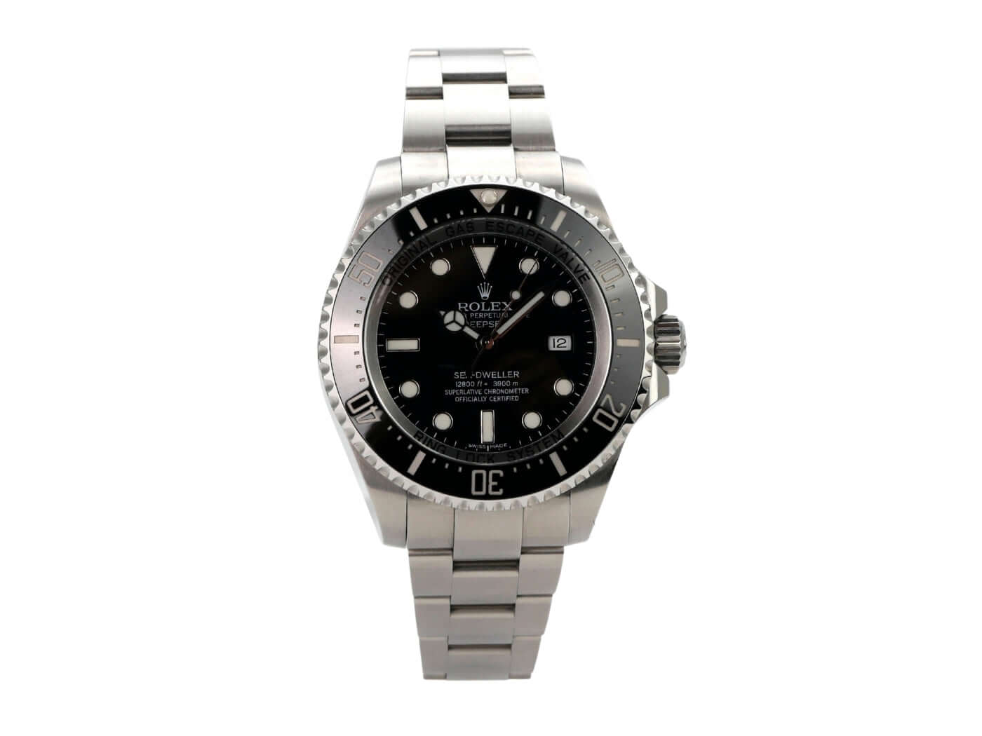 Gehäuse aus Edelstahl poliert und satiniert, Gehäusedurchmesser 44 mm, Gehäusehöhe 17,8 mm, Edelstahl Lünette geriffelt mit schwarzer Keramik, 60 Minuten Skala und Leuchtpunkt einseitig drehbar, Oyster Edelstahl Armband satiniert mit Sicherheitsfaltschließe, schwarzes Zifferblatt mit aufgesetzten Leuchtindizes und Leuchtpunkten, Leuchtzeiger, Automatik, Rolex Manufakturkaliber 3135 mit 31 Steine, Schwingung 28.800 A/h, Parachrom Breguetspirale, Datumsanzeige, Chronometer, kratzresistentes Saphirglas, bombiert, extrastark, verschraubbare Krone Triplock mit Flankenschutz, Heliumventil auf der 9 Uhr Position, Edelstahlboden verschraubt und graviert, wasserdicht bis zu 390 bar.